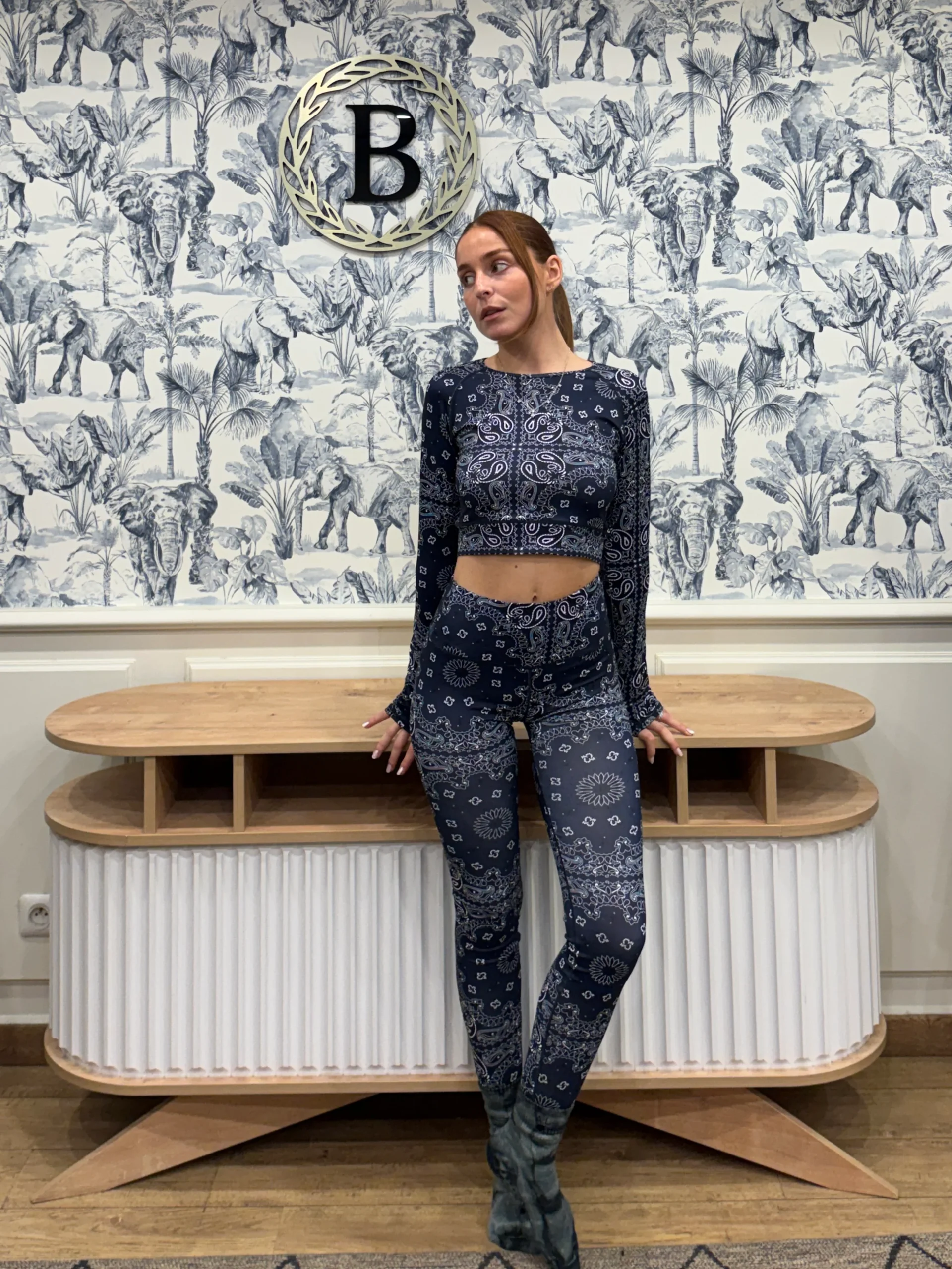 Détails : legging de yoga taille haute, longueur cheville, imprimé bandana coordonné au haut.