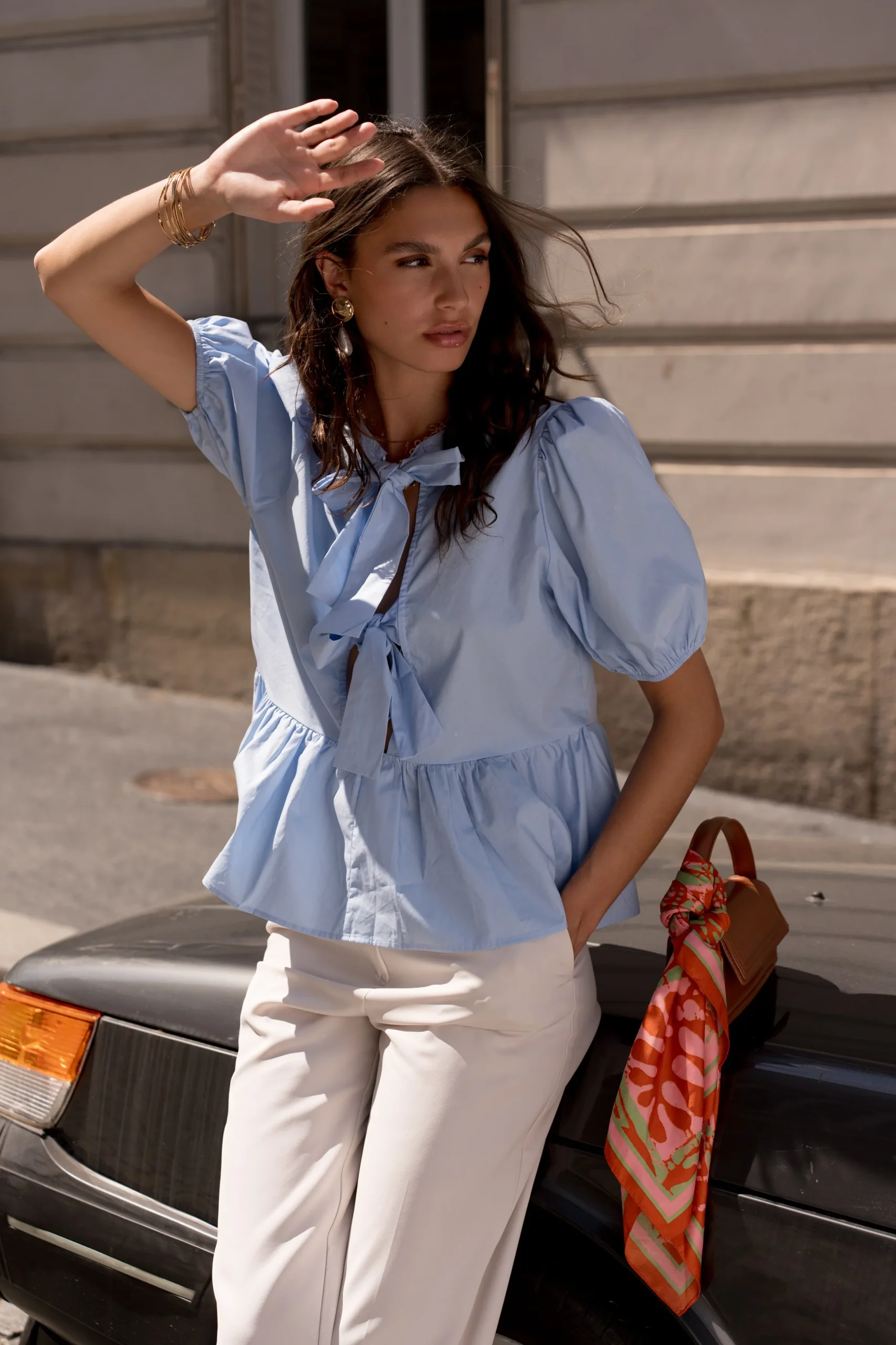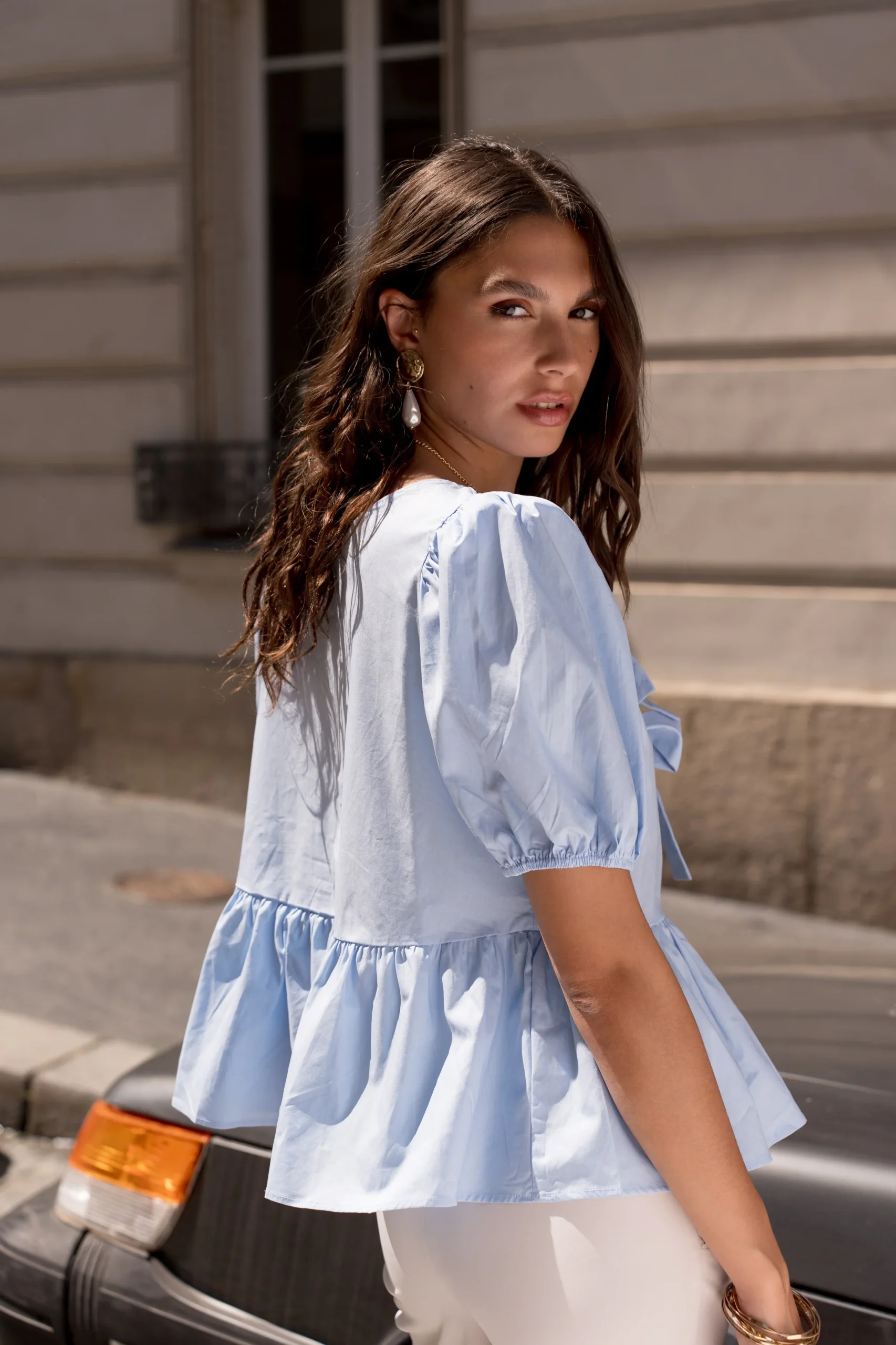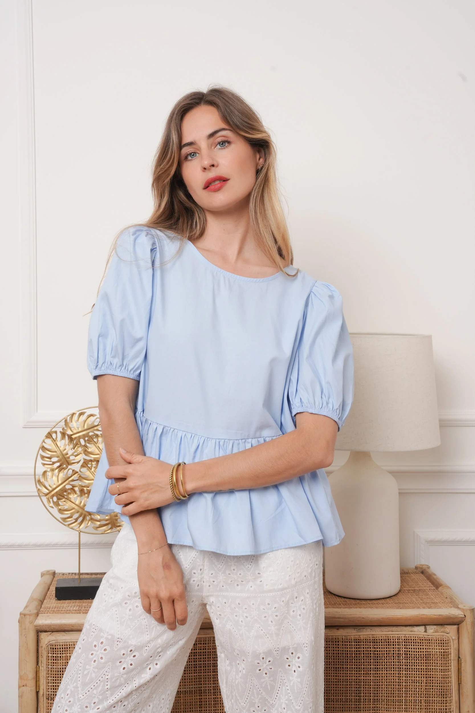 Adoptez un style raffiné avec notre blouse bleue à volants Célina, dotée de manches ballon pour une touche d’élégance supplémentaire. Sa fermeture à gros nœud sur le devant offre une option polyvalente : vous pouvez la porter avec le nœud devant ou derrière selon votre préférence. Parfaite pour toutes les occasions, cette blouse vous assure […]