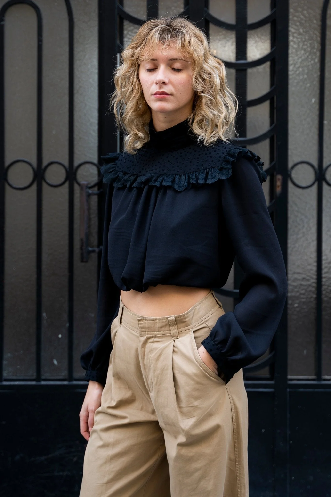 La blouse Colette est une variation du chemisier XIXe. C’est le classique incontournable du style Bonâme, inspiré de l’écrivaine Colette.