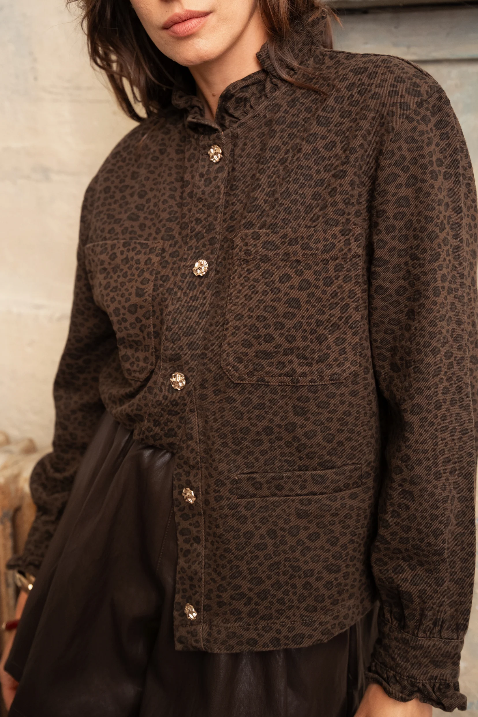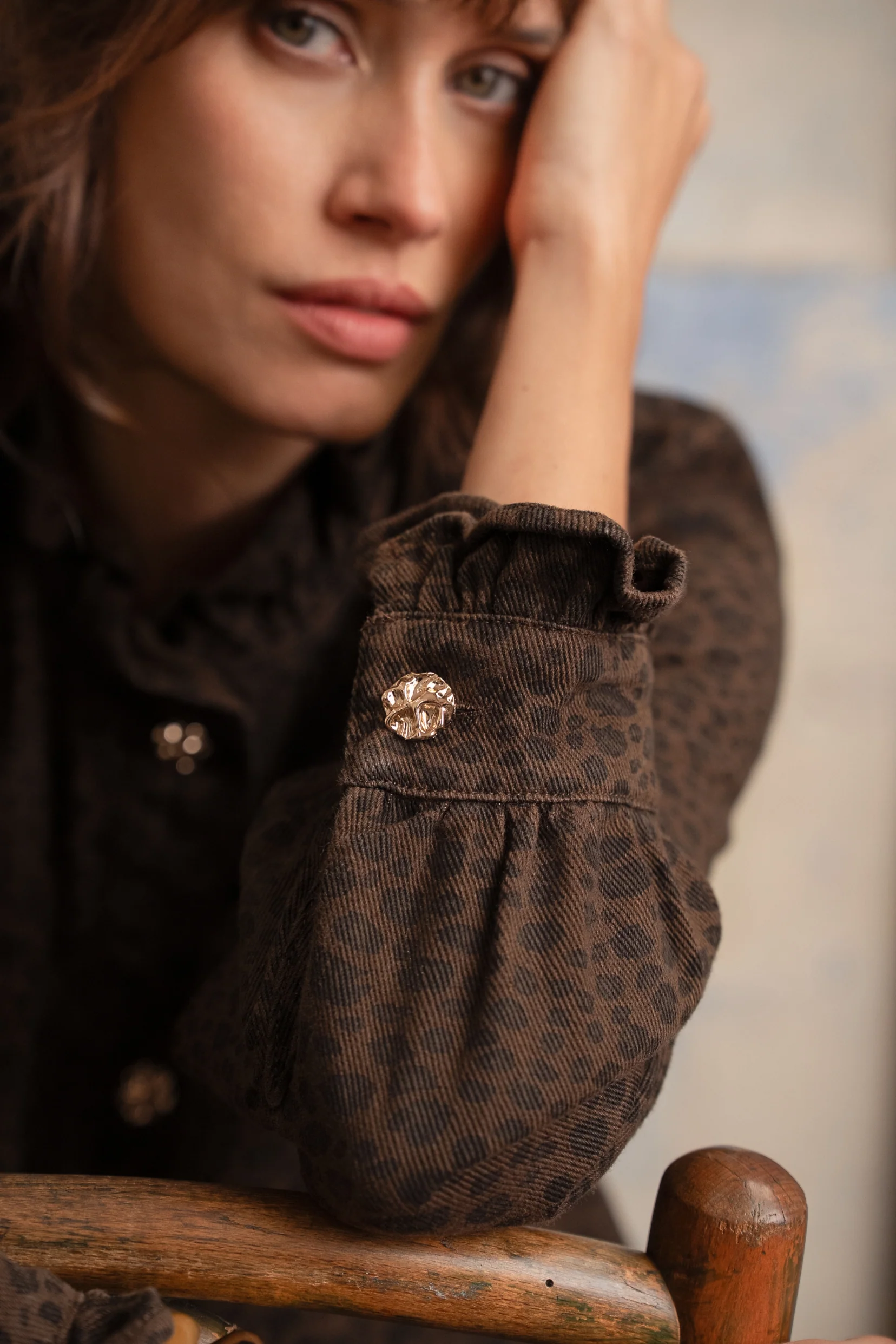 Avec son imprimé subtil façon léopard et ses boutons dorés délicatement travaillés, Elvina revisite la blouse classique avec une touche d’audace.
