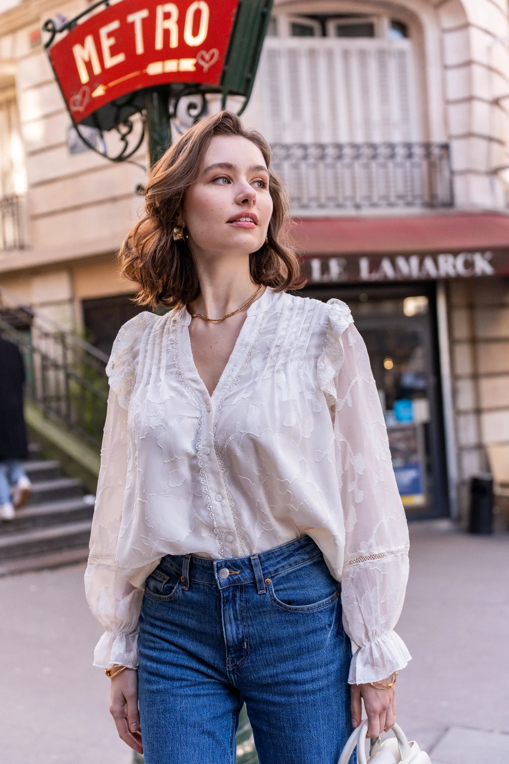 La chemise Lorina charme avec ses détails brodés et son col Mao en V. Ses manches longues volantées lui confèrent une élégance discrète, idéale pour un look à la fois moderne et raffiné. Manches longues Patte de boutonnage Col Mao en V Composition : 100 % Polyester La mannequin mesure 1m74 et porte du S […]