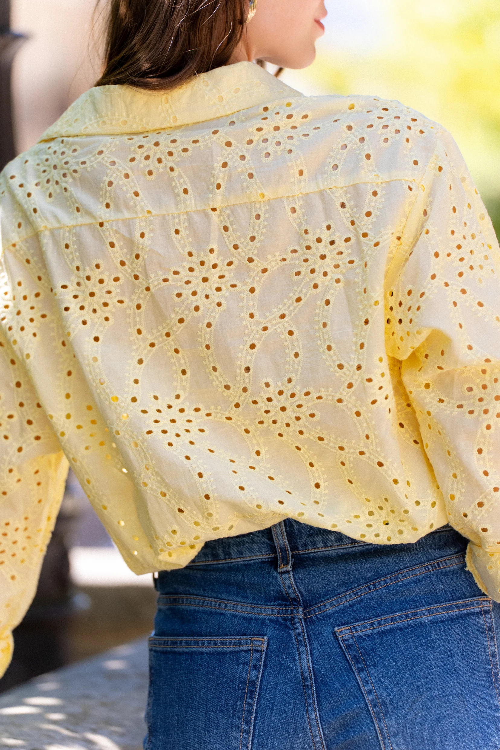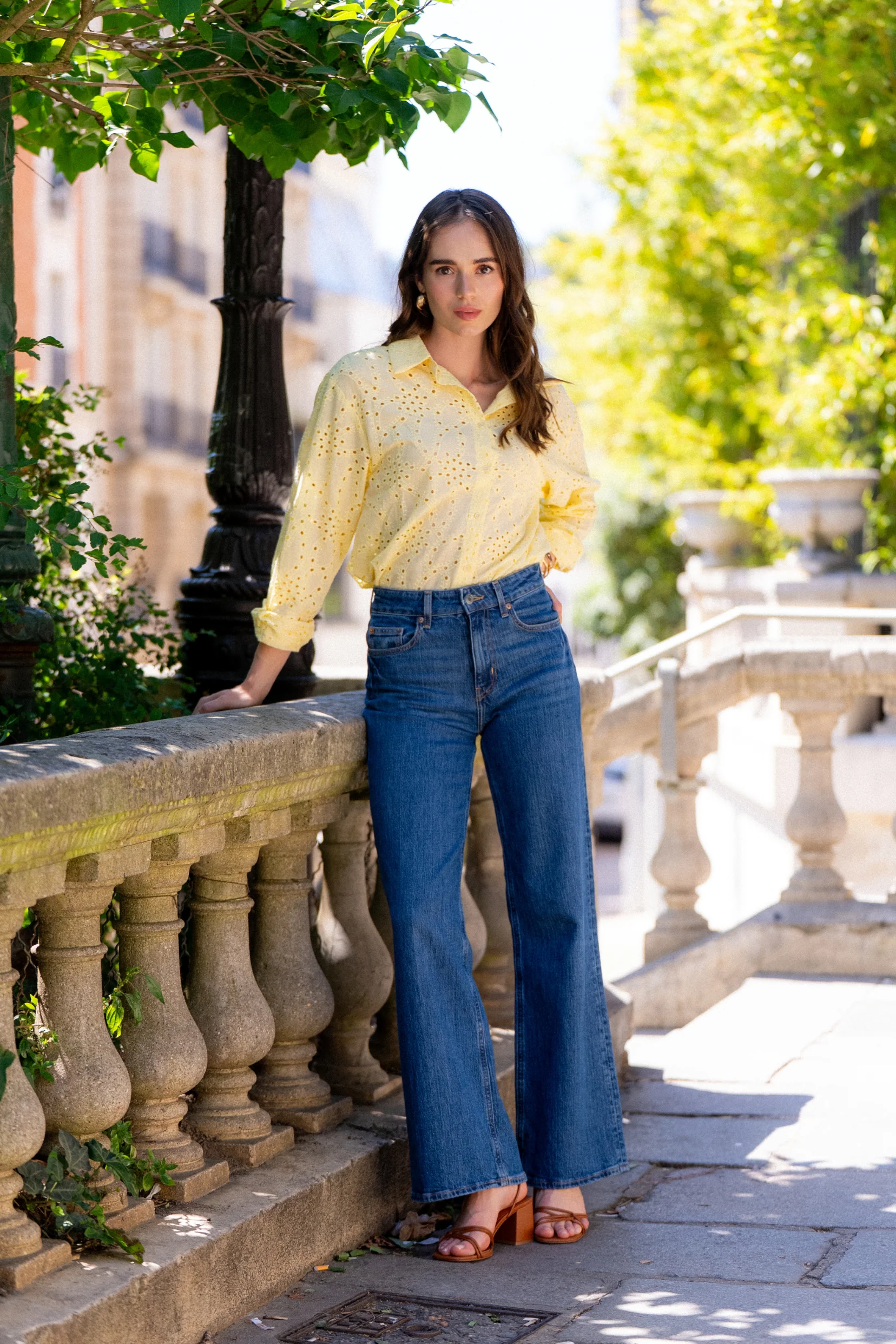 La chemise Luisa séduit par ses détails de broderie ajourée, subtilement placés pour créer un jeu de transparence tout en élégance. Sa coupe classique à col chemise et sa boutonnière discrète en font une alliée du quotidien, facile à porter et à accessoiriser.
