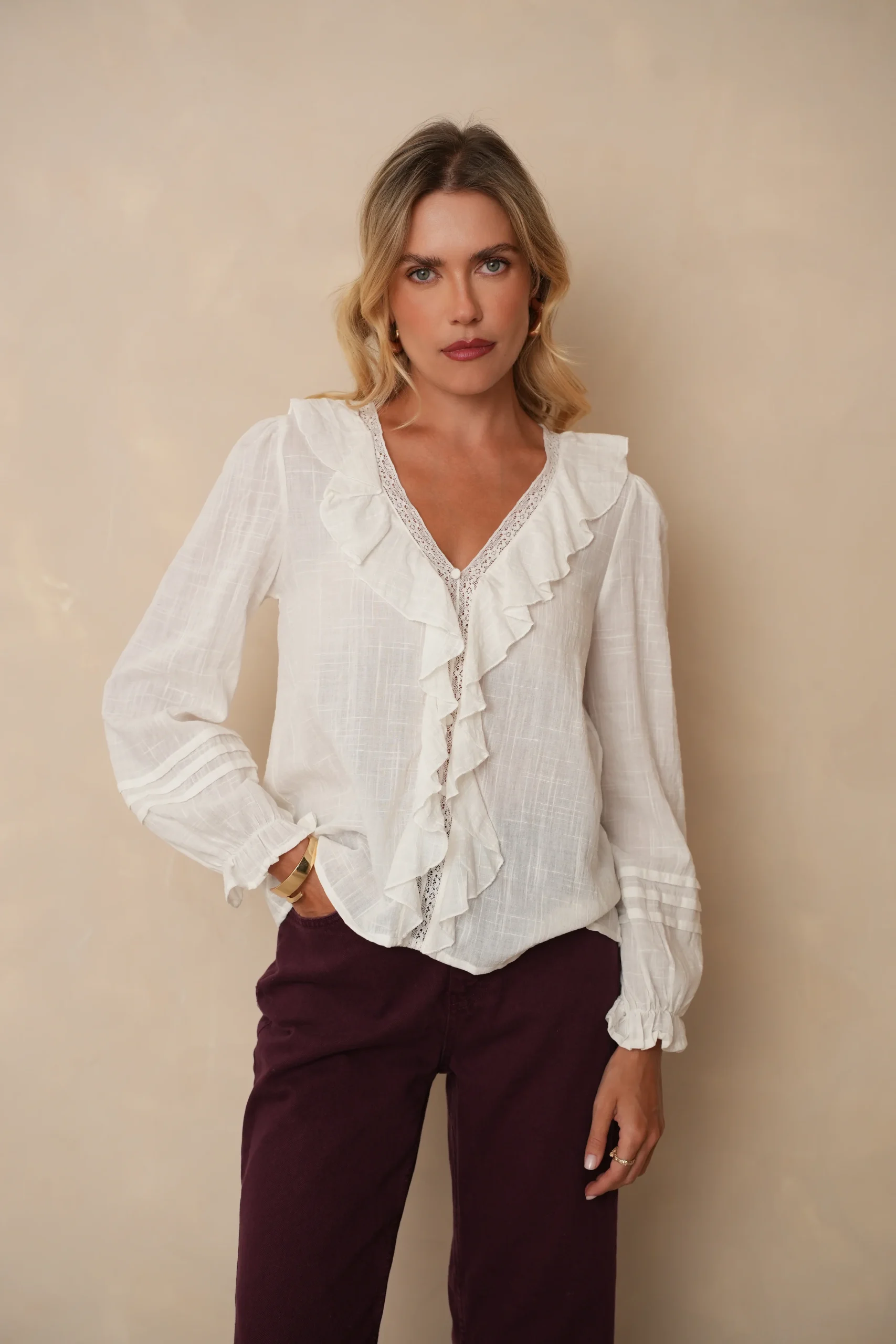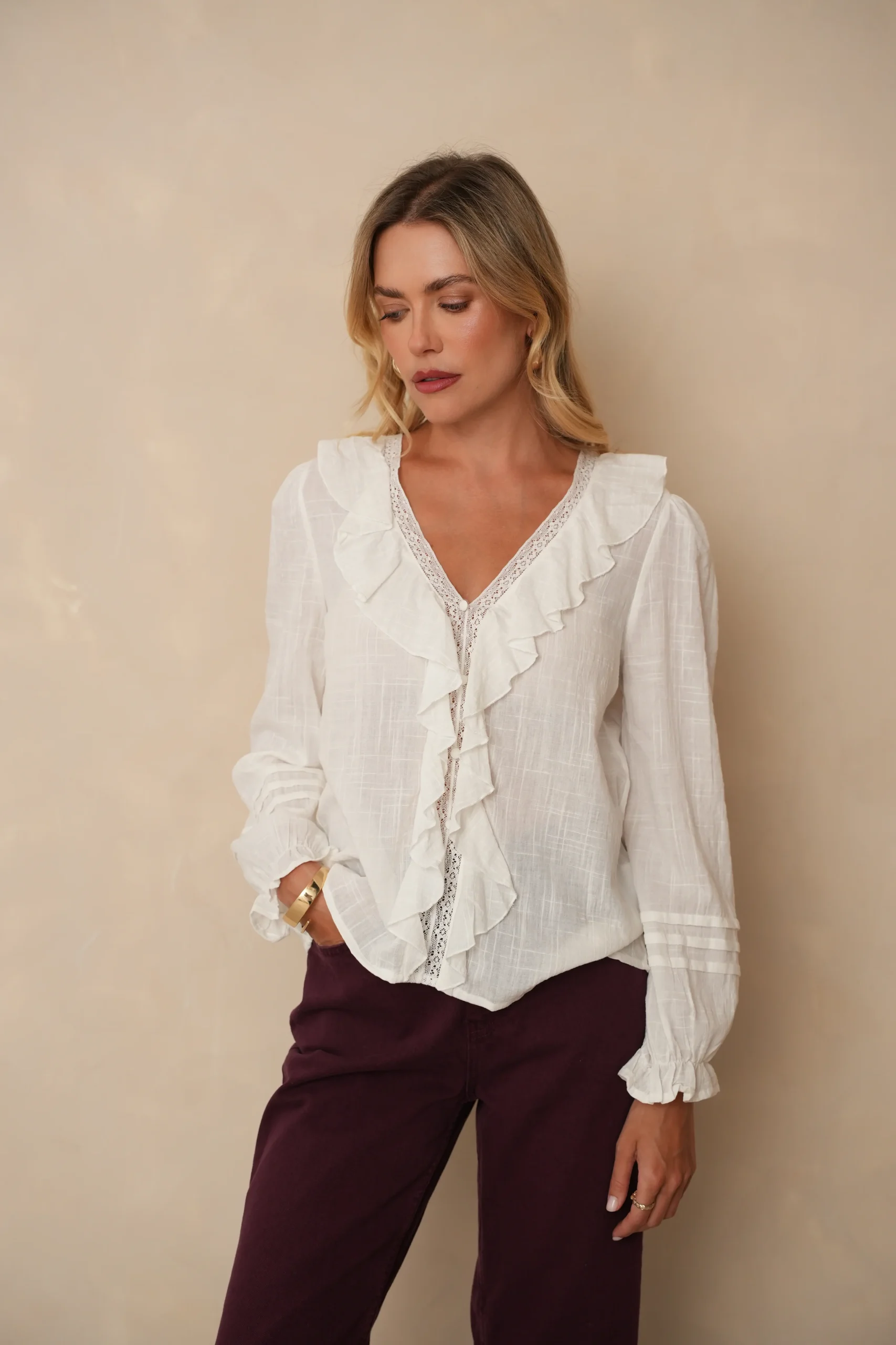 Laissez-vous séduire par la chemise Mahalie, une pièce délicate au charme raffiné. Son col en V orné de volants apporte une touche de féminité subtile, tandis que ses manches longues et ses détails brodés ajoutent une note sophistiquée. Légère et élégante, elle s’adapte à toutes les occasions pour un look chic et intemporel. Col V […]