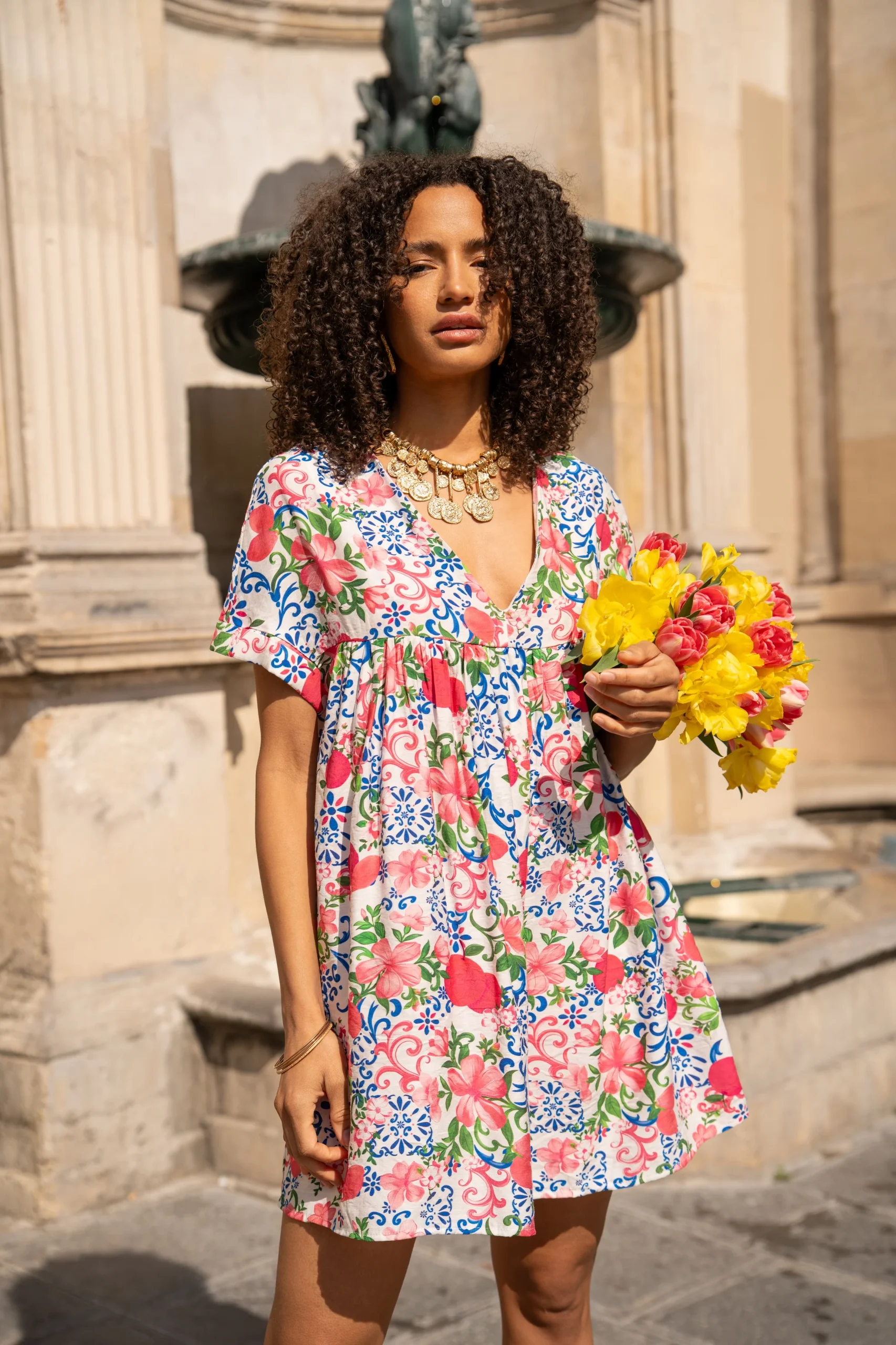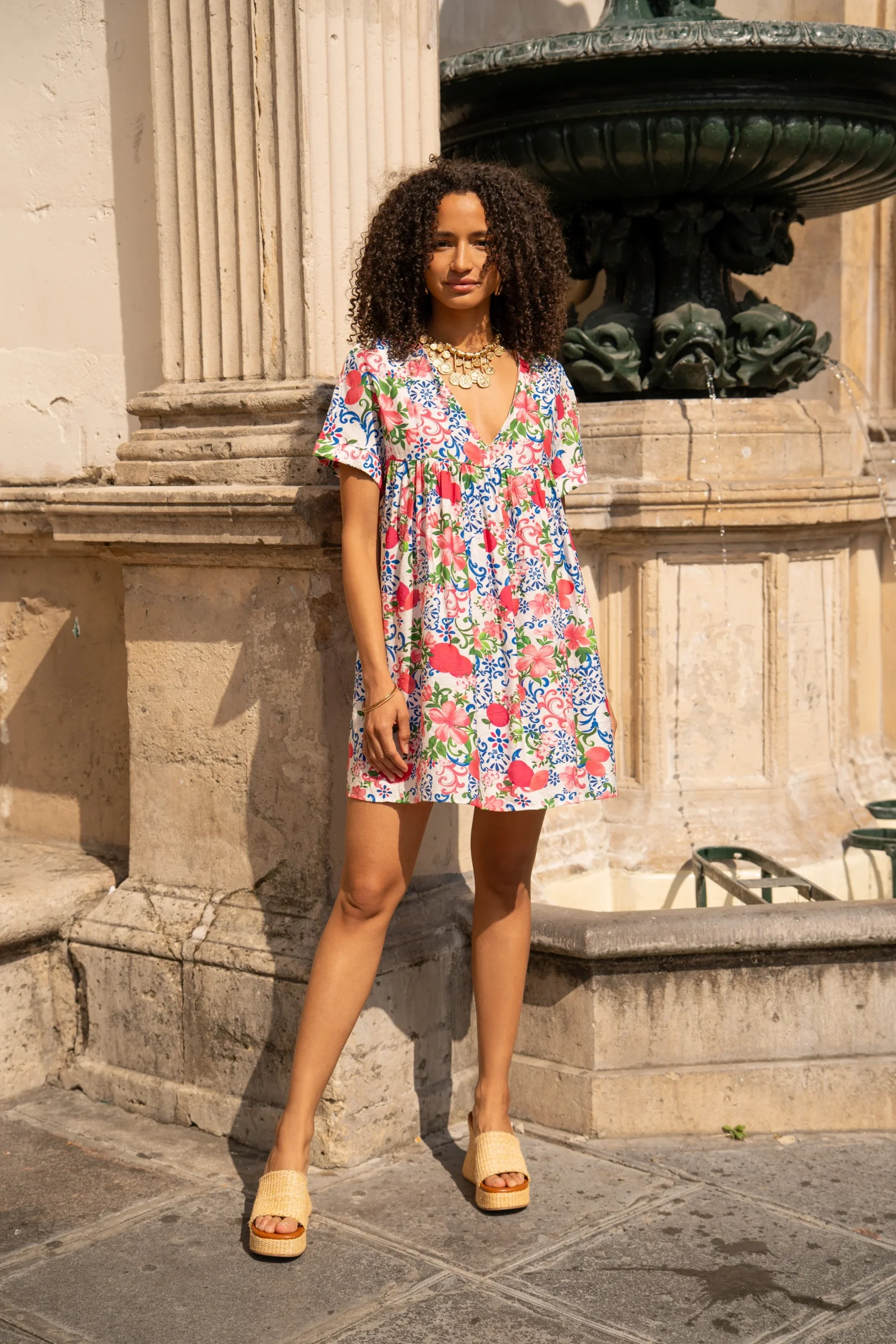 Adoptez un look estival irrésistible avec notre combinaison-short à motifs fleuris Nielle. Dotée d’un col en V flatteur et d’une ouverture au dos, elle allie style et confort à la perfection. Les poches ajoutent une touche pratique et décontractée, tandis que la coupe droite garantit une silhouette élégante. Idéale pour une journée ensoleillée ou une sortie décontractée, cette combinaison vous assure un look frais et tendance en toutes circonstances.