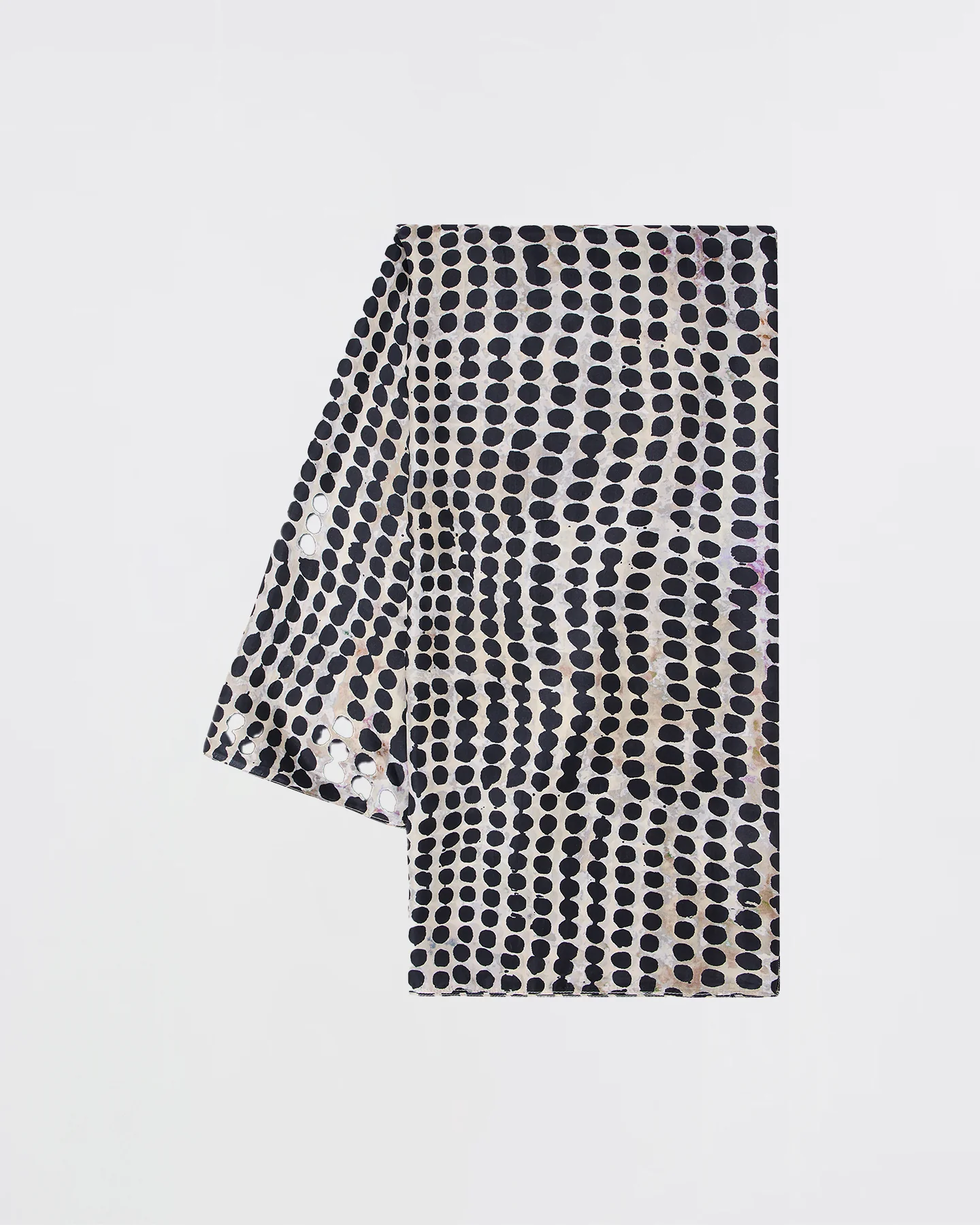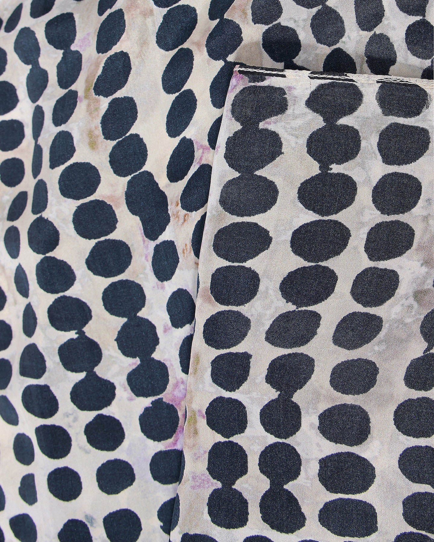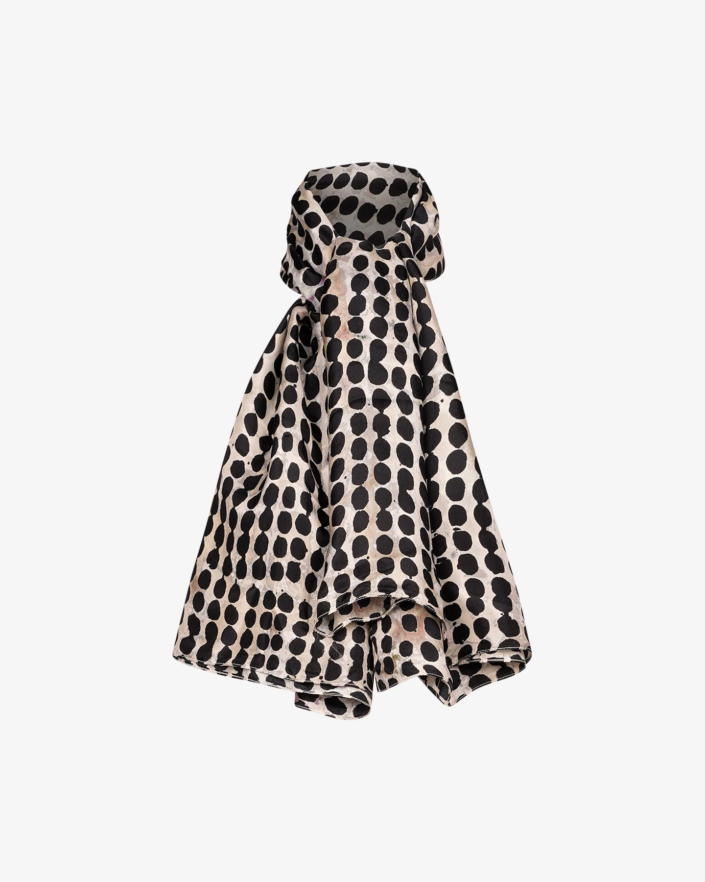 Ce foulard en soie imprimé à gros pois irréguliers dans les tons de noir est un accessoire de mode élégant et distinctif. La soie est un matériau luxueux qui confère une sensation de douceur et de fluidité, tandis que l’imprimé à gros pois irréguliers ajoute une touche de modernité et de vivacité au foulard. Taille: 112cm x 108cm