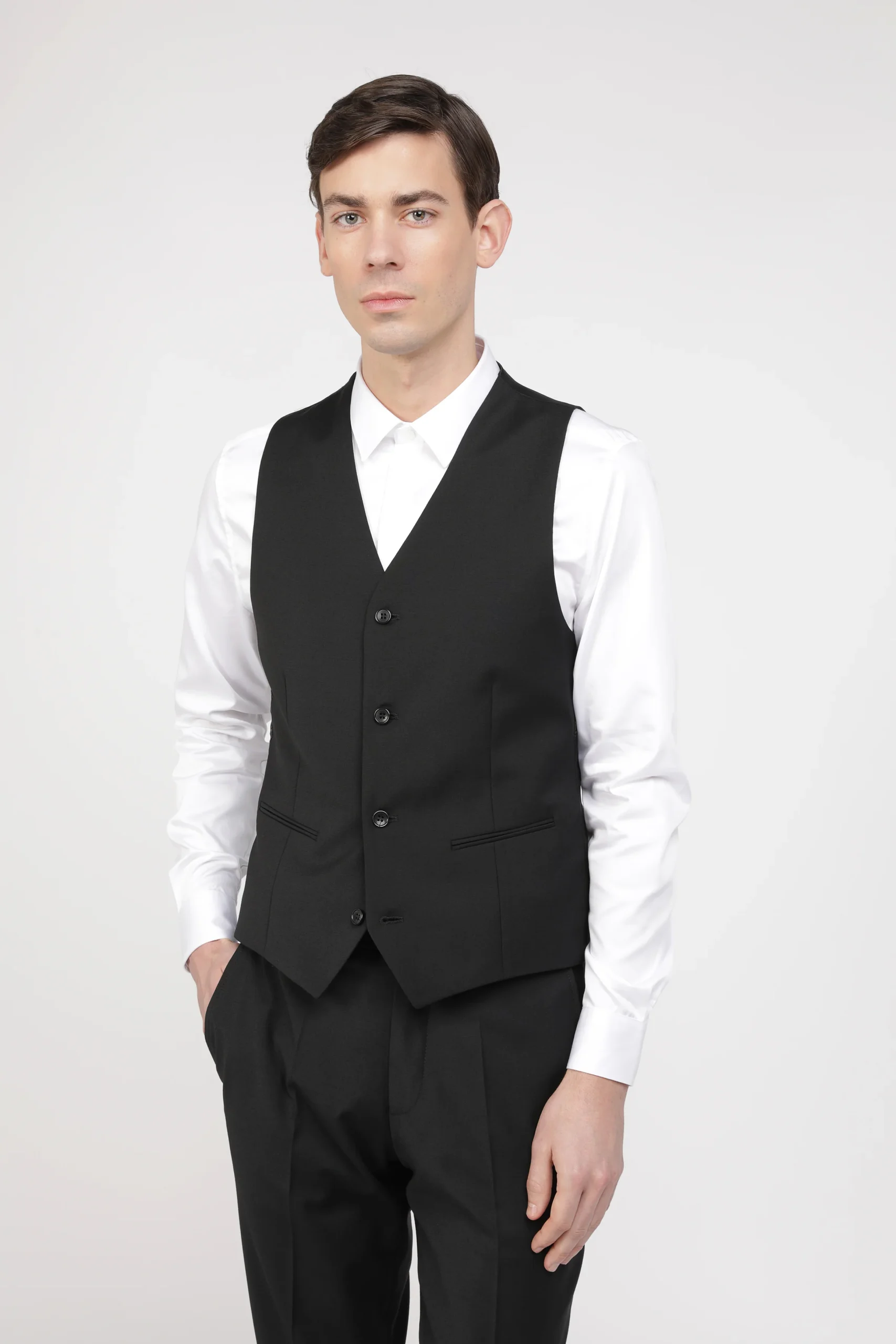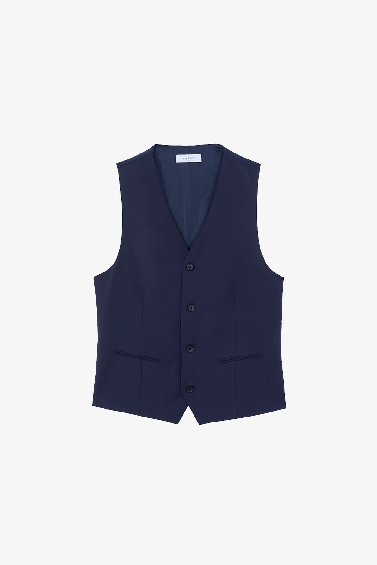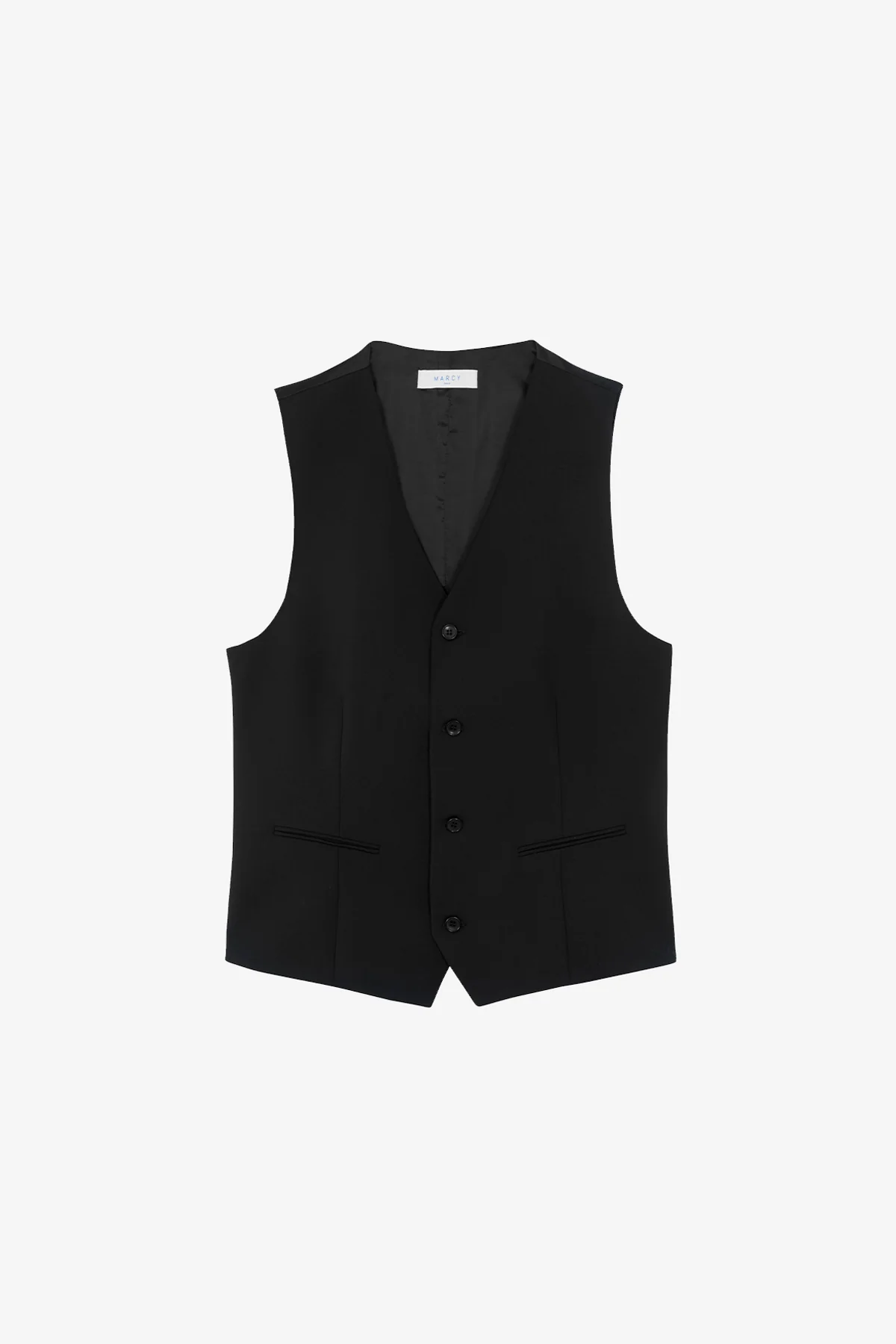 Gilet de costume. Poches passepoilées devant. Patte de serrage au dos. Fermeture boutonnée.