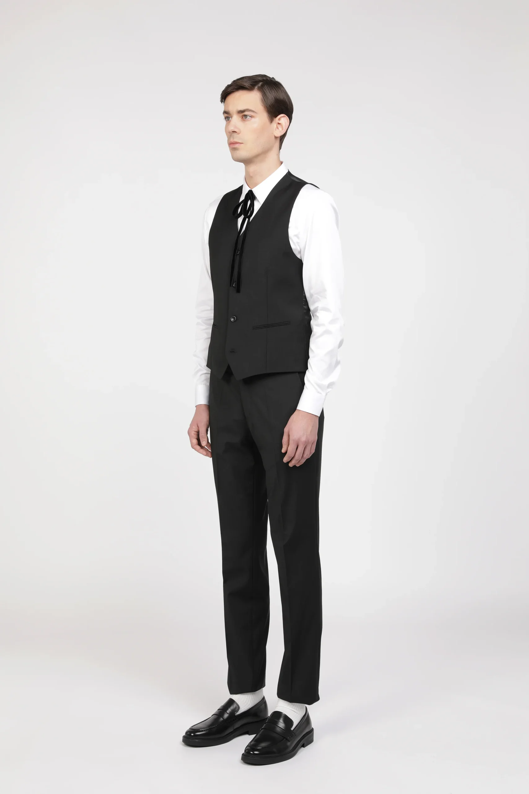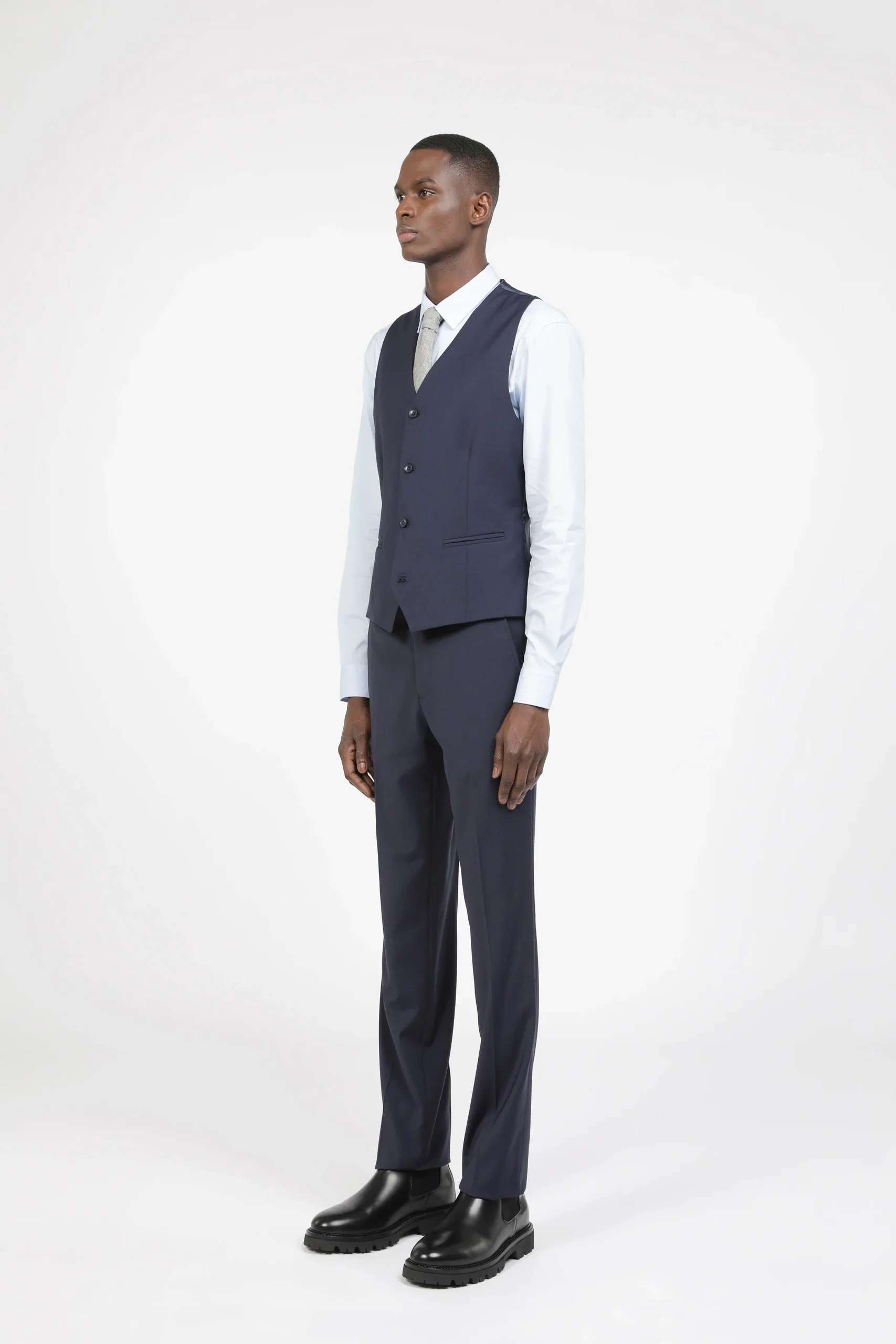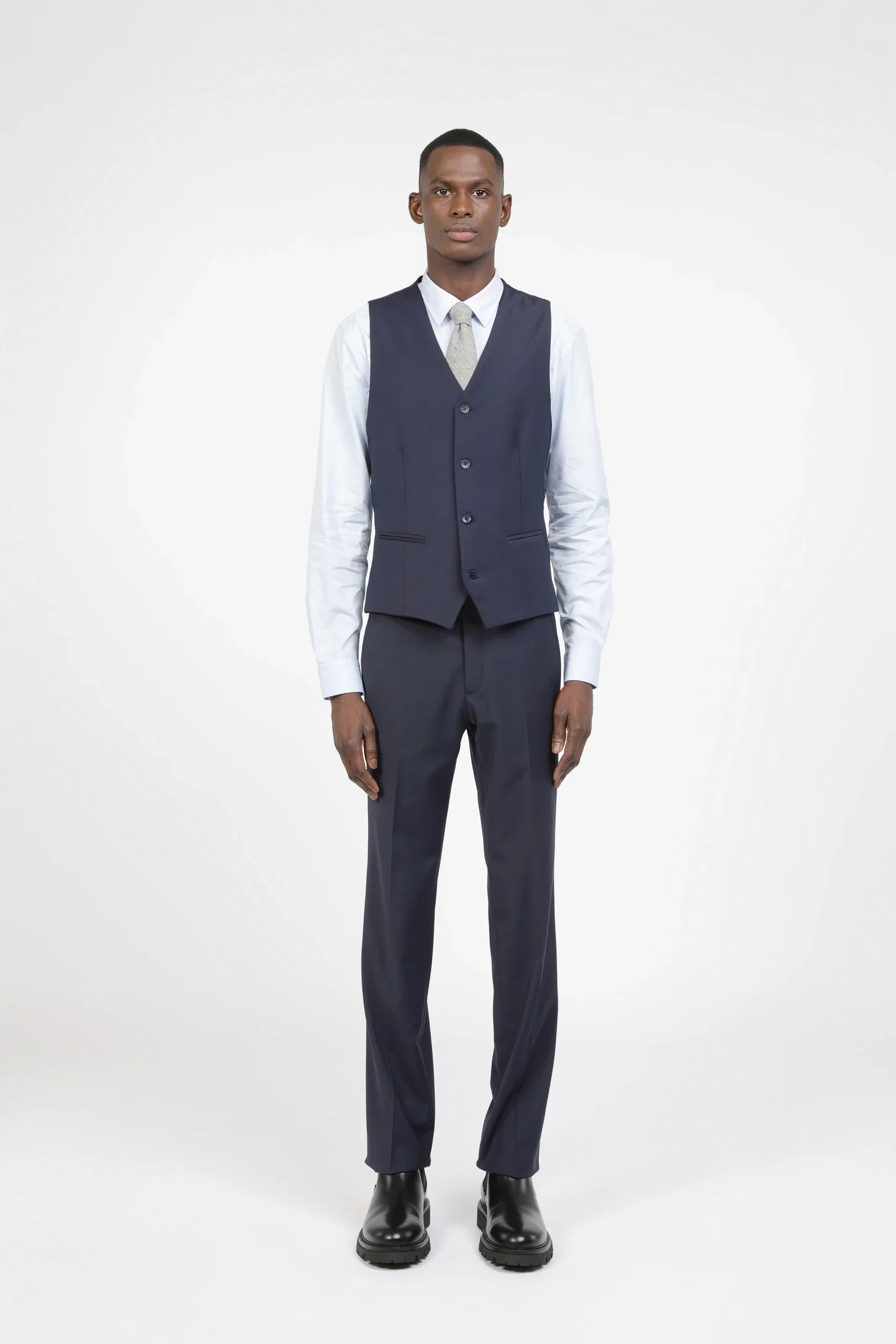 Gilet de costume. Poches passepoilées devant. Patte de serrage au dos. Fermeture boutonnée.