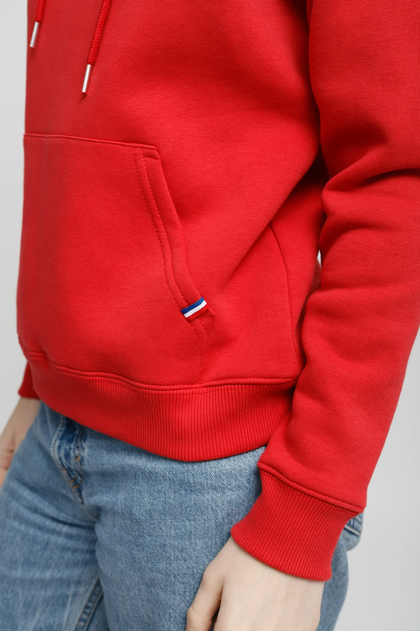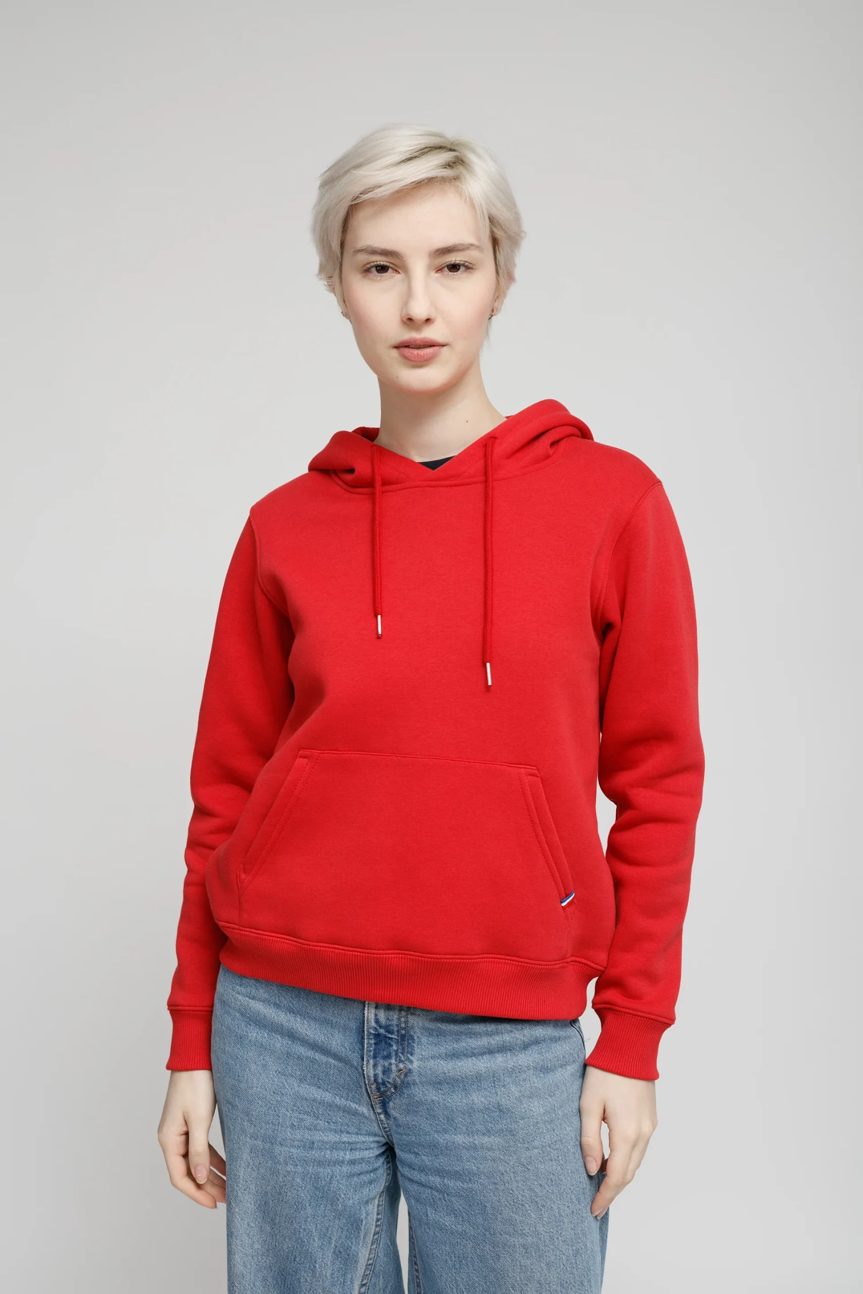 Hoodie femme, molleton gratté 300g, 70% coton biologique et 30% polyester.