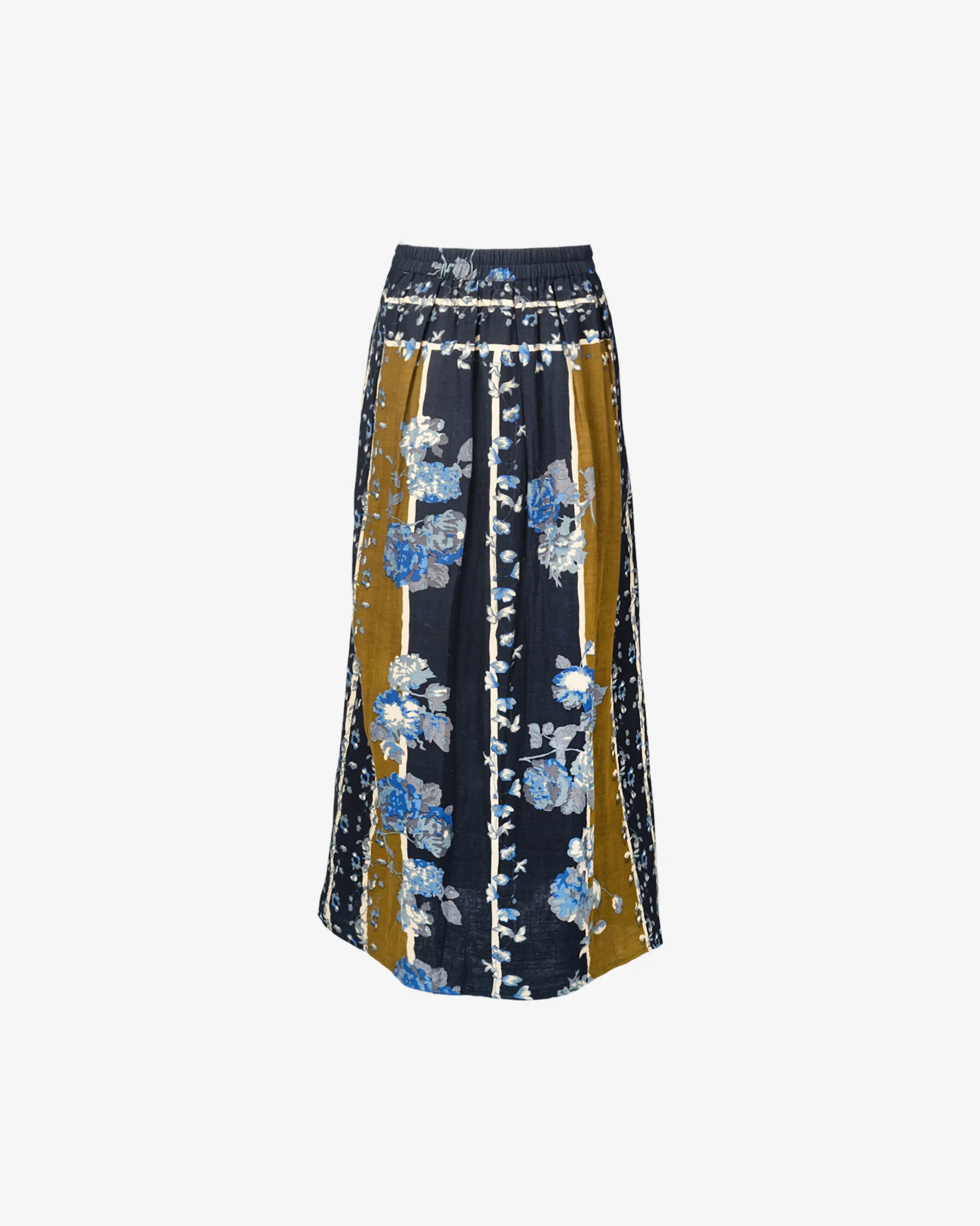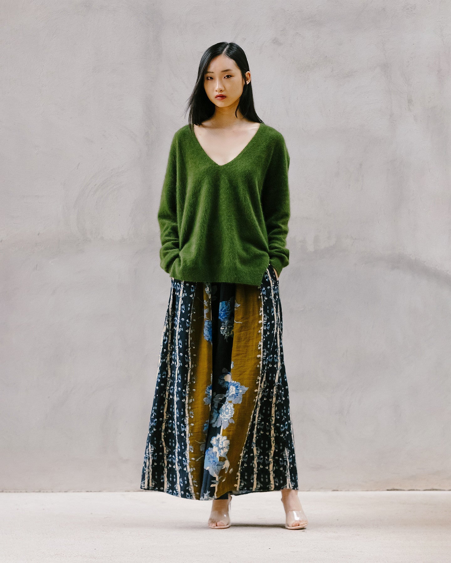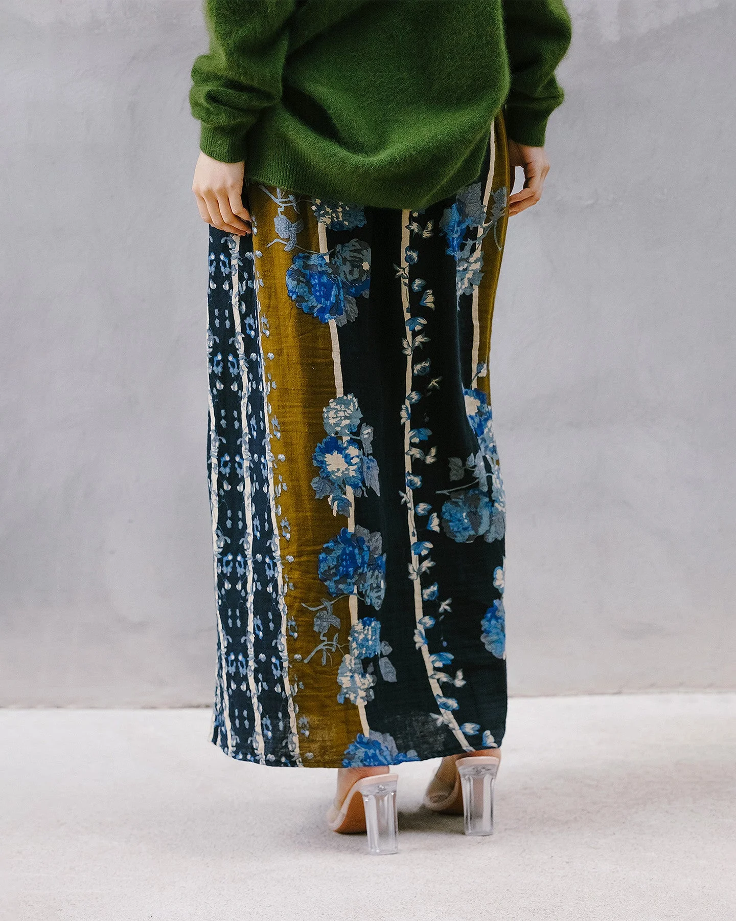 Netteté des lignes et des couleurs sur fond de fleurs artistiquement peintes pour attaquer l’automne en douceur dans notre jupe longue en coton. Coupe souple, volume généreux monté sur un élastique à la taille pour apporter plus de confort au modèle. Nos divers pulls en laine de raccoon rehaussent le modèle d’une vibrante alchimie.