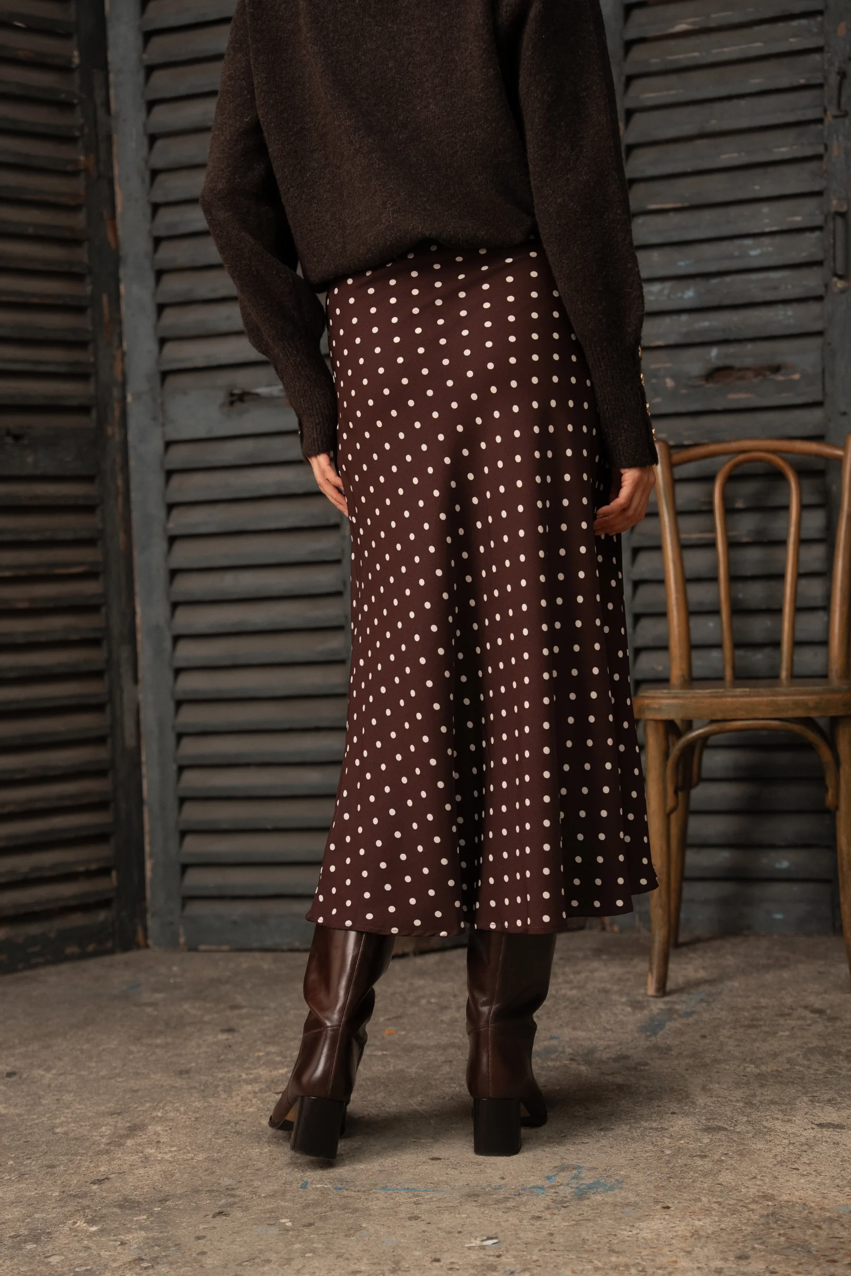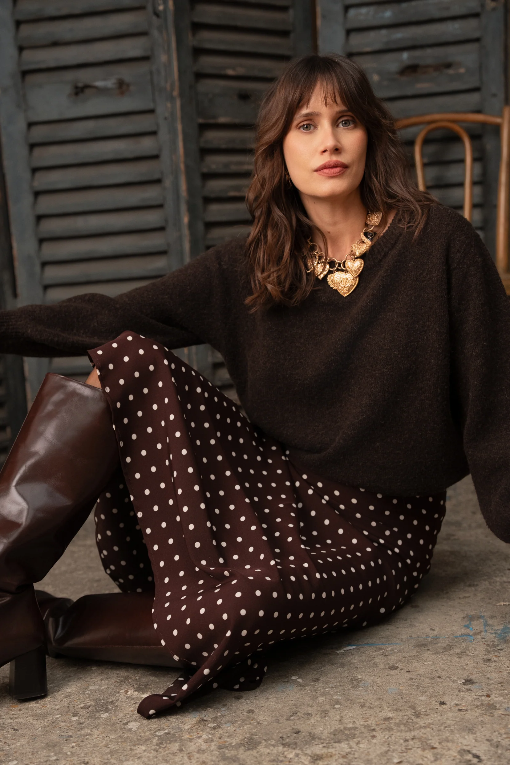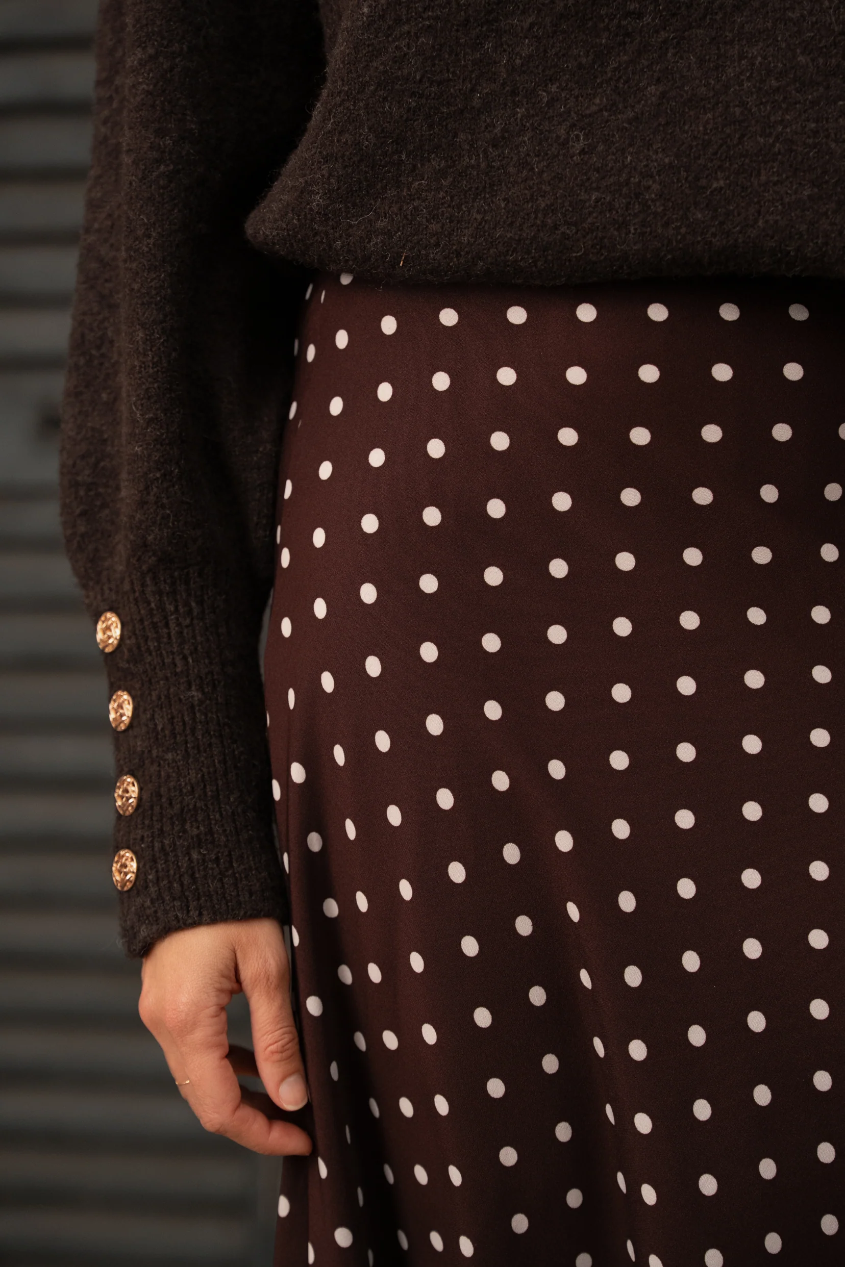 Avec son brun café profond relevé de pois crème, elle mêle charme rétro et élégance naturelle.
