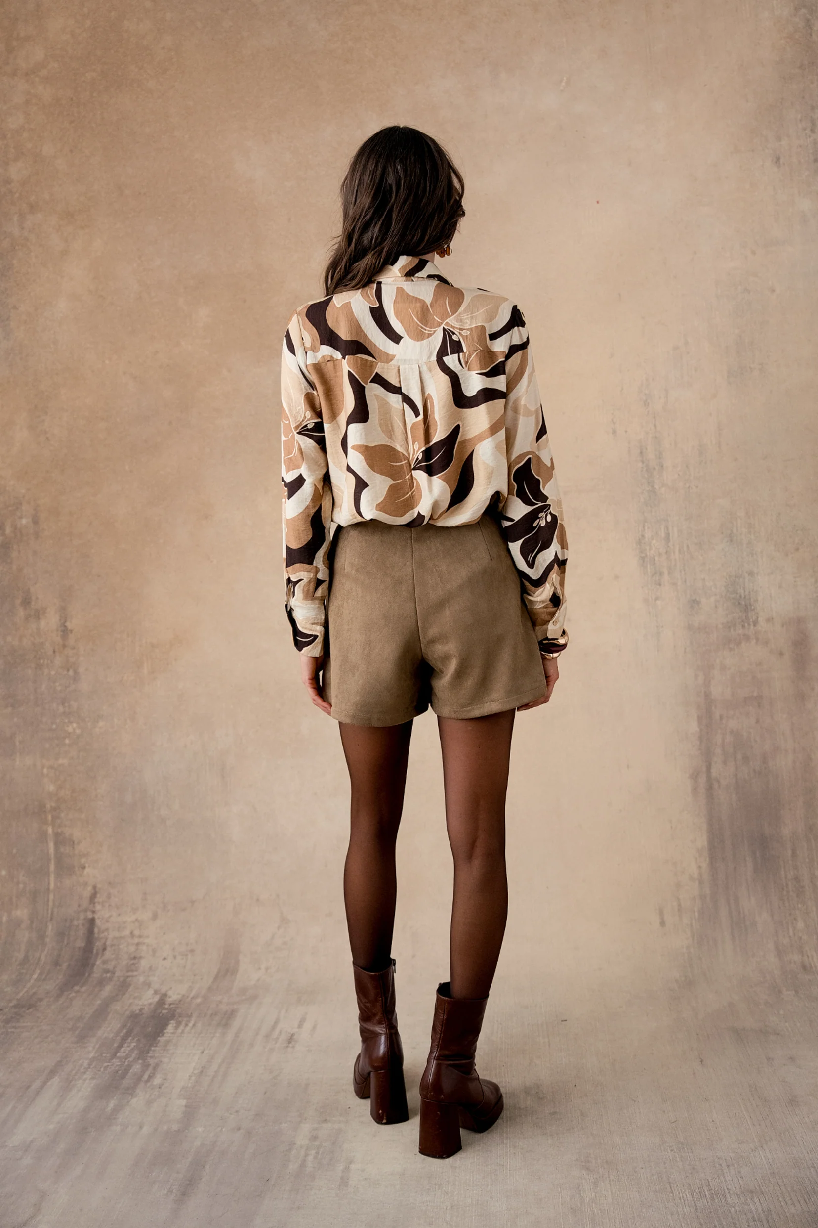 Derrière ses airs de jupe évasée, elle cache la praticité d’un short, parfait pour accompagner vos journées sans contrainte. Sa texture douce façon suédine et ses boutons sur le côté dessinent une allure féminine, à la fois rétro et moderne.