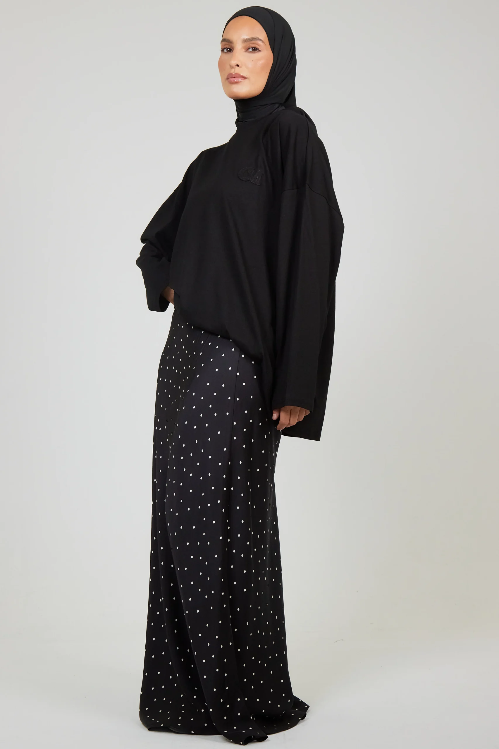 Une Jupe fluide et opaque, légèrement ajustée pour une silhouette élégante, avec une taille élastique. Son tissu satiné apporte une touche élégante et à la fois facile à porter au quotidien dans plusieurs styles.