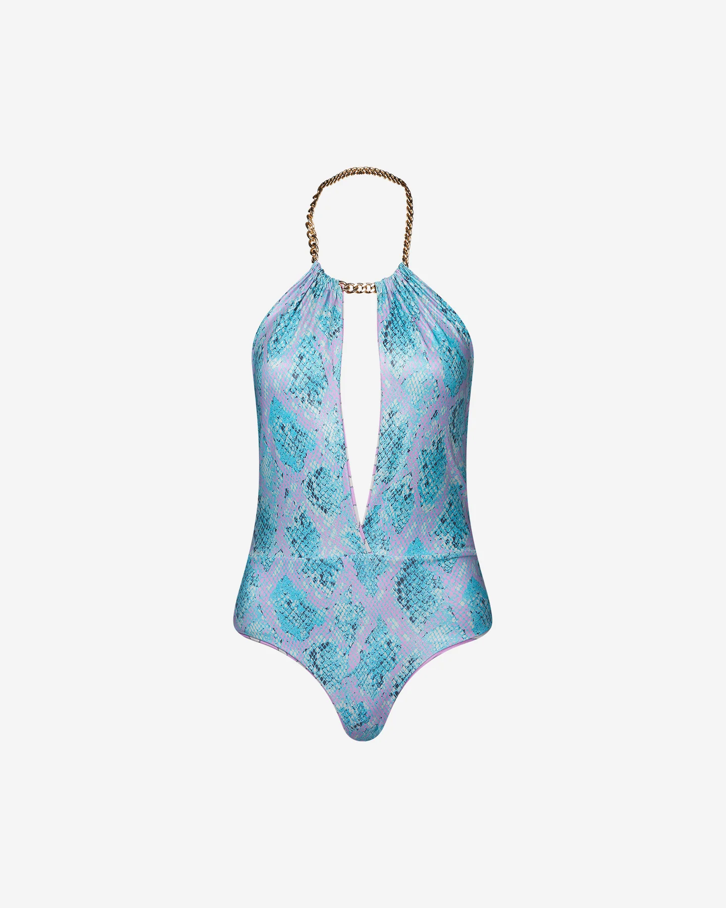 Ce splendide body de bain est une véritable œuvre d’art, parfait pour vous plonger dans un océan de douceur et de style. Son imprimé reptile, dans des tons chaleureux de bleu et de rose, ajoute une touche de caractère et de sophistication au modèle, vous permettant de vous démarquer avec élégance sur la plage ou au bord de la piscine. La boucle autour du cou, se fermant sous forme de chaînette sur l’arrière, est un détail raffiné qui ajoute une touche de glamour et de féminité au body de bain. Cette finition sophistiquée met en valeur la silhouette et apporte une dimension supplémentaire à la pièce.