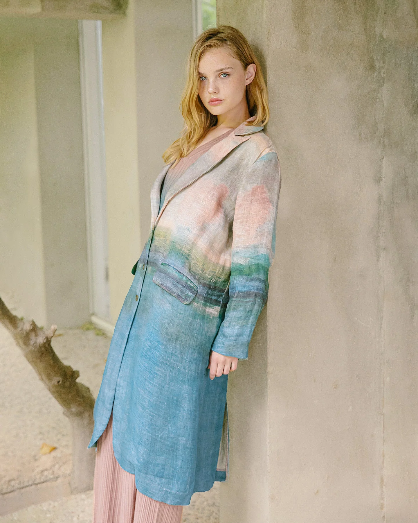 Inspiration naturelle pour notre manteau en lin rustique aux vibrations artistiques hautes en couleurs. Sa coupe enveloppante légèrement oversize joue avec les volumes, elle dégage une belle énergie avec son encolure et ses poches avant. Un manteau qui se veut optimiste et dynamique.