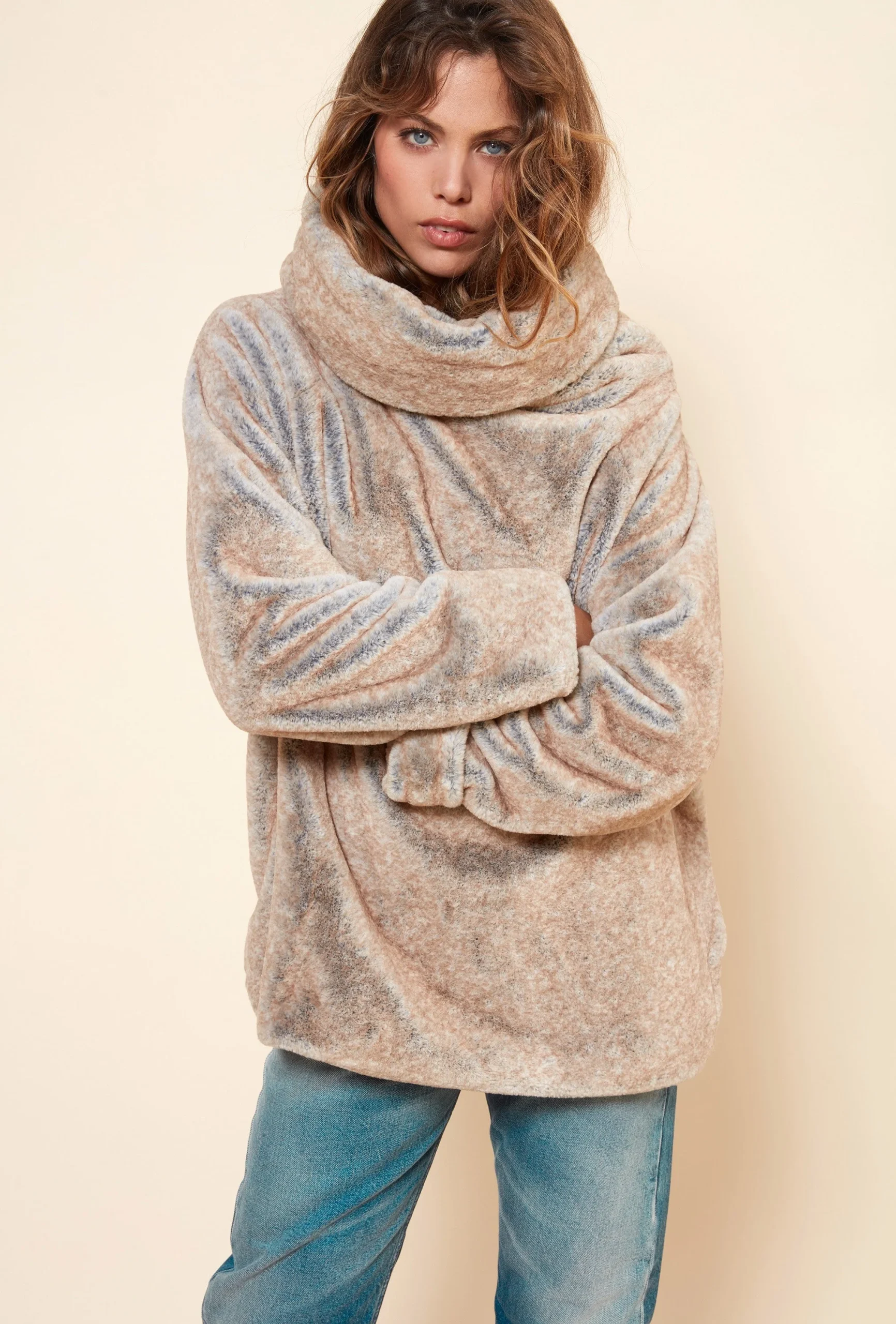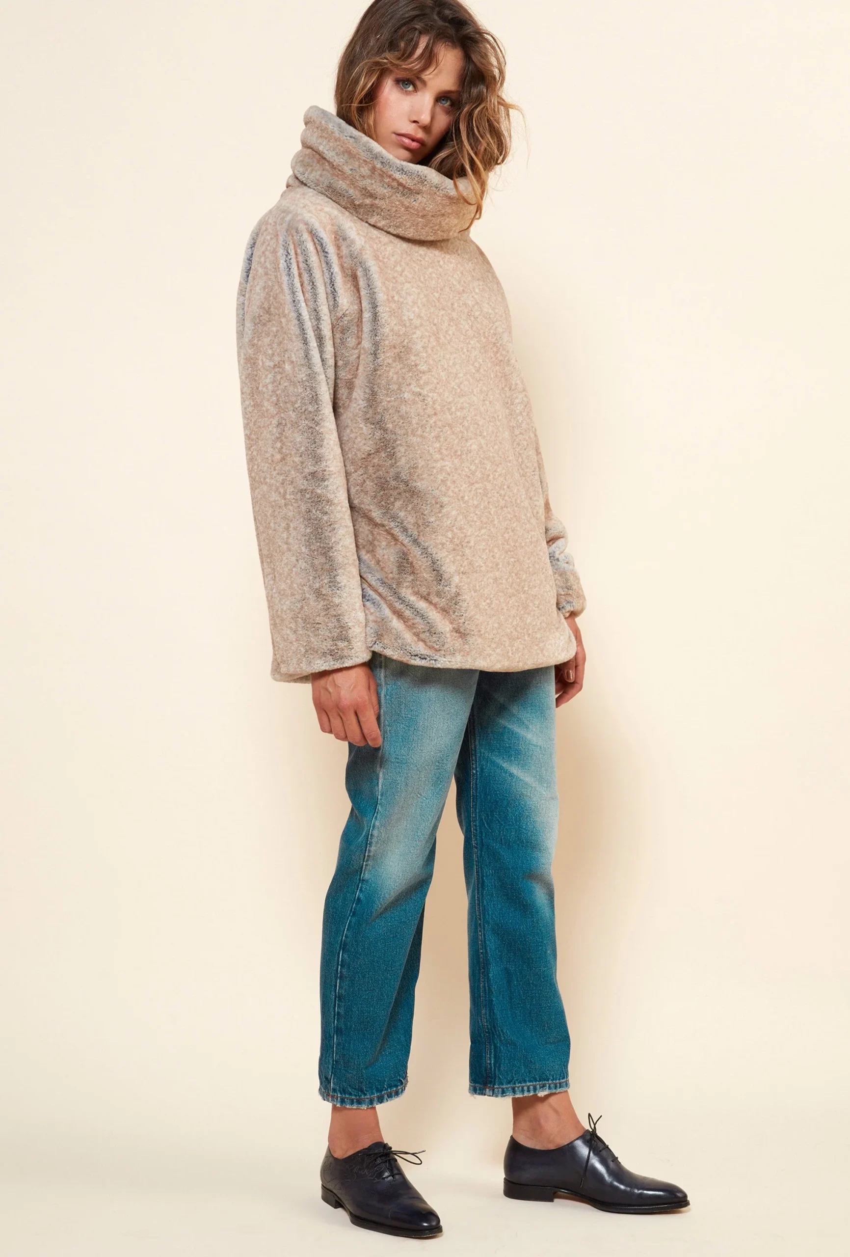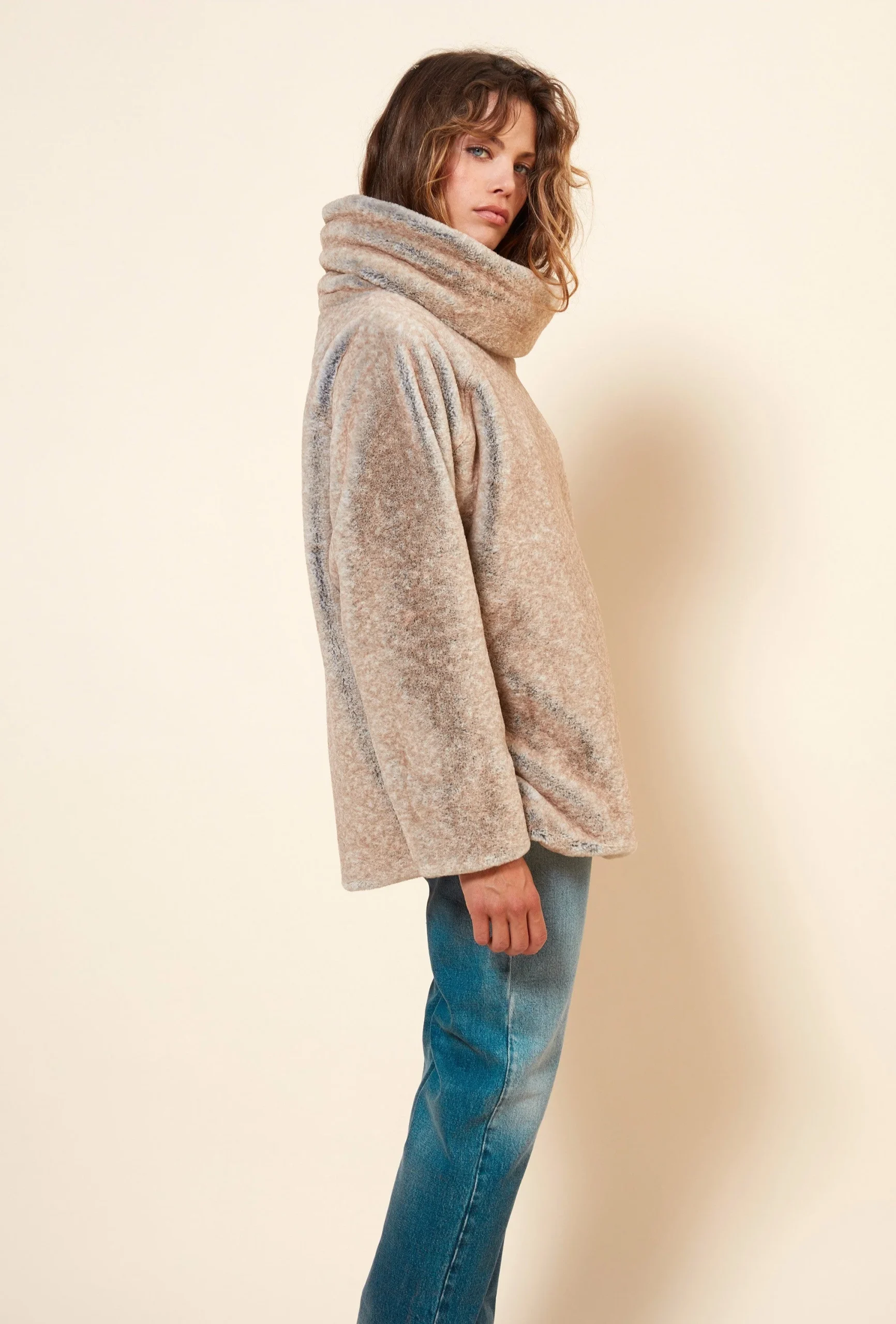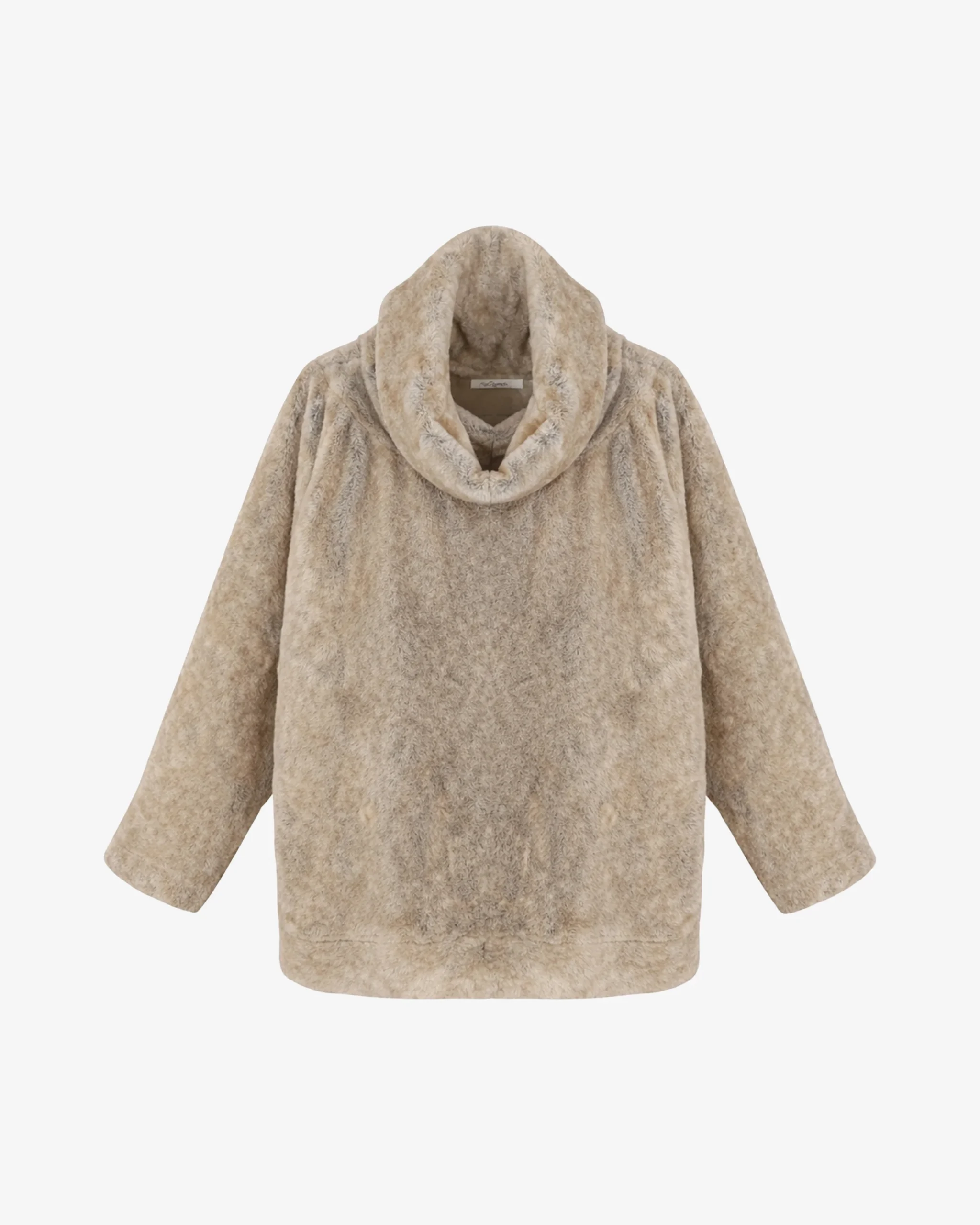 Ce manteau esprit pull à col roulé présente une coupe décontractée légèrement oversize facile à porter. Réalisé en fausse fourrure, il vous accompagnera de sa douceur et de sa chaleur. Le mannequin porte ce manteau en taille 1