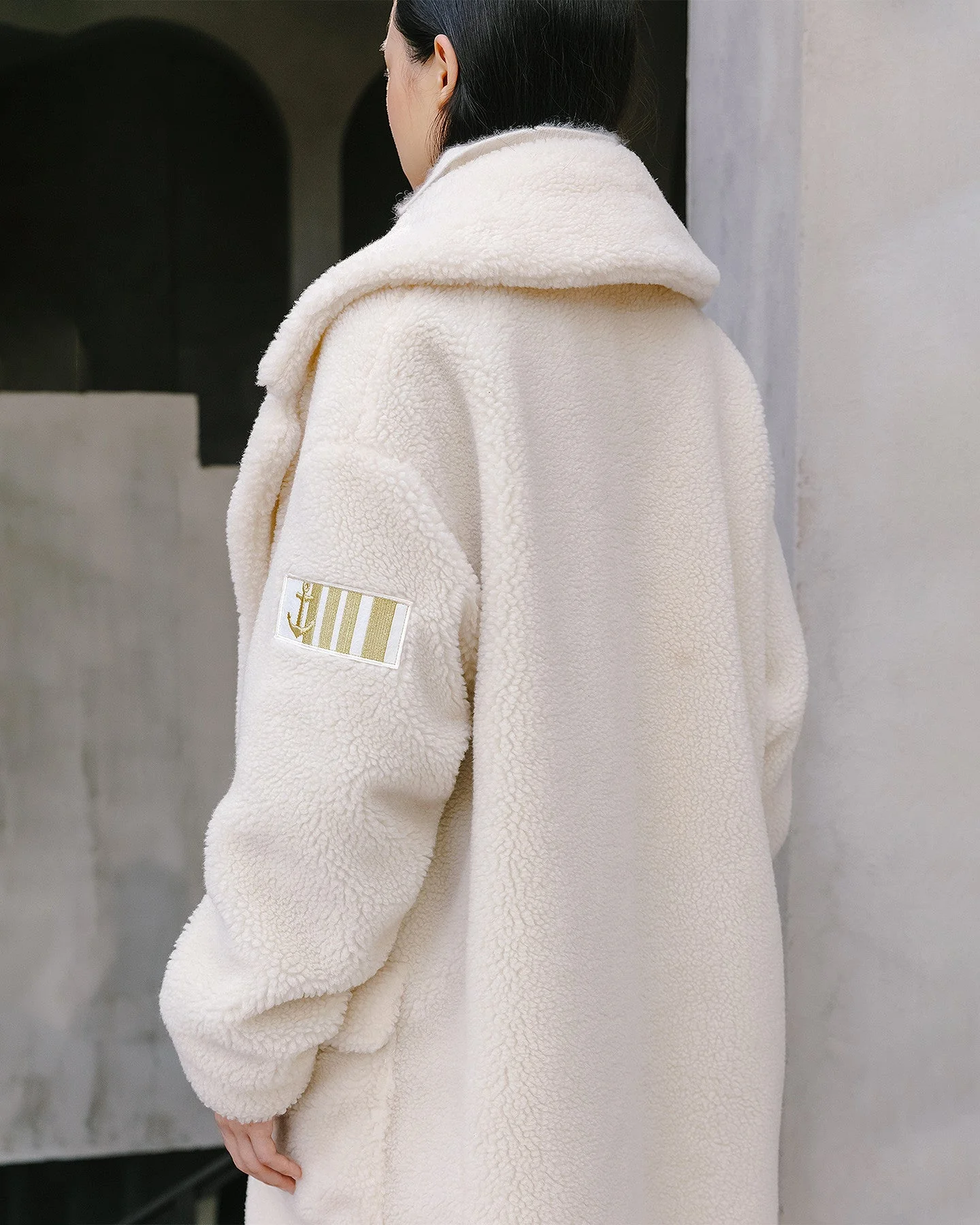 Donnez le ton de la saison en arborant notre long manteau en esprit peau retournée se voulant léger et chaud. Mis en scène avec une belle encolure châle et deux grandes poches à revers, il vous couvre de douceur et de confort. Il se porte aussi bien sur l’envers que sur l’endroit. Source de sensualité, sa douce couleur écrue, désir d’une nouvelle expression apportera de la lumière à votre hiver. Notre mannequin porte une taille 1. Ce modèle taille normalement, prenez votre taille habituelle.