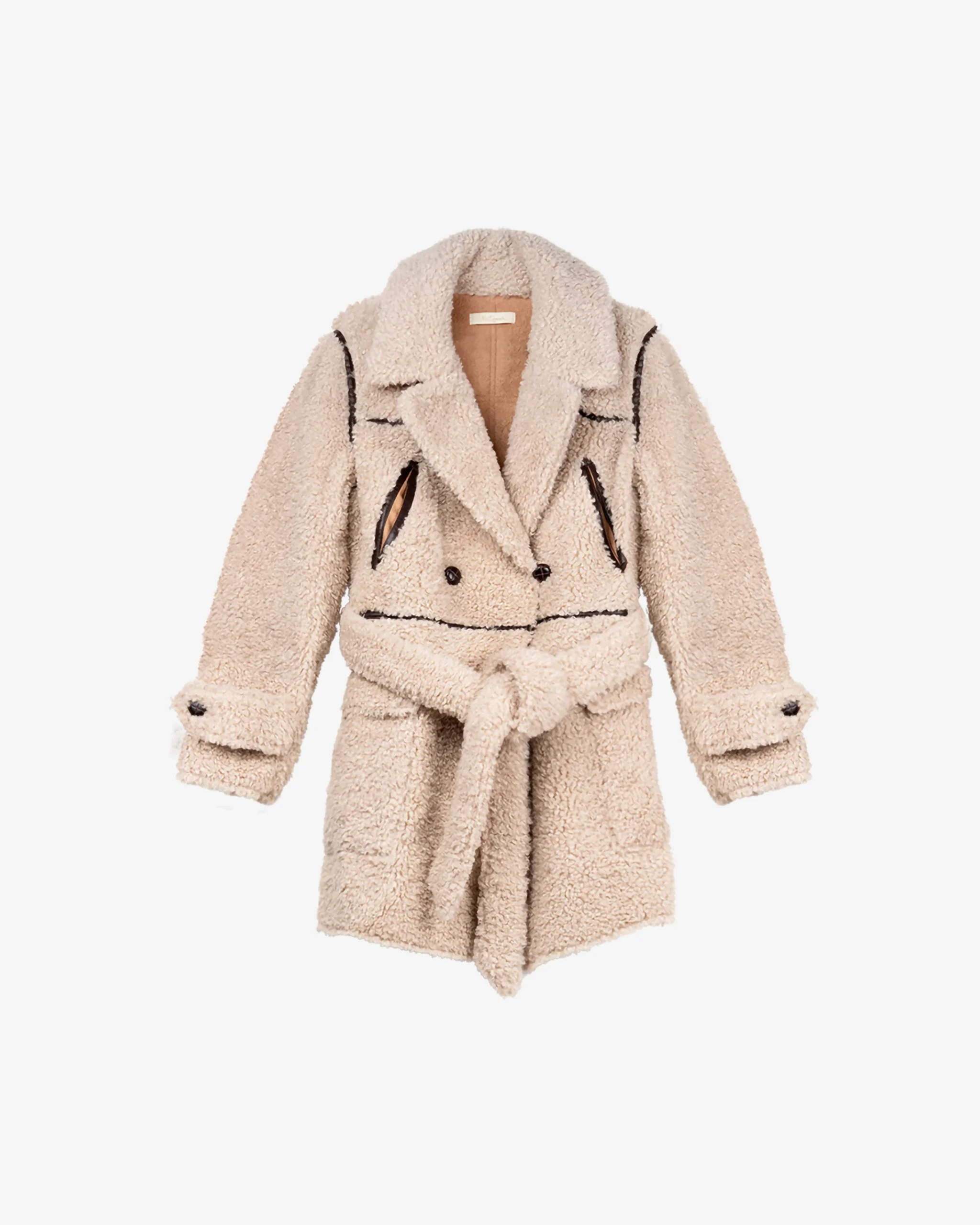 Eloge de l’hiver et du temps qui passe, notre veste couleur tout en esprit peau retournée sublime au delà des saisons l’art des matières douillettes et chaudes. De facture courte, version caban chic avec son boutonnage croisé, ses poches plaquées et sa ceinture, elle est la pièce indispensable de la saison. Ce modèle taille normalement, prenez votre taille habituelle.
