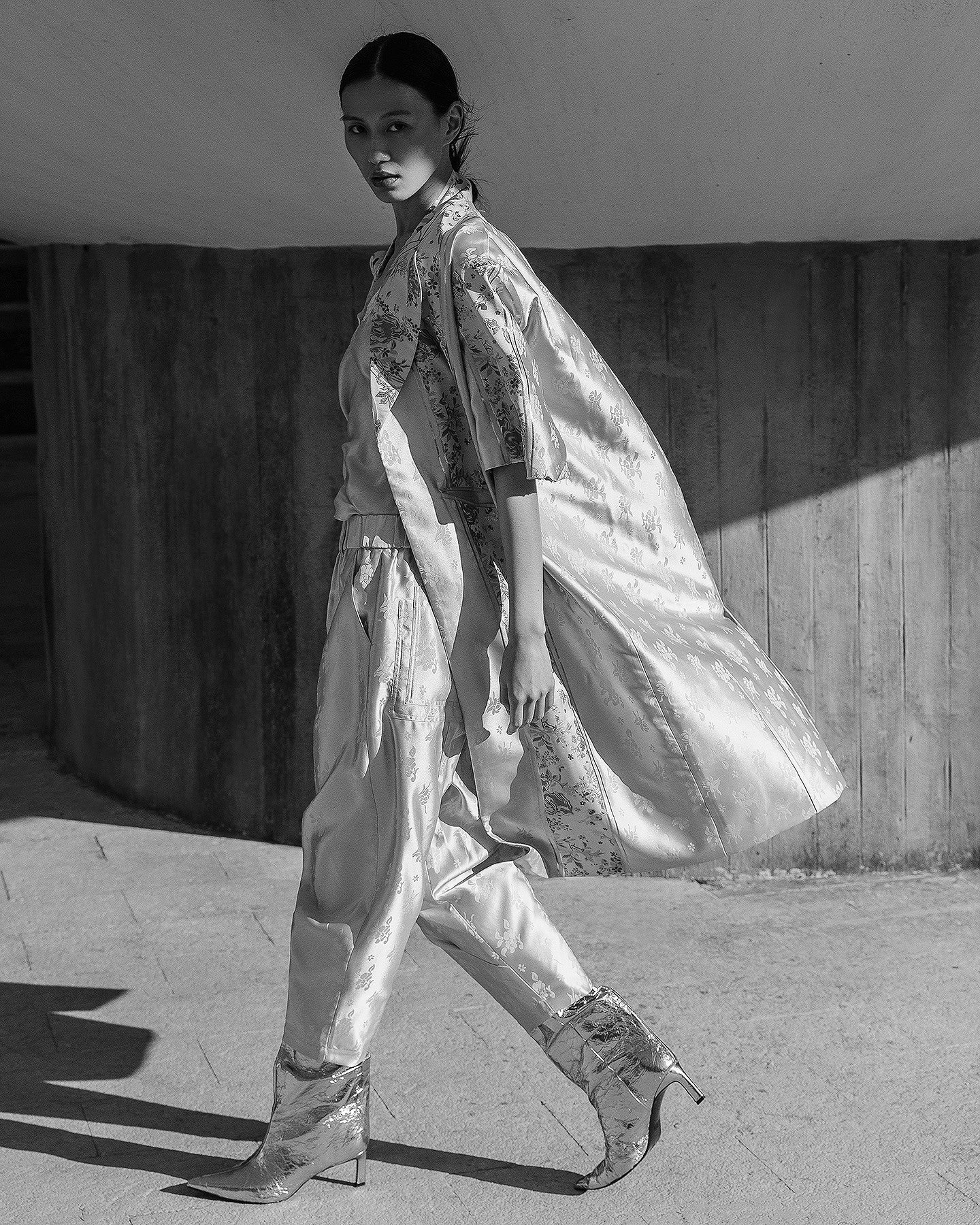 La douceur du jacquard multicolor pour ce manteau droit aux lignes essentielles est de mise. La légèreté des couleurs et des dessins dont un fil lurex parcourt le modèle évoque une belle élégance urbaine. Les manches 3/4, l’encolure châle et les poches revers expriment une inspiration orientale.