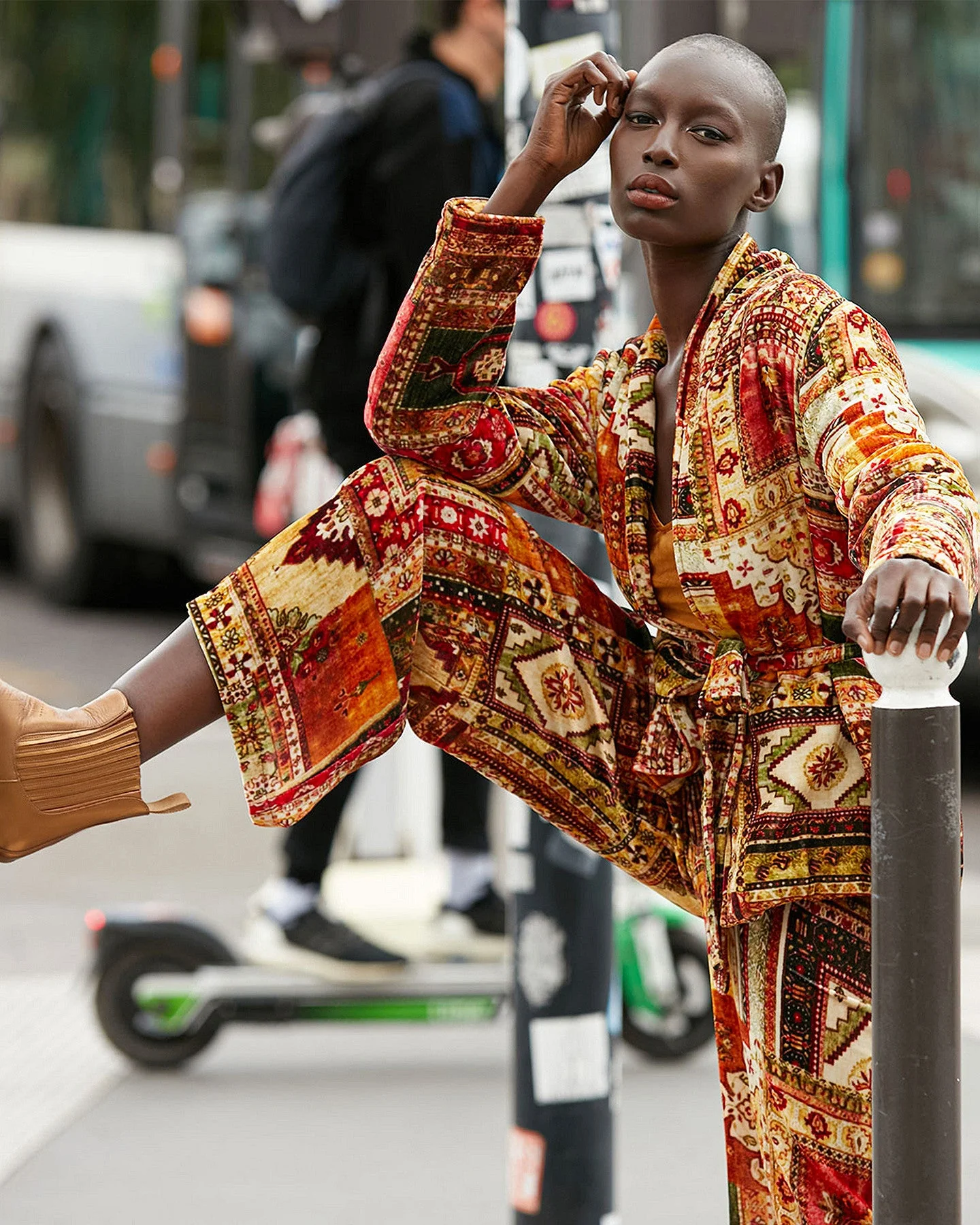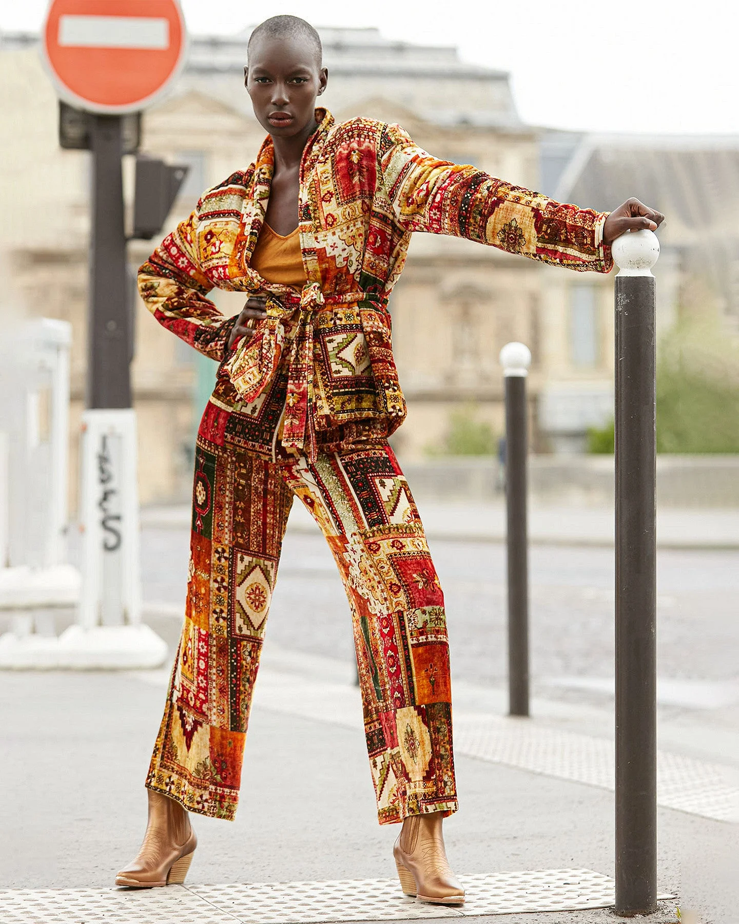 Ce pantalon en velours de soie mélangé possède une coupe évasée au style contemporain. Sa taille est élastiquée pour plus de confort tandis que l’imprimé façon tapissier apporte douceur et style au modèle. Vous pourrez adopter le total look en l’associant à la veste Bibibaf du même thème.