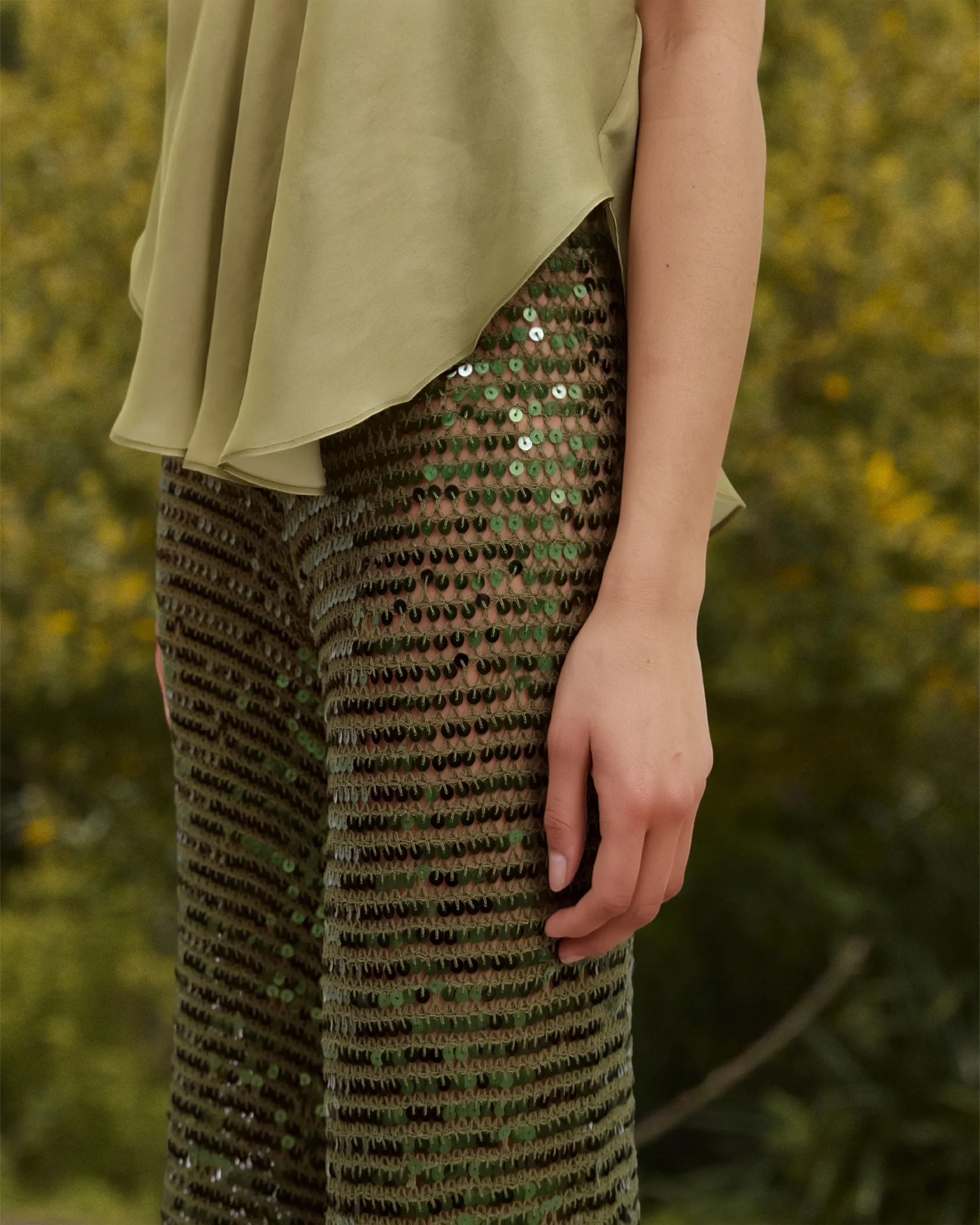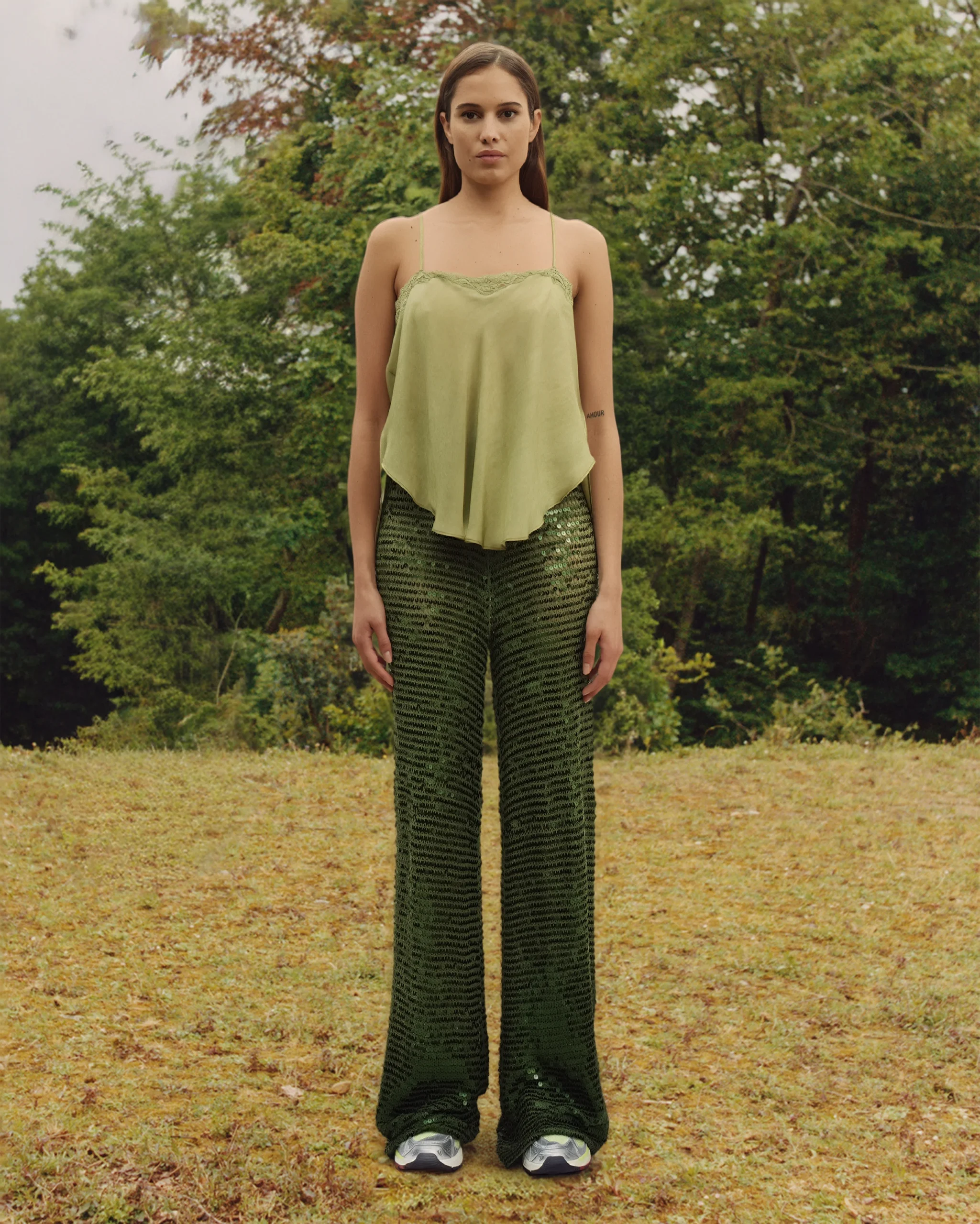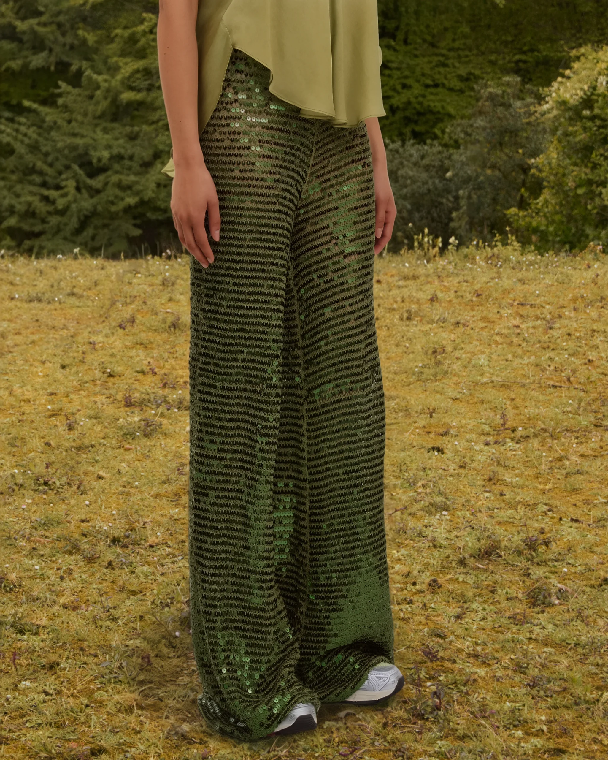 Découvrez l’ultime pantalon en filet de sequins kaki, une pièce exquise qui allie glamour et confort avec perfection. Confectionné dans un tissu souple et fluide, ce pantalon offre une sensation luxueuse à chaque mouvement. Sa taille élastique assure un ajustement parfait, tandis que sa coupe longue élance la silhouette et crée une allure élégante et sophistiquée. L’éclat subtil des sequins ajoute une touche de glamour à notre pantalon parfait pour les soirées spéciales ou pour ajouter une dose d’éclat à votre tenue quotidienne.