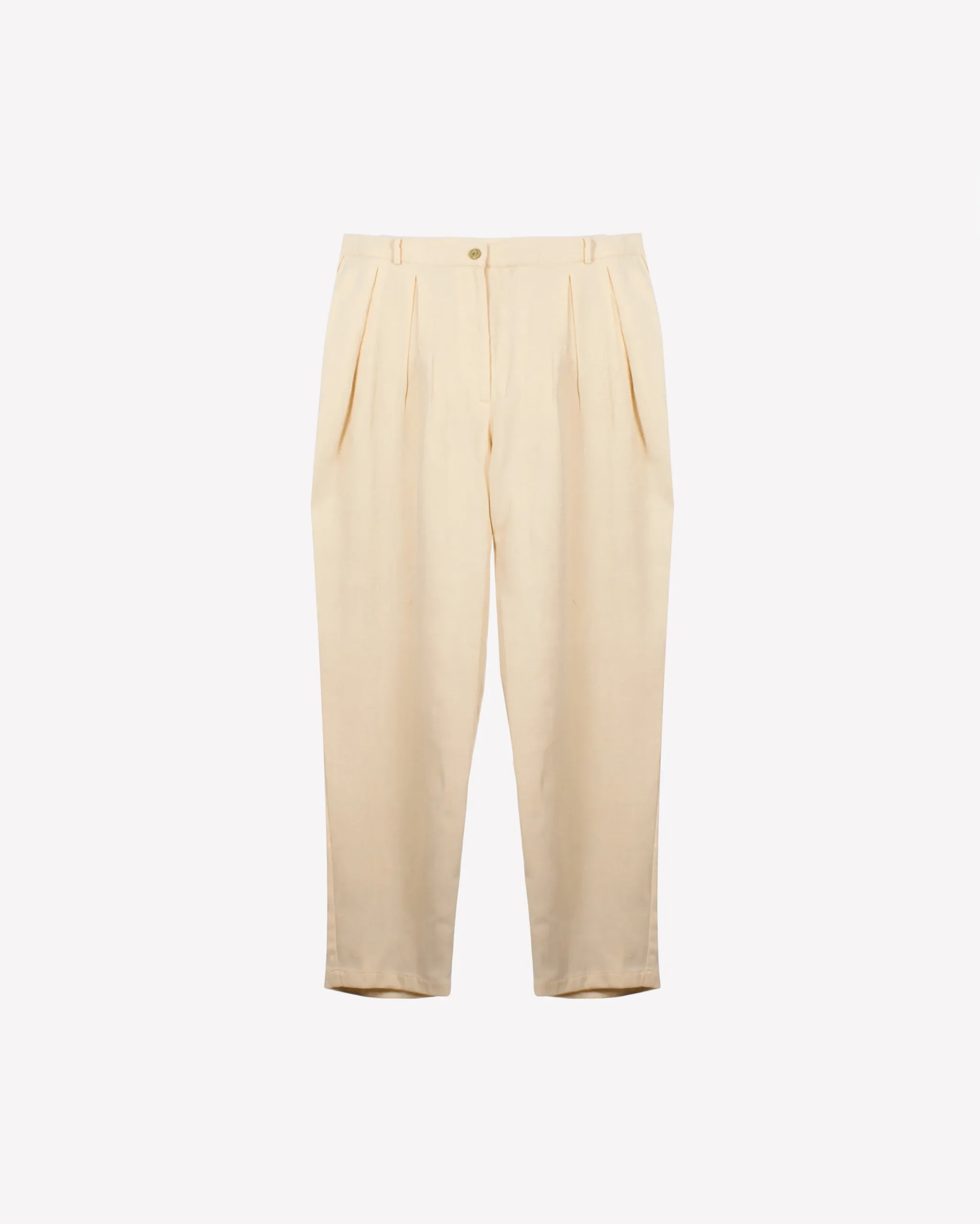 Interprétation à la fois décontractée et raffinée du célèbre jogging pour un look résolument urbain. La taille est structurée et des plis plat en exaltent le style complété par des poches fendues sur le côté.