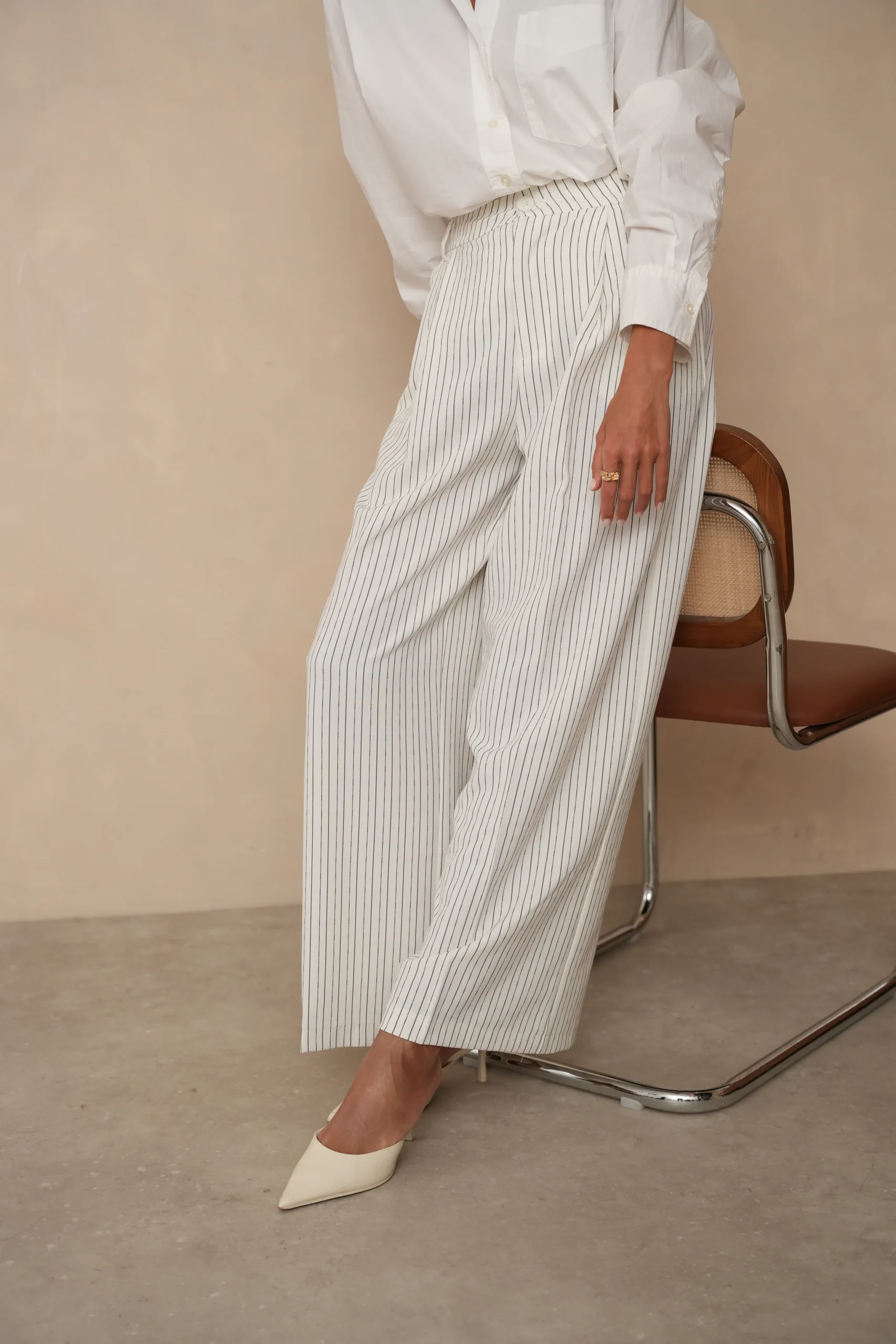 Misez sur une silhouette fluide et stylée avec le pantalon Clovis. Sa coupe ample assure un confort absolu tout en apportant une touche d’élégance décontractée. Doté de poches latérales pratiques et de passants pour ceinture, il se distingue par son motif à rayures subtil et raffiné. Idéal pour un look chic et moderne, il s’adapte aussi bien à une tenue casual qu’à une allure plus sophistiquée.
