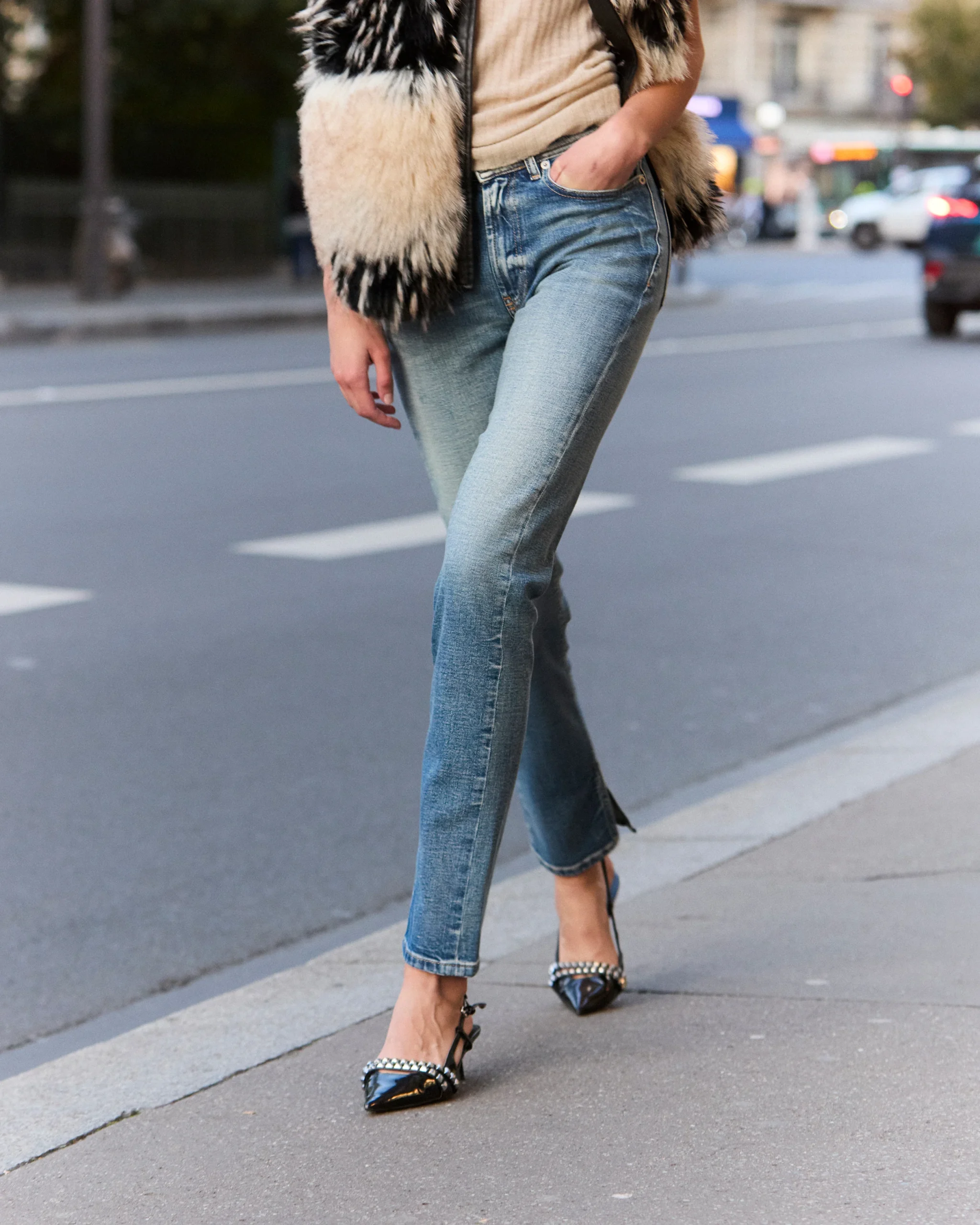 Jean long à la coupe droite, réalisé dans un denim bleu clair au délavage authentique. Construction 5 poches classique, twistée par des fentes discrètes à l’intérieur des jambes pour dévoiler subtilement la chaussure. Une pièce facile à porter, à l’esprit casual affirmé, parfaite avec des souliers pointus pour un contraste moderne.
