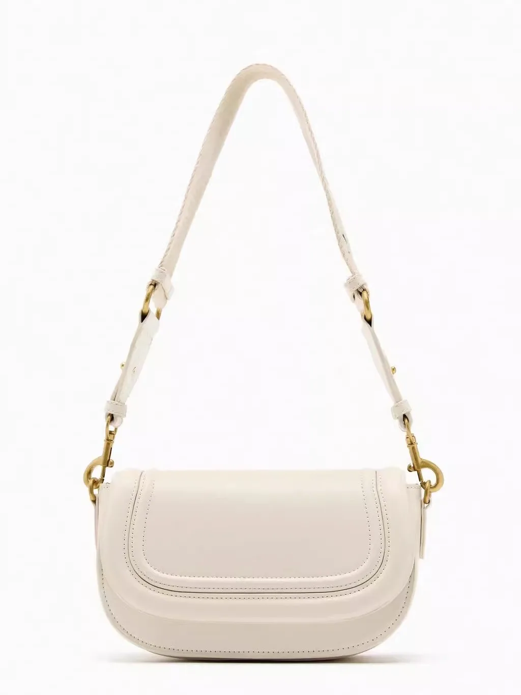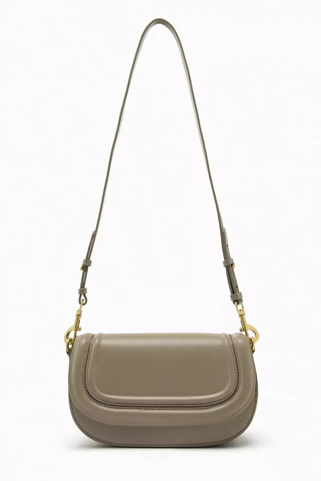 Fabriqué à partir de cuir synthétique en microfibres de qualité, ce sac incarne la durabilité et le style. Sa forme arrondie de type saddle et son grand rabat orné de surpiqûres ajoutent une touche de modernité à n’importe quelle tenue.