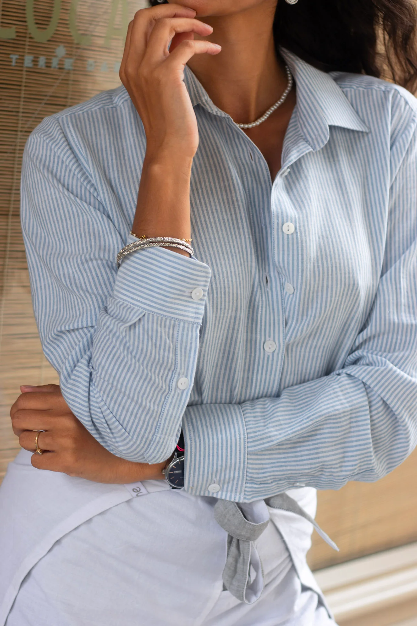 Le design d’Emelyne est pensé pour allier style et confort. La coupe droite et fluide permet une grande liberté de mouvement tout en garantissant une silhouette élégante. Ses boutons en nacre naturelle, issus de coquillages, ajoutent une note d’élégance discrète et authentique. Les poignets ajustables grâce à leurs boutons offrent une touche de sophistication à cette chemise qui s’adapte aussi bien à une tenue formelle qu’à un look plus décontracté.