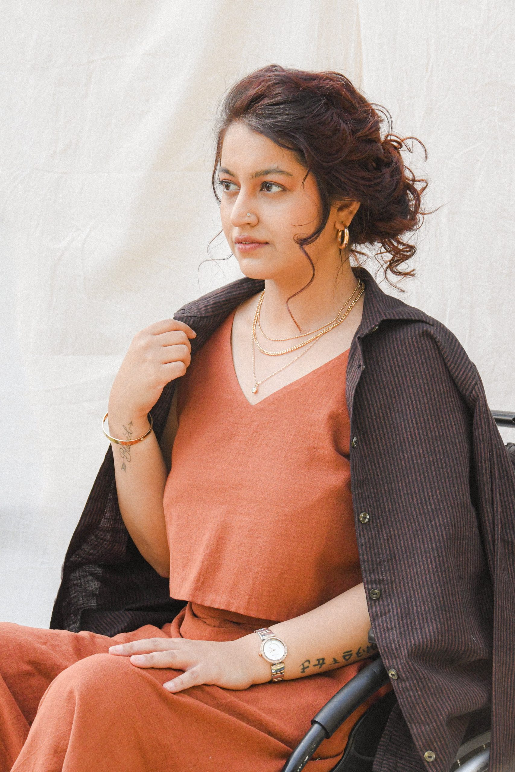 La chemise Emelyne est bien plus qu’un simple basique, c’est une pièce maîtresse intemporelle de la collection Aune. Confectionnée à partir de coton 100 % tissé à la main dans les ateliers de l’ONG Tender Heart en Inde, chaque chemise reflète le savoir-faire artisanal et l’héritage des métiers à tisser traditionnels. Les fines rayures verticales apportent une touche de raffinement tout en allongeant subtilement la silhouette.
