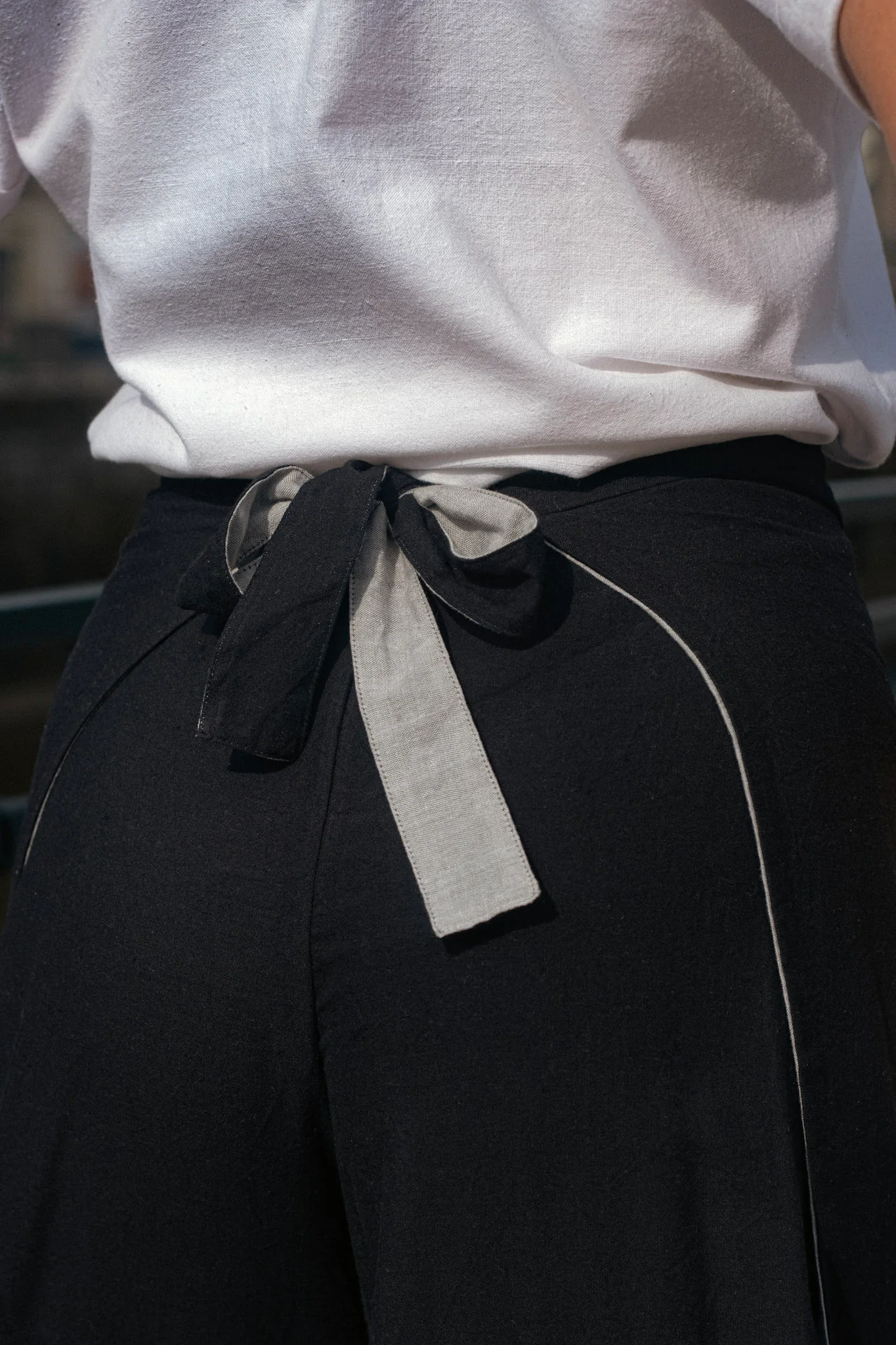 Description du produit Pantalon wrap réversible Jeannette Le pantalon Jeannette est conçu pour répondre aux besoins de toutes les morphologies grâce à son système de nouage inspiré du pantalon thaï traditionnel. Il se porte de manière ajustée autour de la taille et s’enroule élégamment autour des hanches, offrant un mouvement fluide avec des fentes sur […]