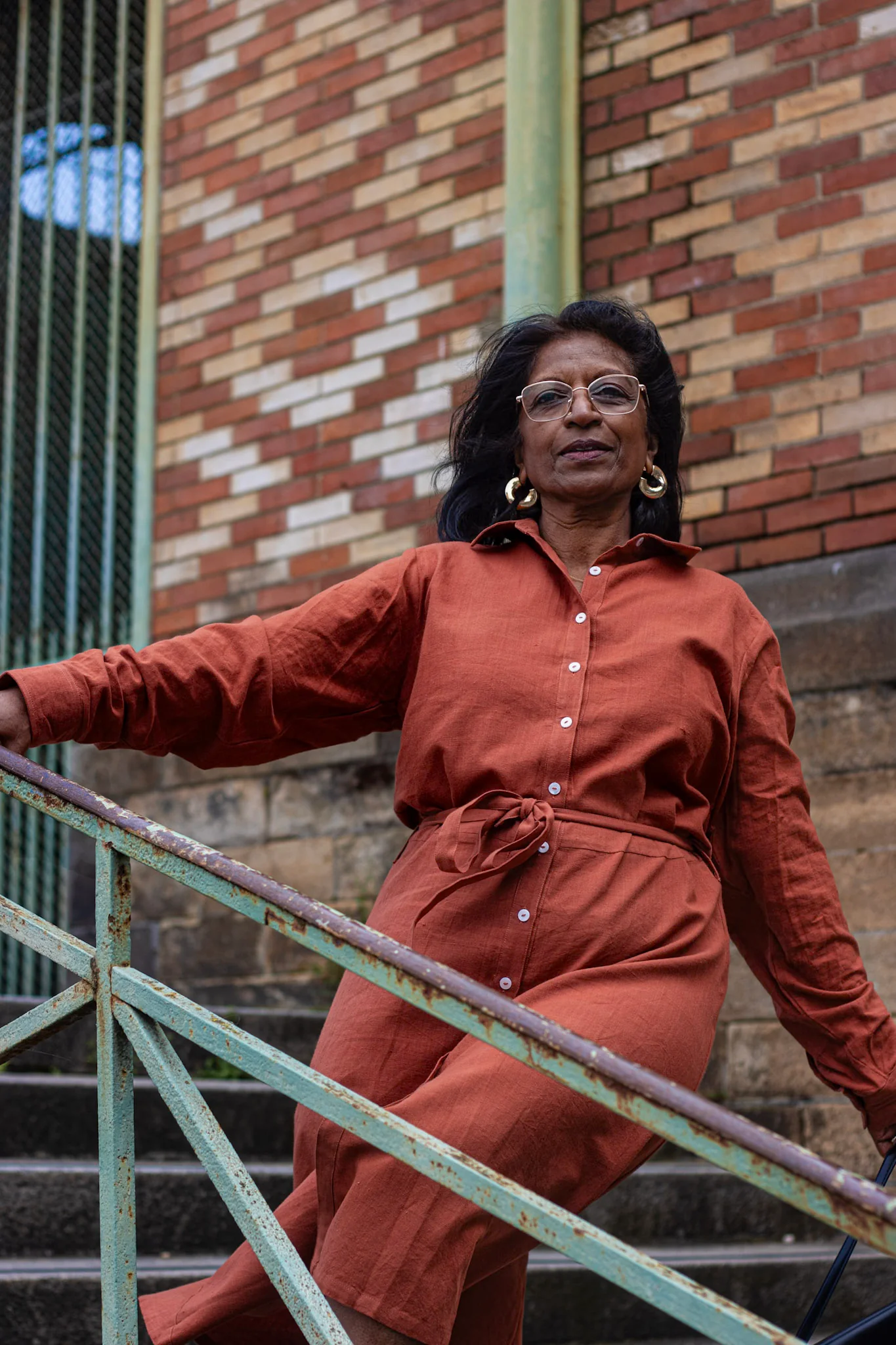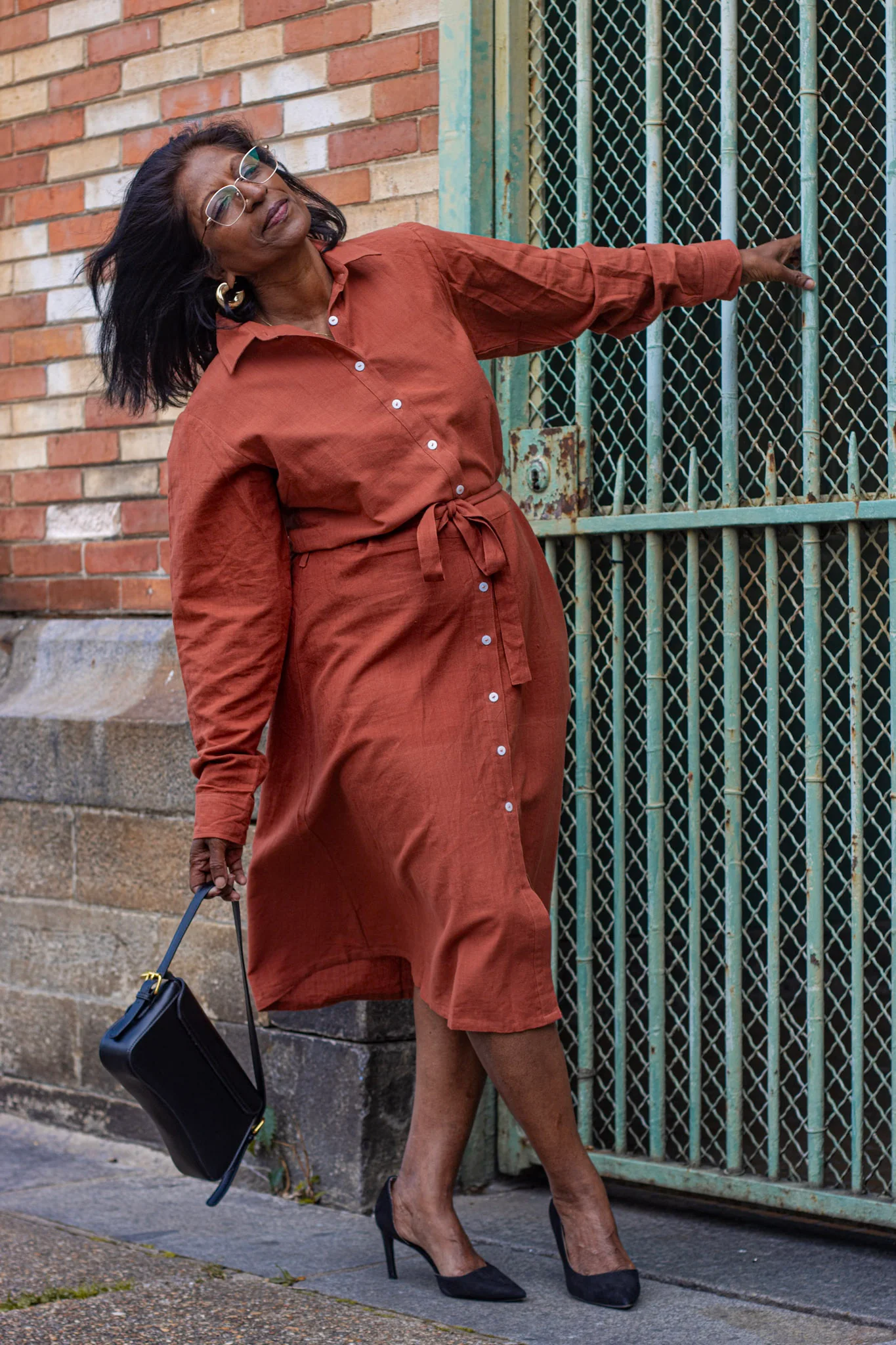Elle se porte aussi bien au quotidien qu’en soirée, grâce à sa ceinture ajustable qui permet de structurer la silhouette selon vos envies. Les manches longues peuvent être retroussées pour une allure plus décontractée, tandis que le tissu en coton artisanal, doux et léger, assure un confort optimal.