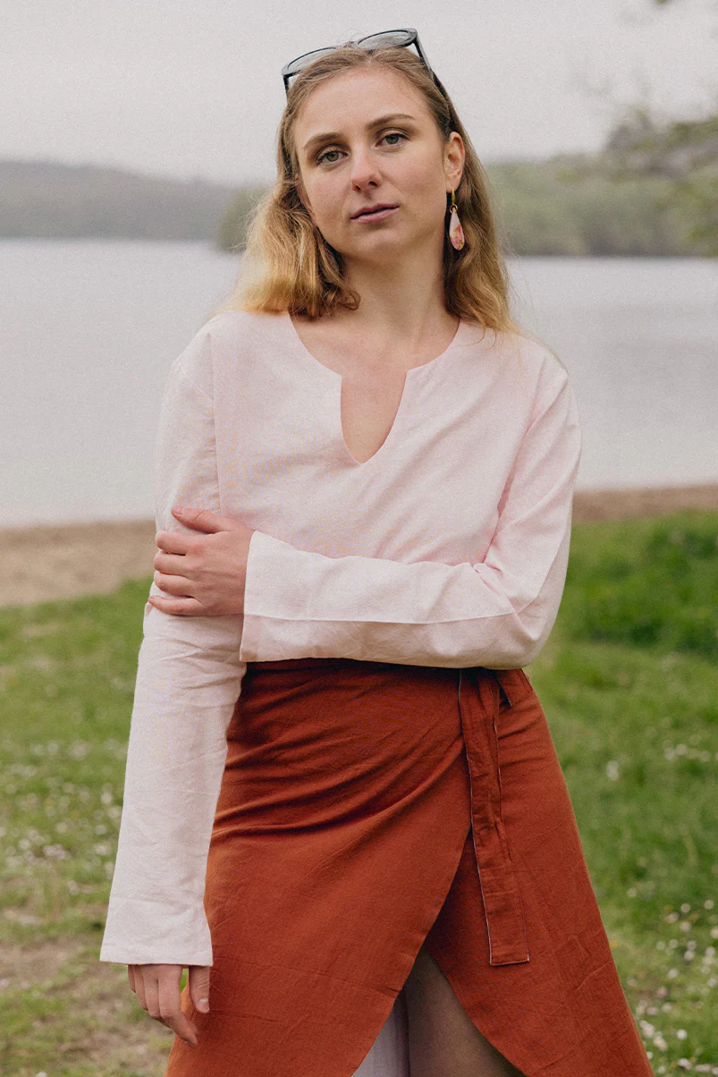 Une blouse douce et minimaliste, pensée pour accompagner toutes vos saisons avec élégance.