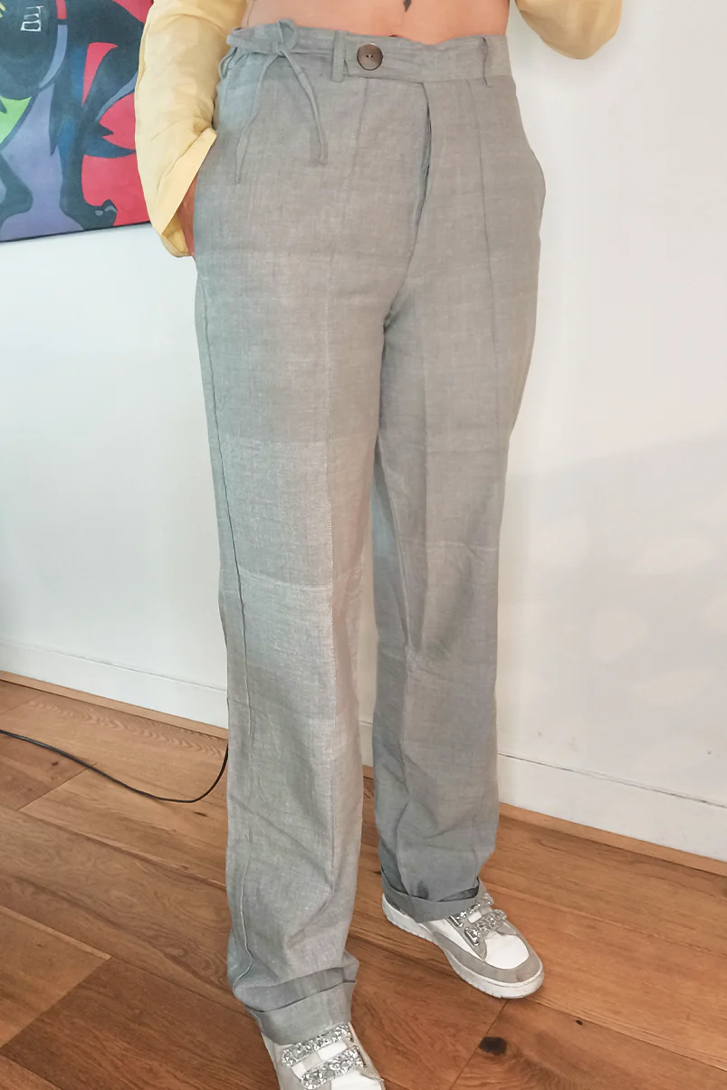 Un pantalon taille haute confortable et ajustable, pensé pour suivre les variations naturelles du corps.