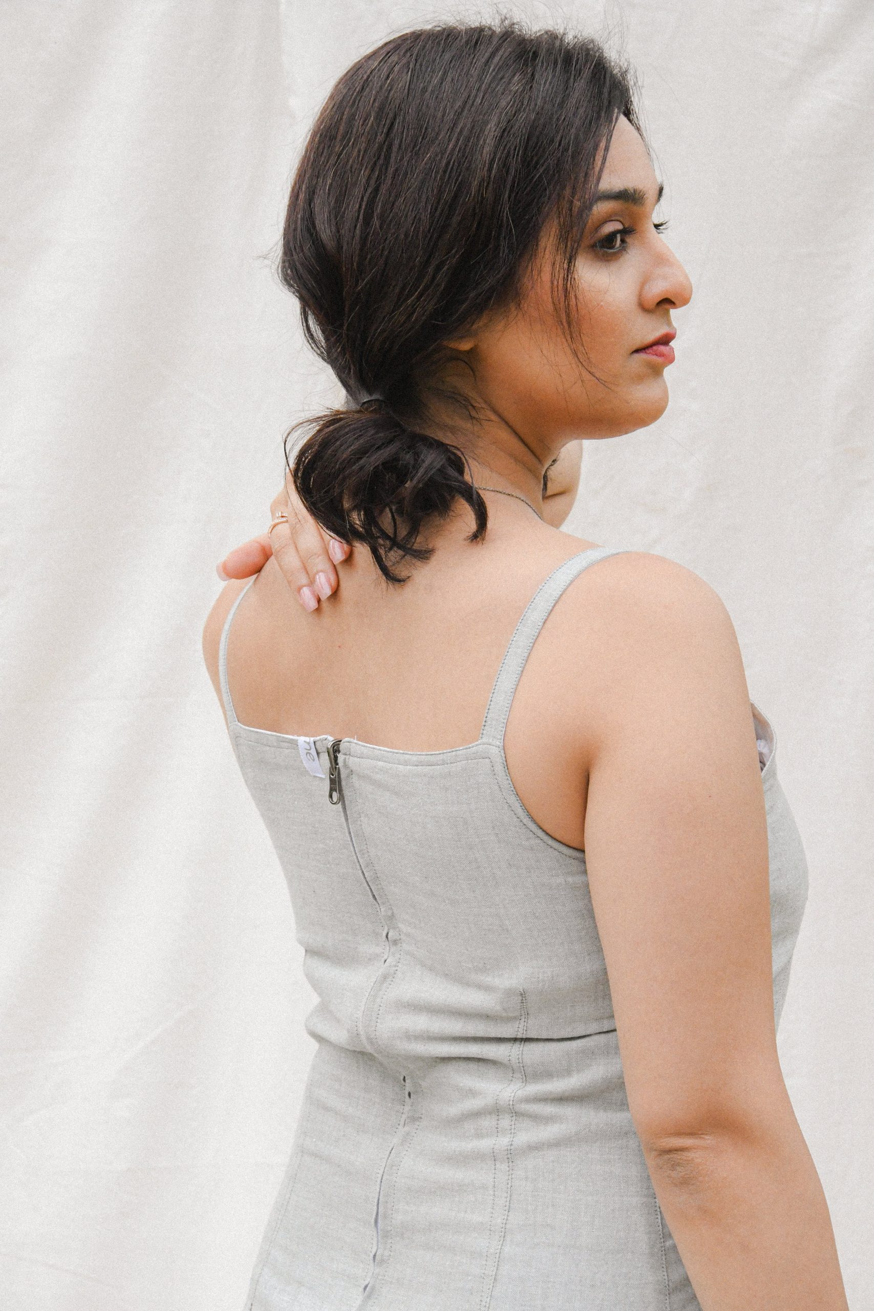 Ses bretelles ajustables, dotées de deux boutons, permettent un ajustement parfait selon votre morphologie et votre confort. Son design fluide et non moulant en fait une pièce facile à porter, que ce soit en été sur peau nue, avec un léger chemisier au printemps, ou superposée sur un gros pull l’hiver.