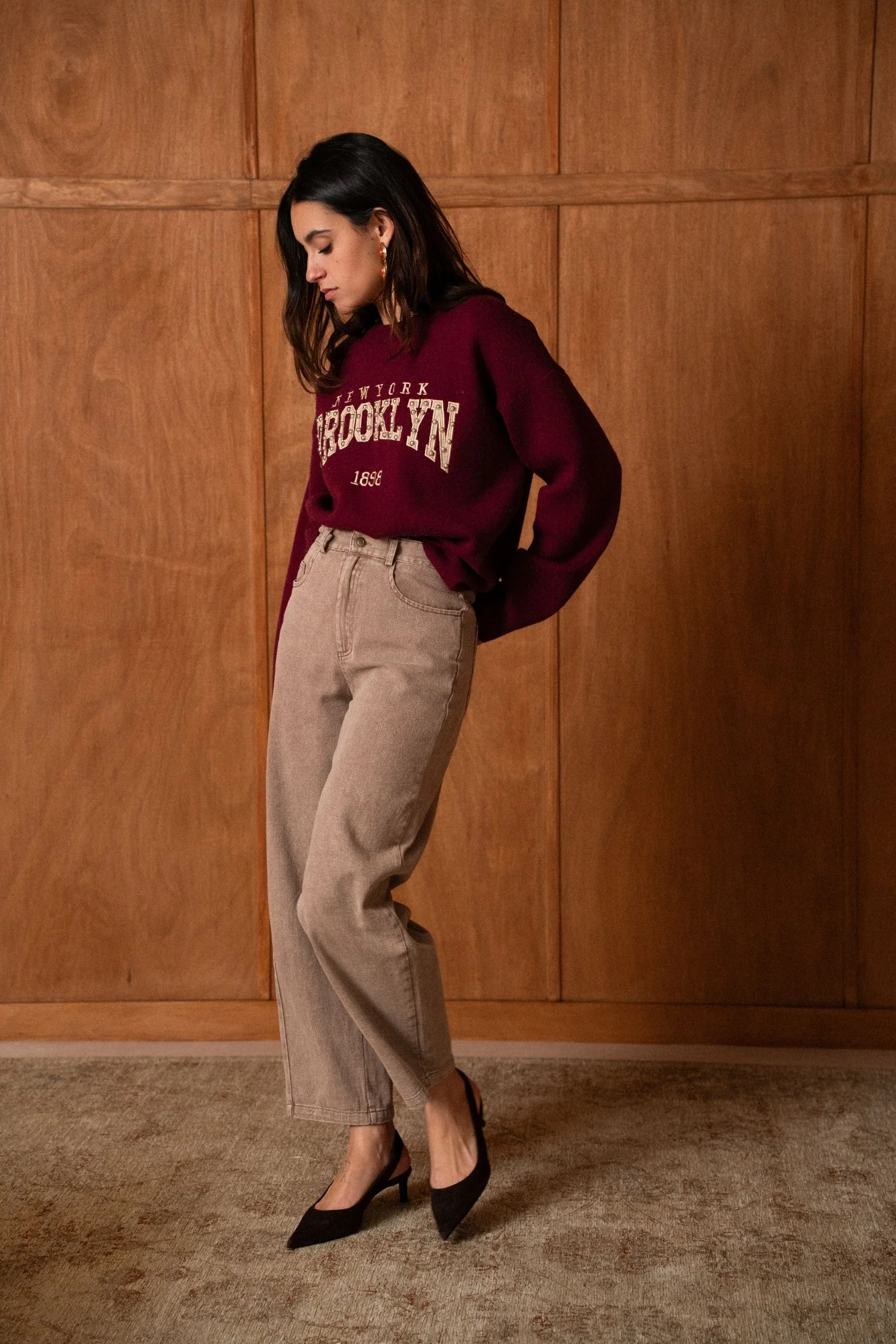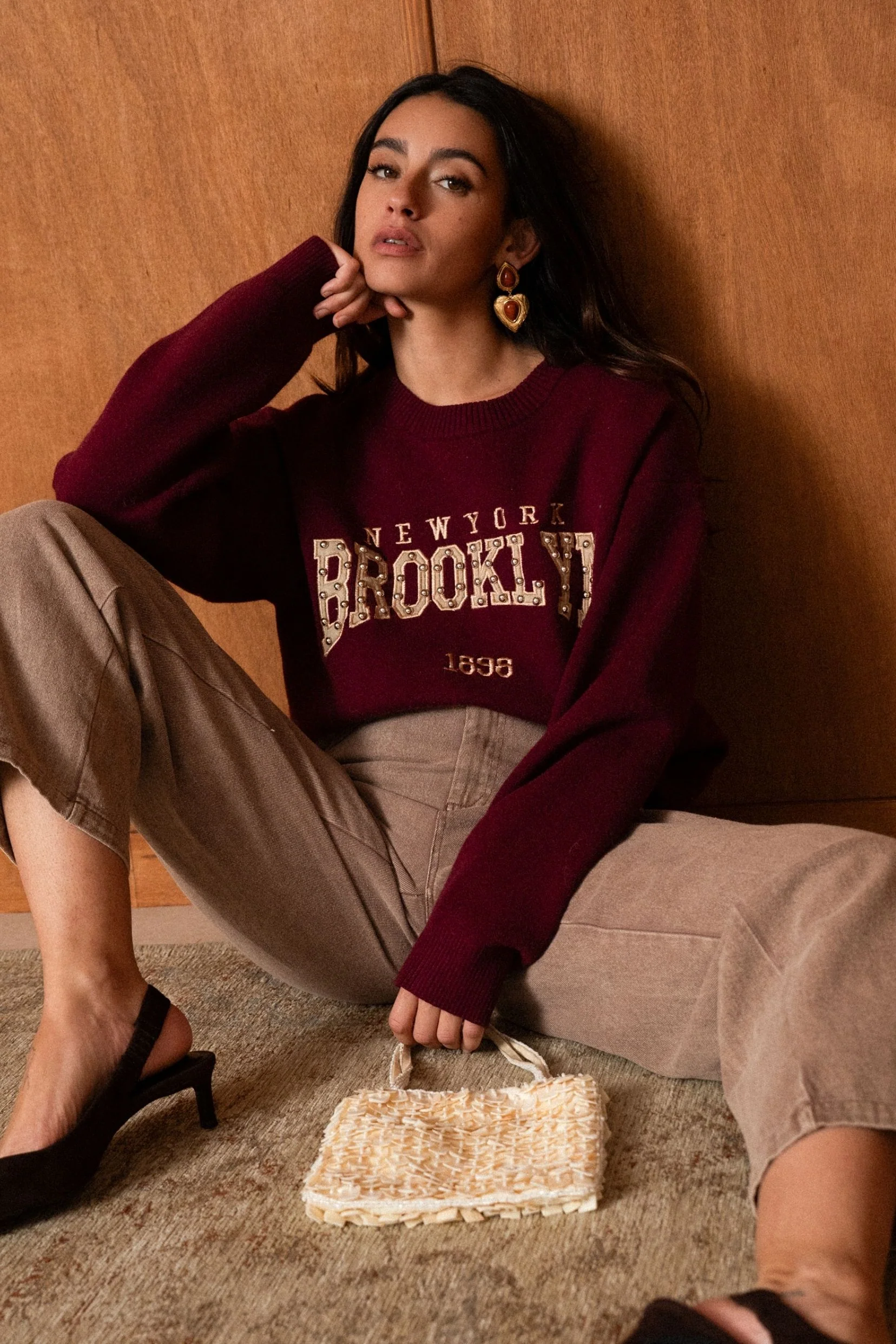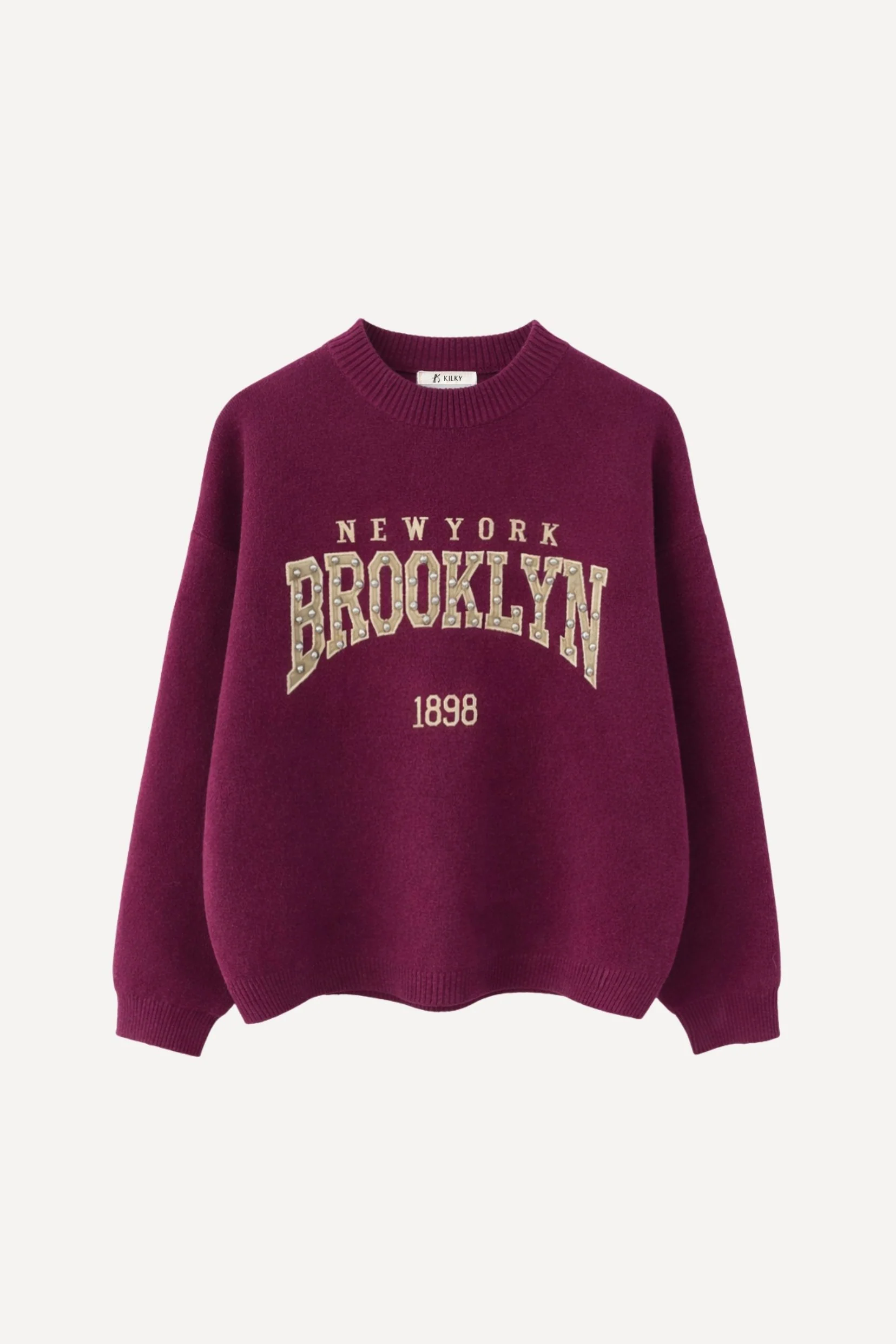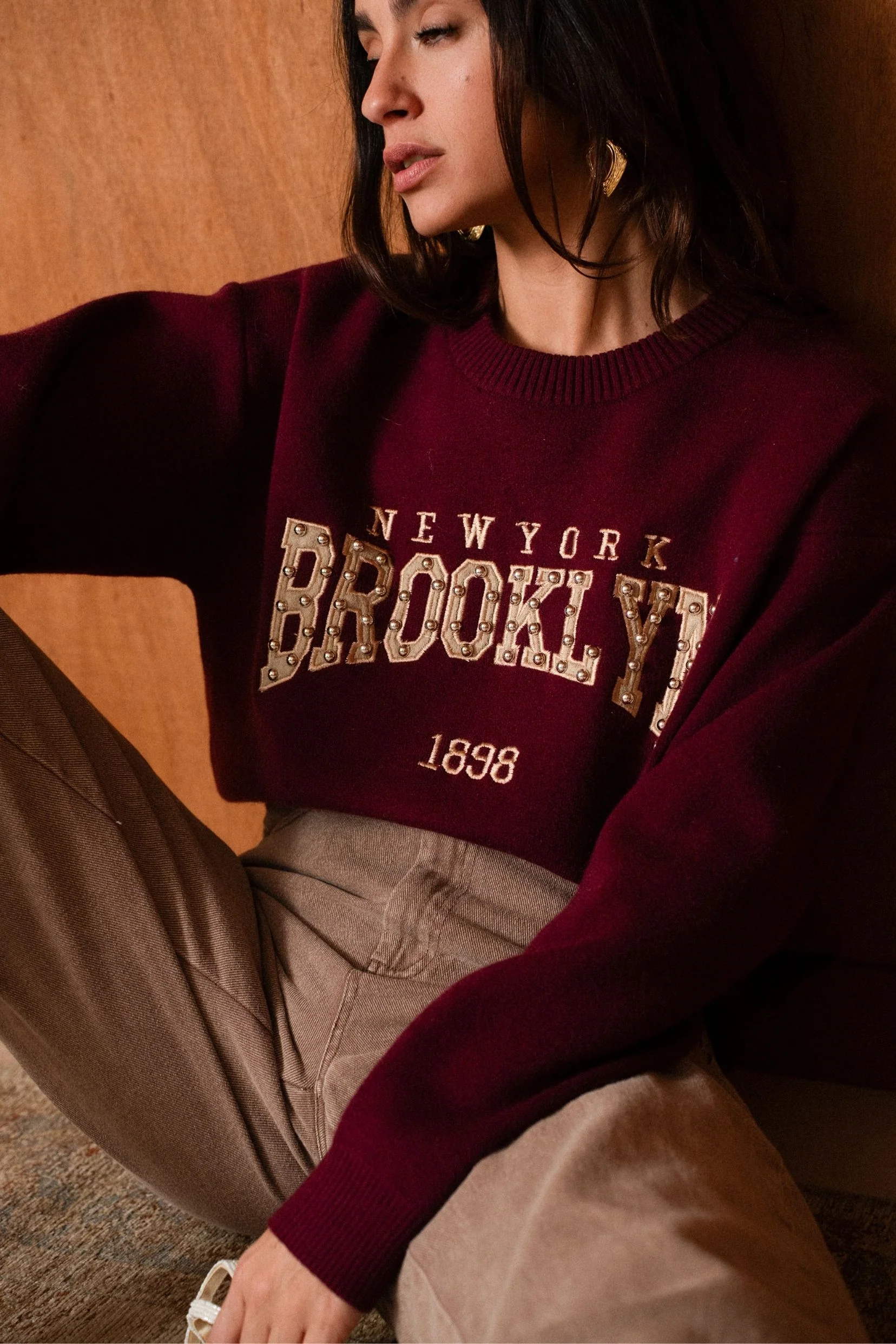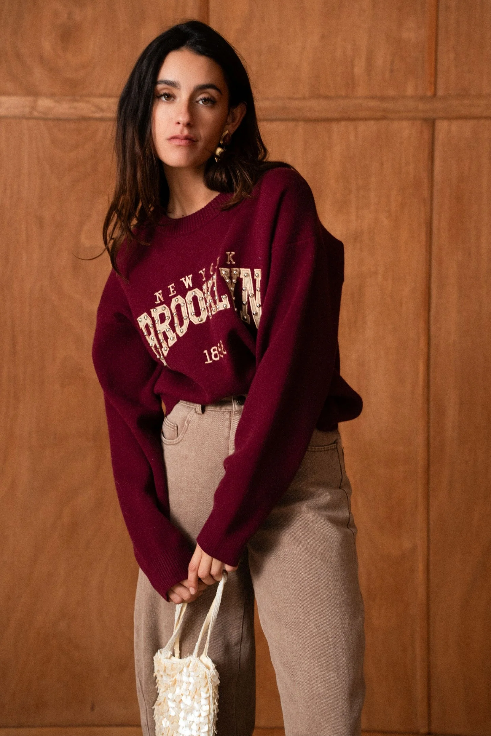 Brooklyn s’inspire des pulls varsity iconiques, revisités avec une touche féminine et élégante. Sa teinte burgundy profonde apporte du caractère, tandis que le message brodé esprit New York lui donne ce charme rétro qu’on adore.