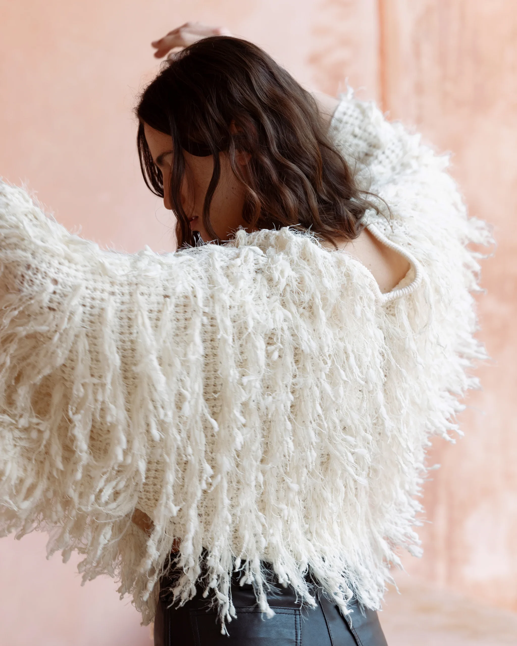 Pièce forte de la saison, ce poncho en laine ivoire séduit par son allure chaleureuse et sophistiquée. Doté de manches larges et d’une coupe souple, il enveloppe la silhouette avec élégance. Son encolure en V flatte le port de tête, tandis que les franges ajoutées à la main, réparties avec soin sur l’ensemble du modèle, apportent une touche artisanale et bohème. La texture effet fourrure ajoute une profondeur unique et un confort irrésistible.
