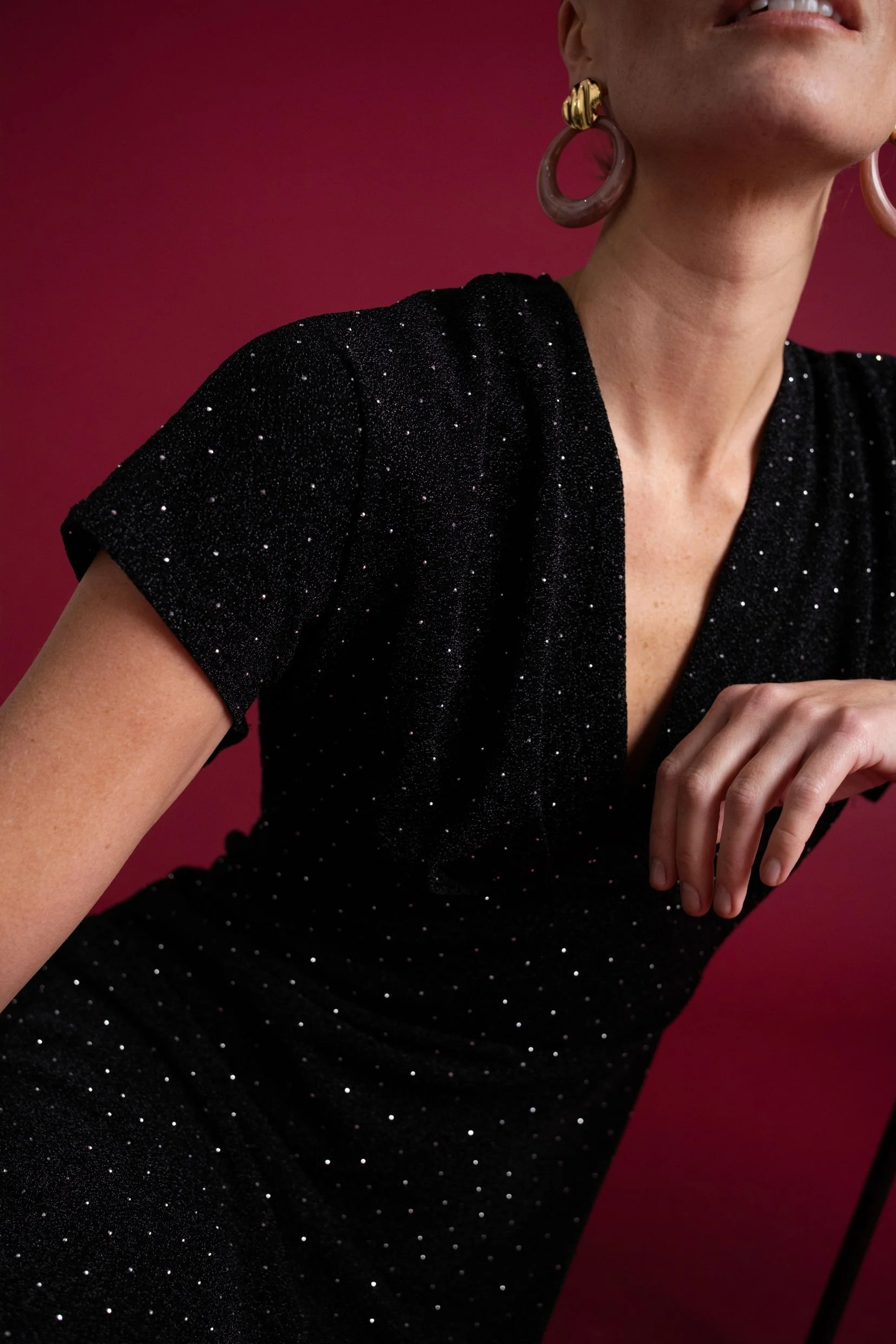 Un modèle pensé comme une ligne noire étoilée : sobre au premier coup d’œil, puis fascinante dès qu’on s’en approche. Ses petits éclats lumineux, posés avec délicatesse, transforment chaque mouvement en une constellation discrète, un charme qui se révèle sans jamais s’imposer.