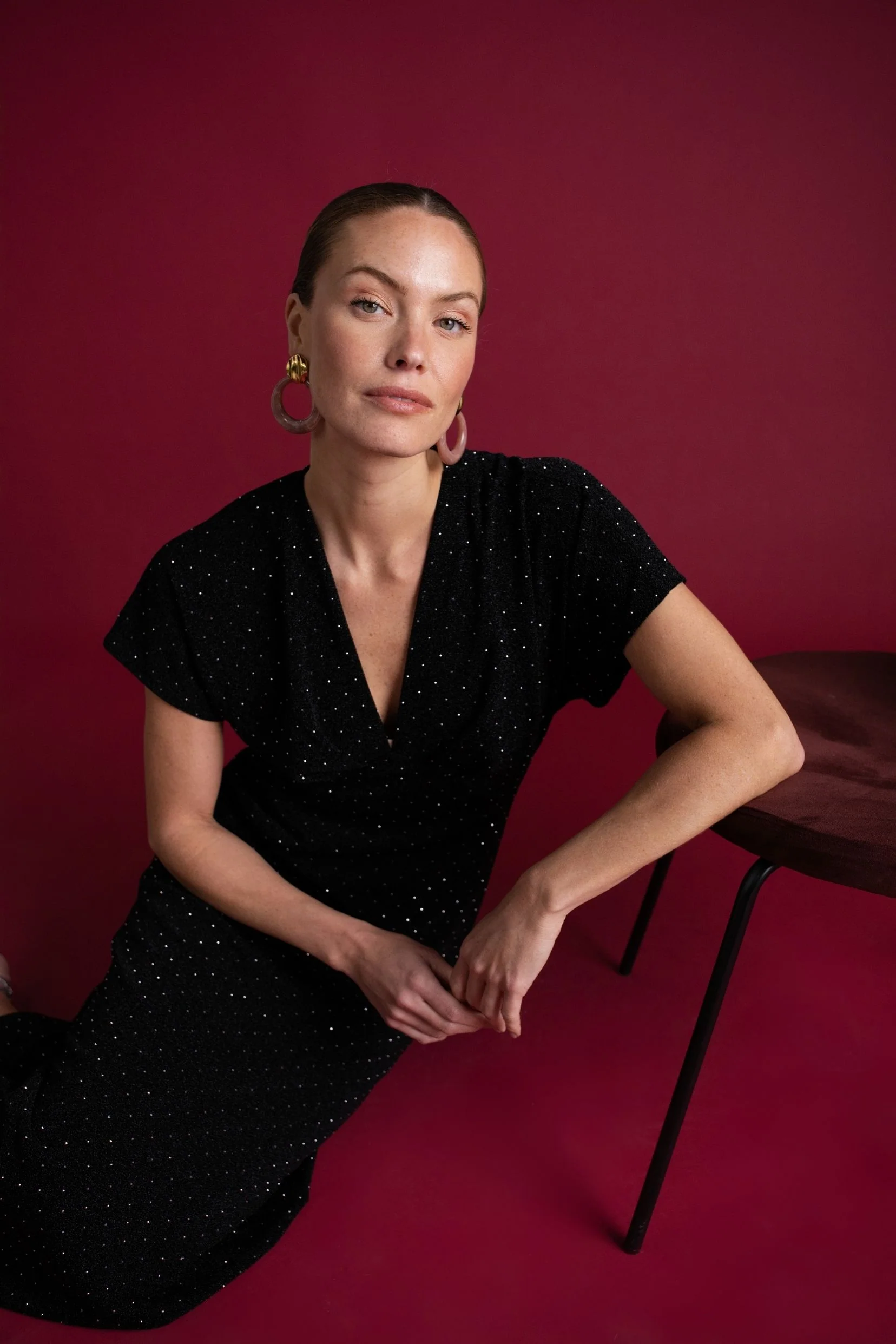 Arsène, c’est la robe qui allonge la silhouette et apaise le regard.Un modèle pensé comme une ligne noire étoilée : sobre au premier coup d’œil, puis fascinante dès qu’on s’en approche. Ses petits éclats lumineux, posés avec délicatesse, transforment chaque mouvement en une constellation discrète, un charme qui se révèle sans jamais s’imposer. Sa coupe […]