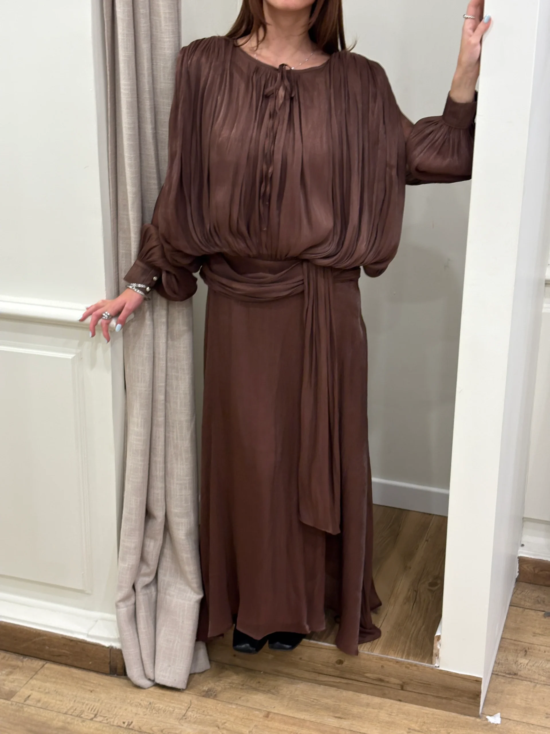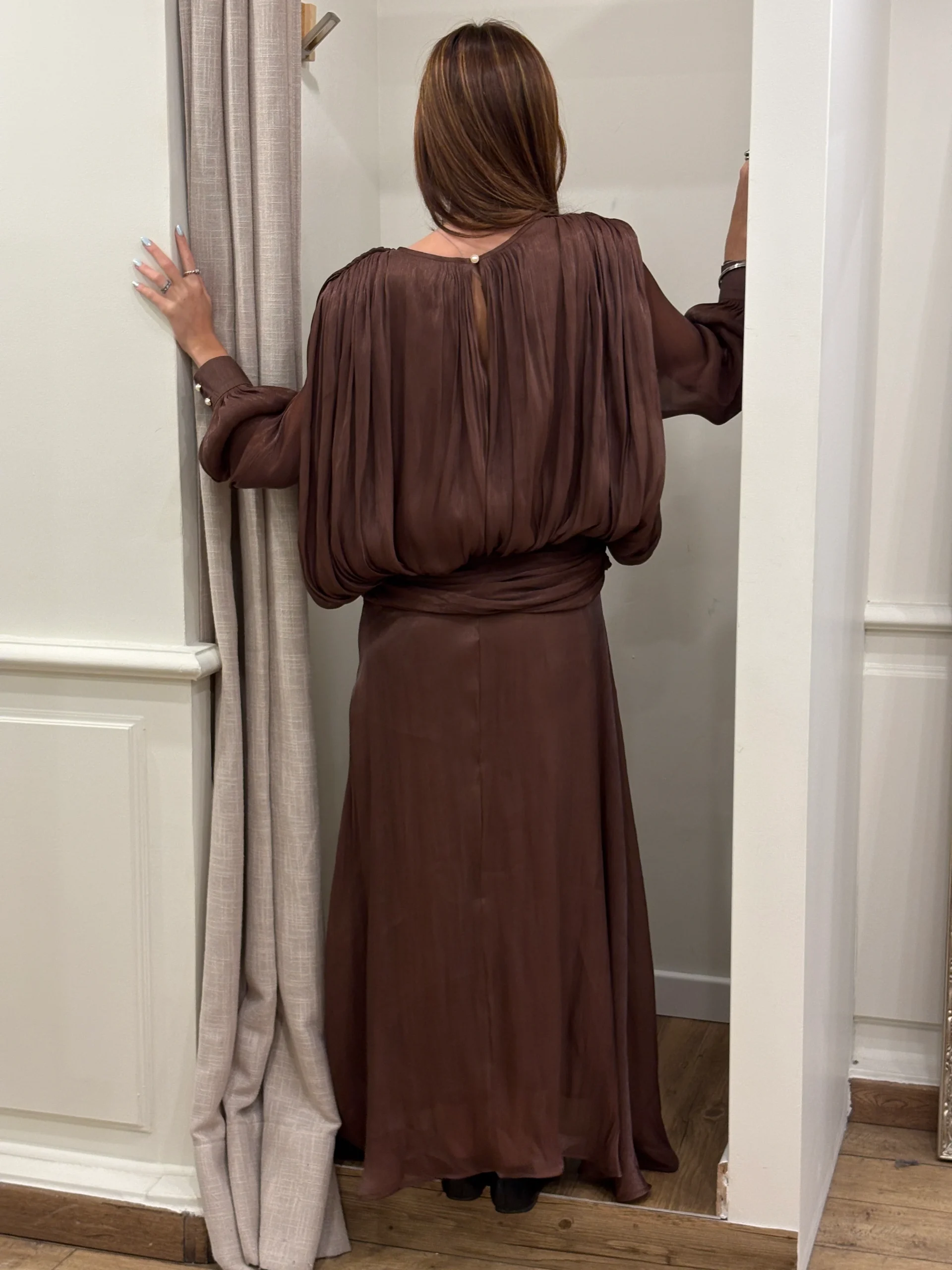 Une pièce élégante et sophistiquée qui allie confort et féminité. Sa coupe ample et fluide sublimée par des détails plissés lui confère un tombé raffiné et une allure aérienne.