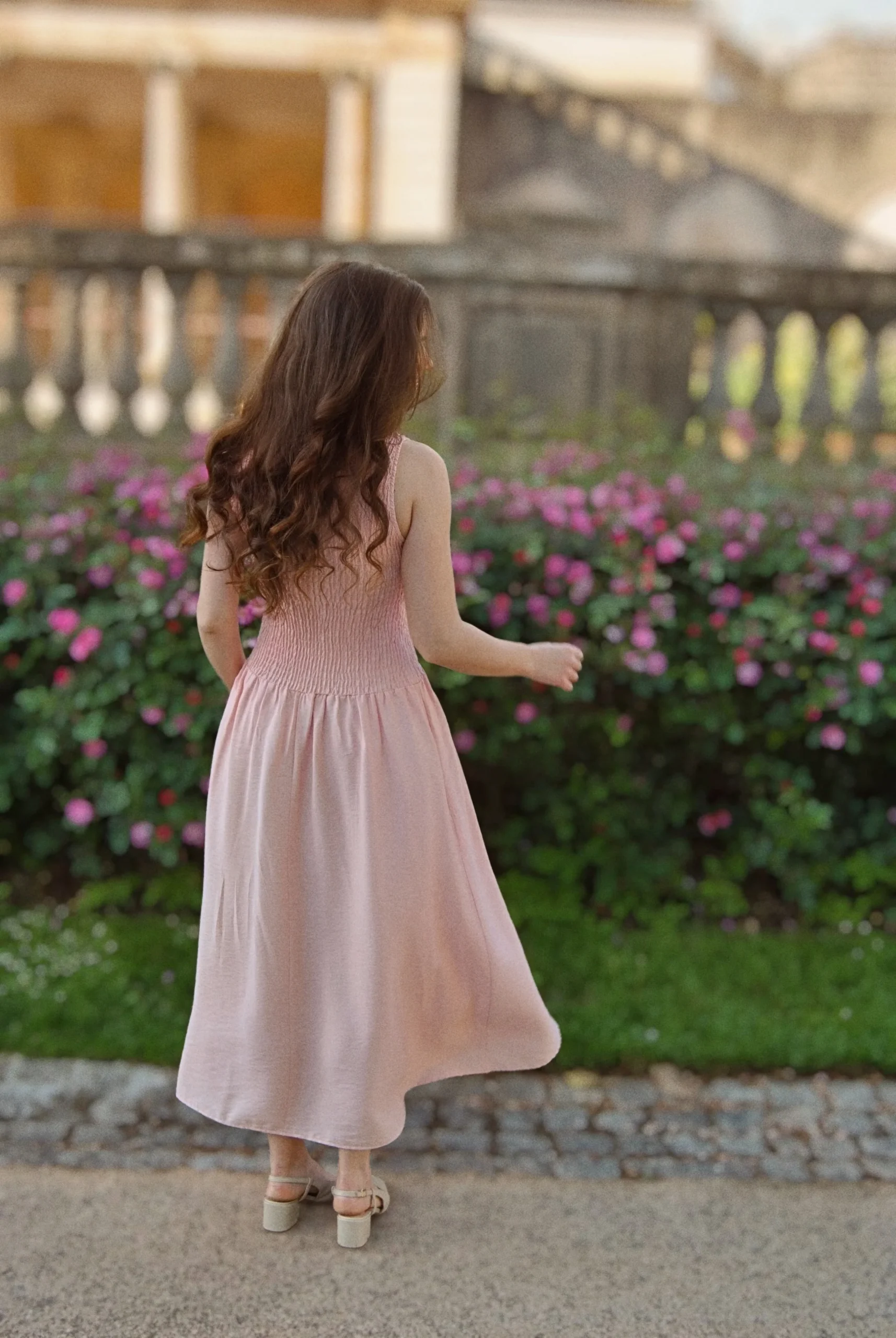 Robe longue elegante Robe de cérémonie rose pale robe à smocks