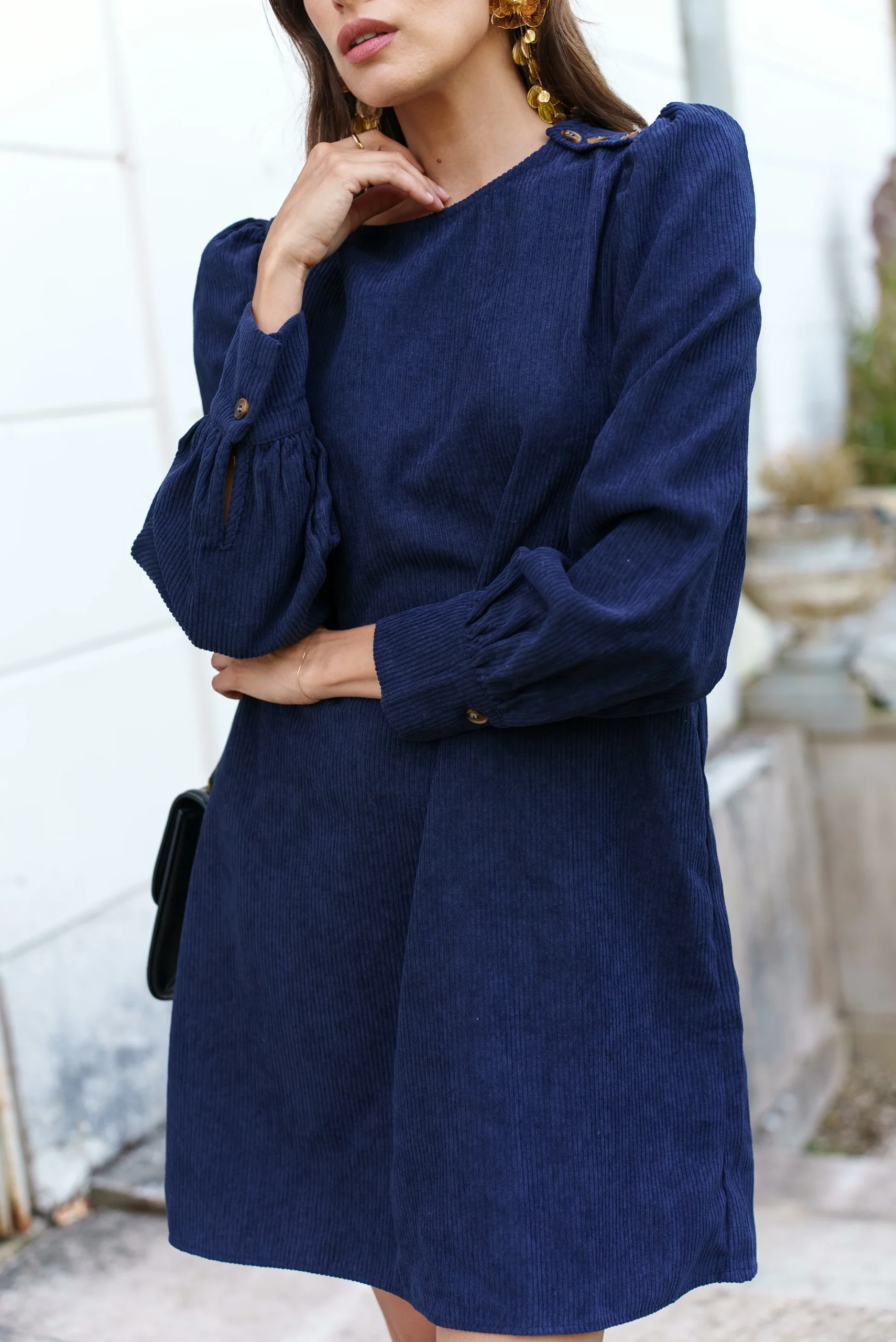 Plongez dans l’élégance chic avec notre robe Martine. Conçue pour allier sophistication et simplicité, cette pièce présente une coupe droite flatteuse, complétée par des manches longues boutonnées et un col rond classique. Parfaite pour un look casual chic.