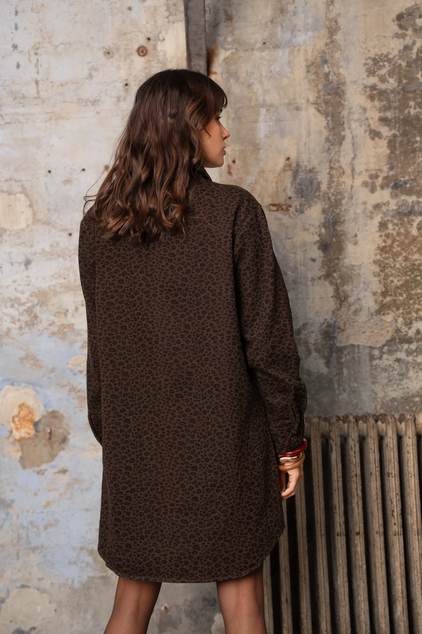 Son imprimé léopard chocolat apporte une touche d’audace, tandis que sa coupe légèrement évasée souligne la silhouette avec naturel. Féminine sans en faire trop, elle s’impose comme la pièce parfaite du quotidien, à porter seule ou ceinturée pour marquer la taille.