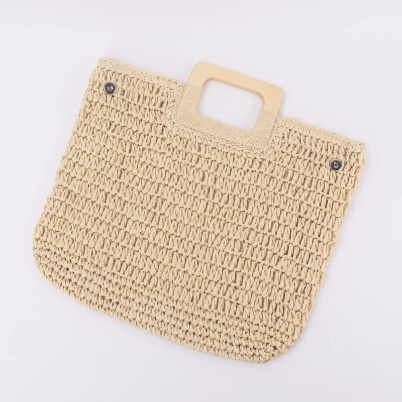 Doté de deux anses en bois carré, ce Sac a Main en Paille au look vintage et original offre une prise en main confortable et élégante, pouvant être porté à la main ou au bras. Ce sac est polyvalent et extensible grâce à ses deux pressions latérales, permettant de modifier sa forme selon vos envies du moment. À l’intérieur, deux poches plaquées offrent une organisation optimale pour vos essentiels.