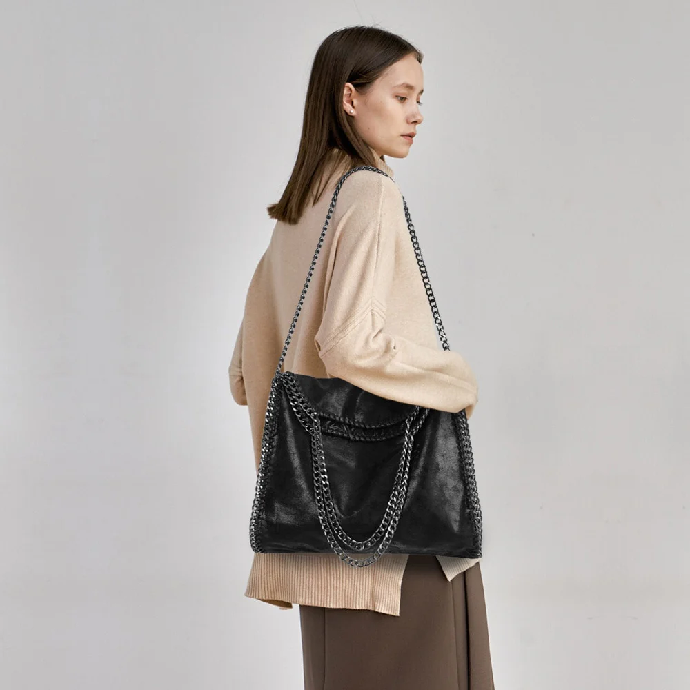 Notre Sac a Main Noir Chaine est étonnamment polyvalent, il peut être portée à la main ou à l’épaule. Vous pouvez aussi le plier et le porter comme une pochette.