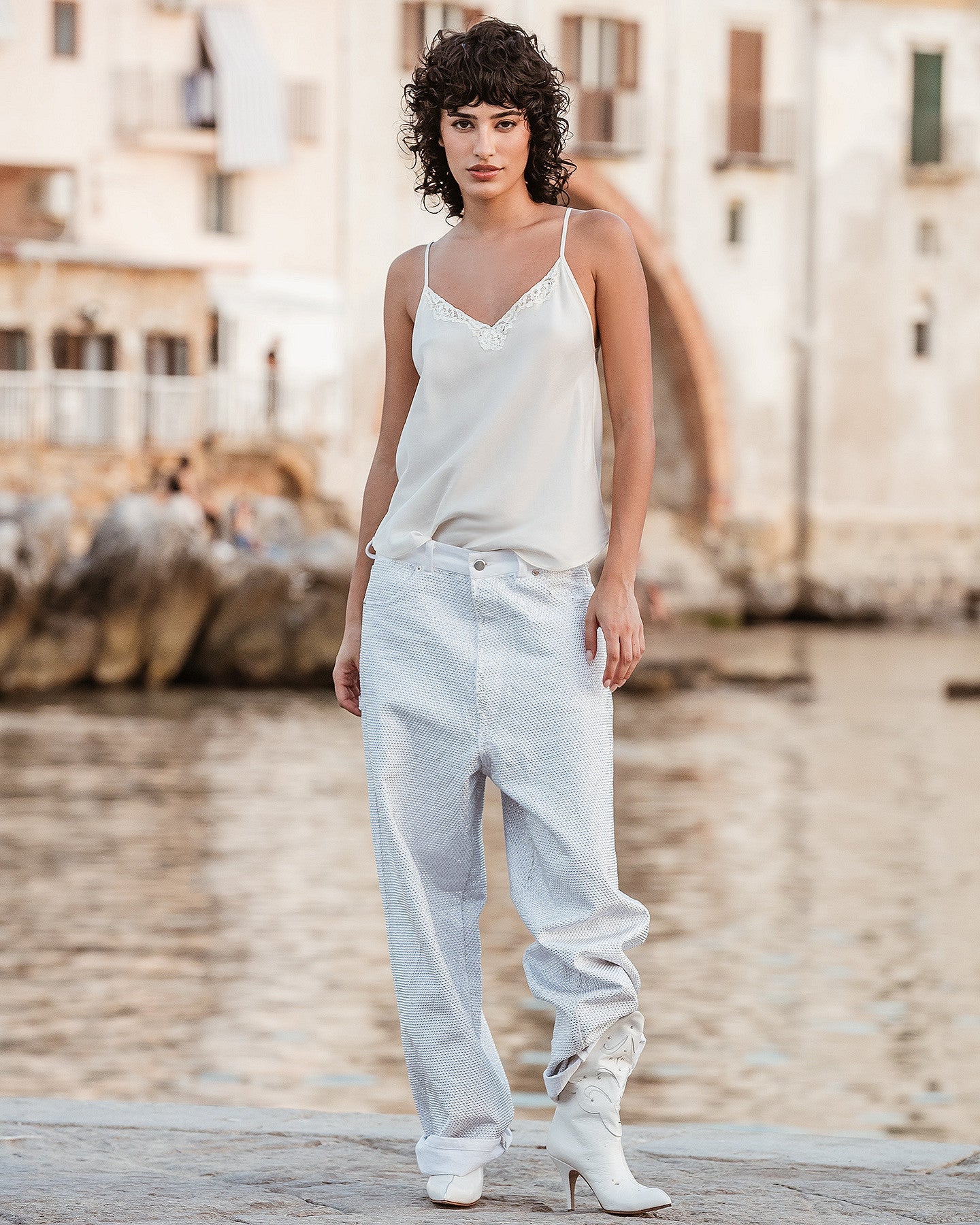 Le top Doréa séduit par sa simplicité travaillée et son allure estivale. Sans manches, il adopte une coupe épurée qui rappelle la forme d’un bandeau, tout en offrant plus de maintien et de structure. Léger et près du corps, il met en valeur les épaules avec subtilité et s’accorde à merveille avec un short taille haute ou une jupe fluide. Un basique revisité, parfait pour les journées ensoleillées.