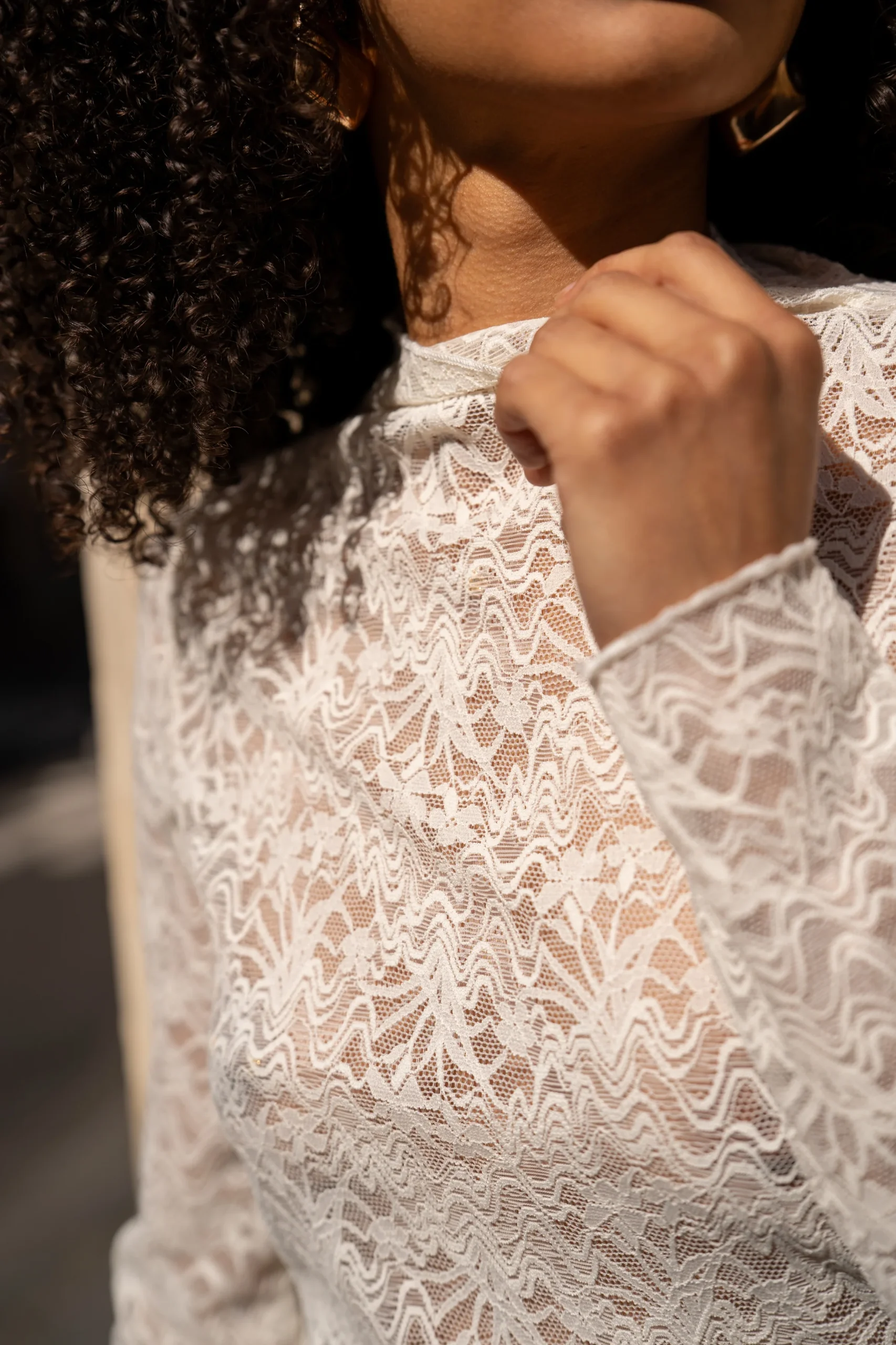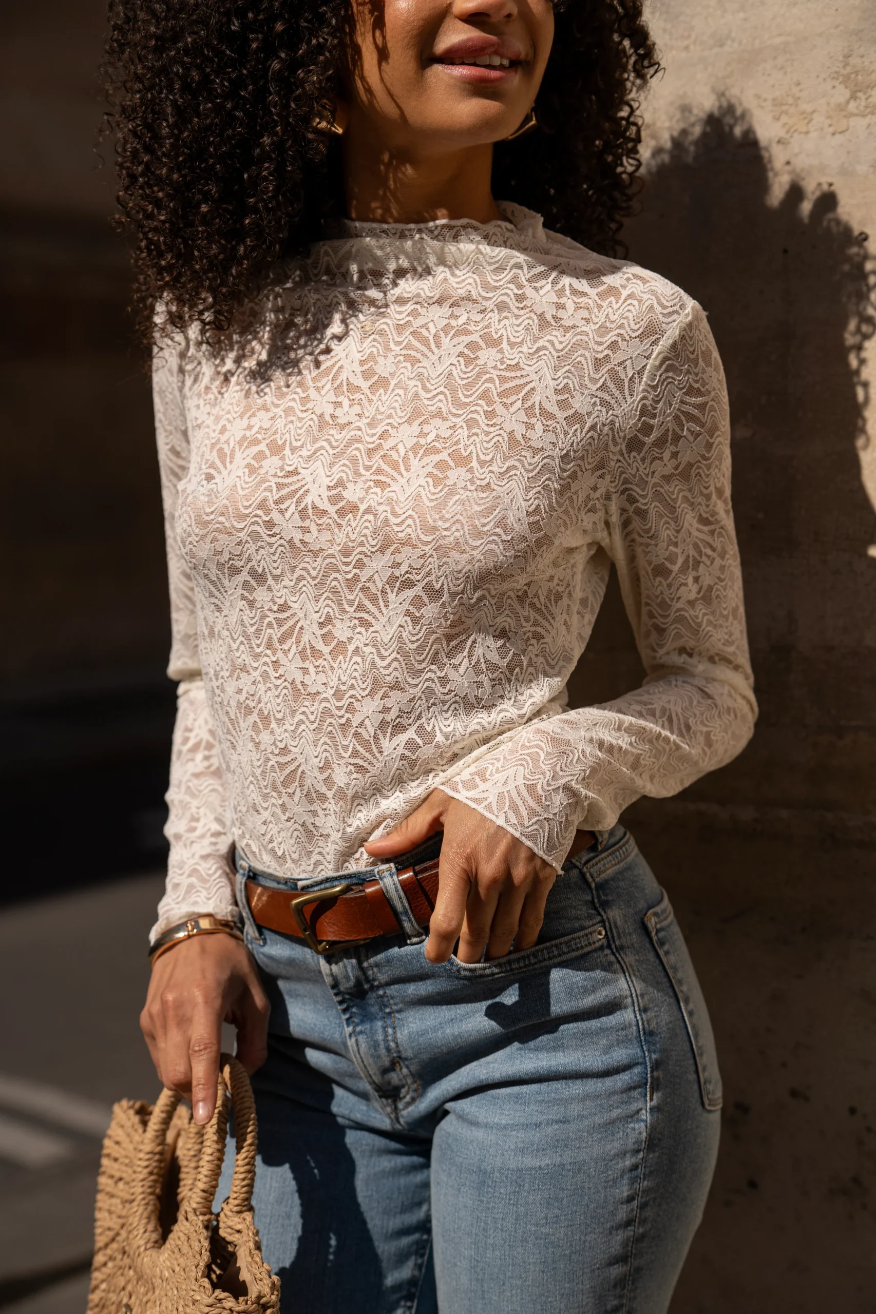 Le top Milanie mêle délicatesse et caractère dans une silhouette sophistiquée. Près du corps, à manches longues, il enveloppe la silhouette avec élégance, tandis que ses broderies fines révèlent un soin particulier du détail. Son col haut façon moulin, légèrement froncé, ajoute une touche romantique et raffinée. Une pièce à la fois douce et affirmée, parfaite sous une veste structurée ou portée seule pour révéler toute sa singularité.