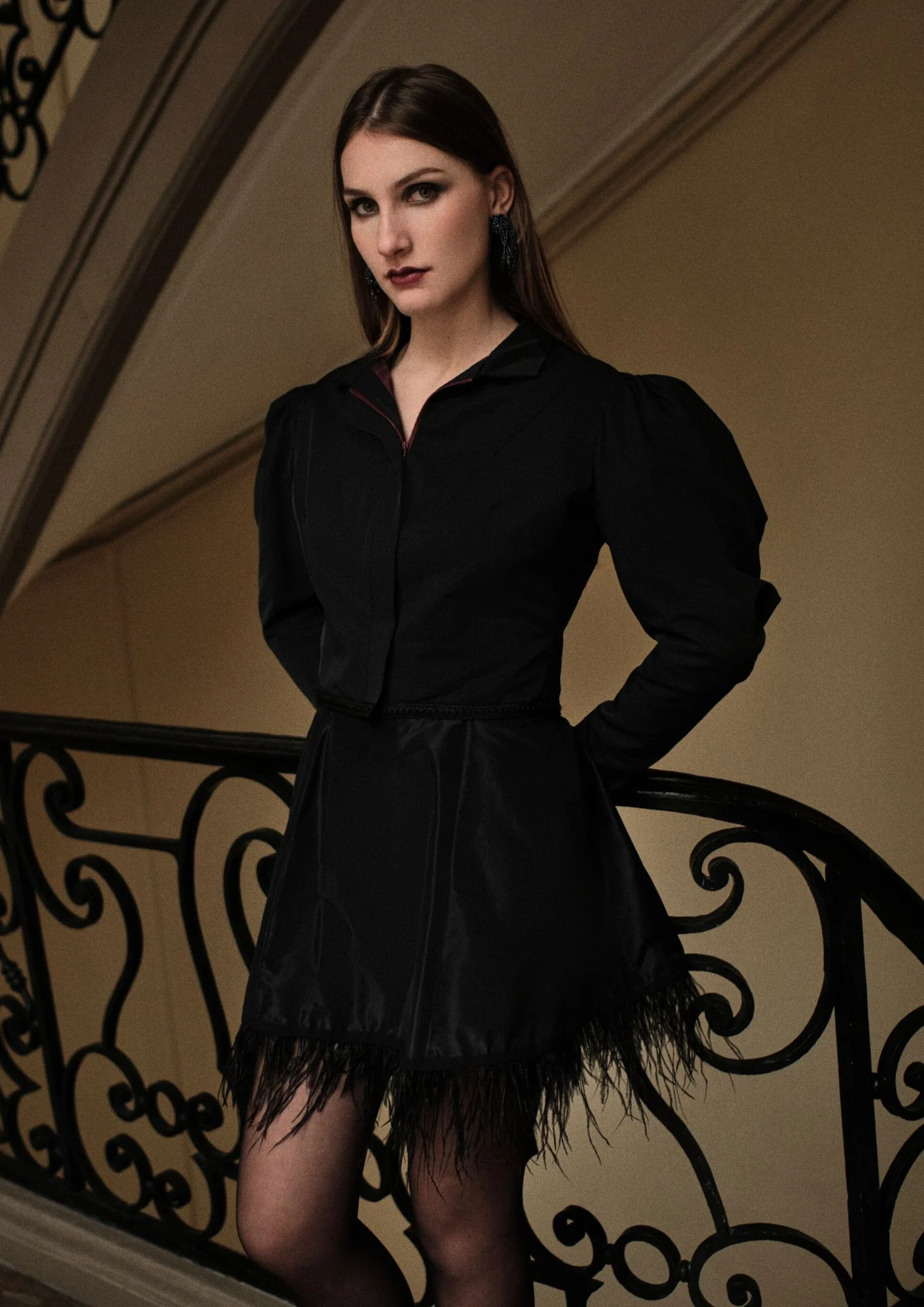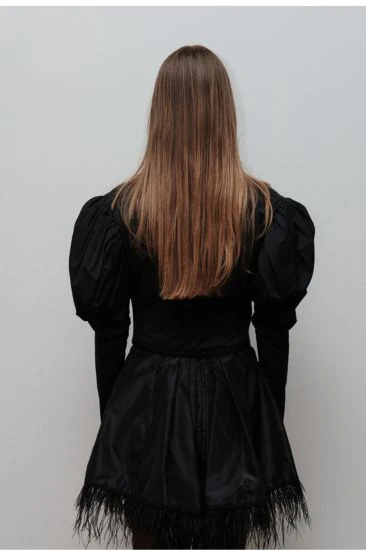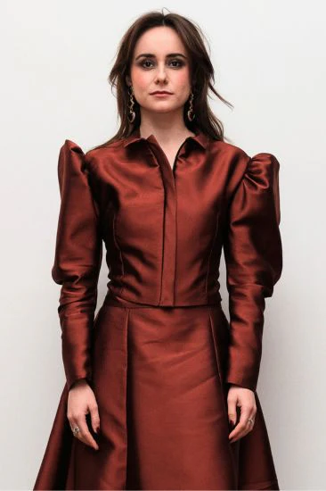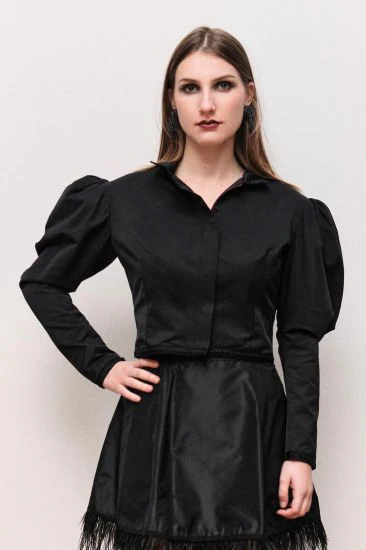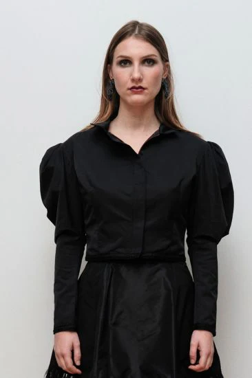 Veste-blouson zippée à manches gigot. Inspirée de l’icône de la belle époque Cléo de Mérode.