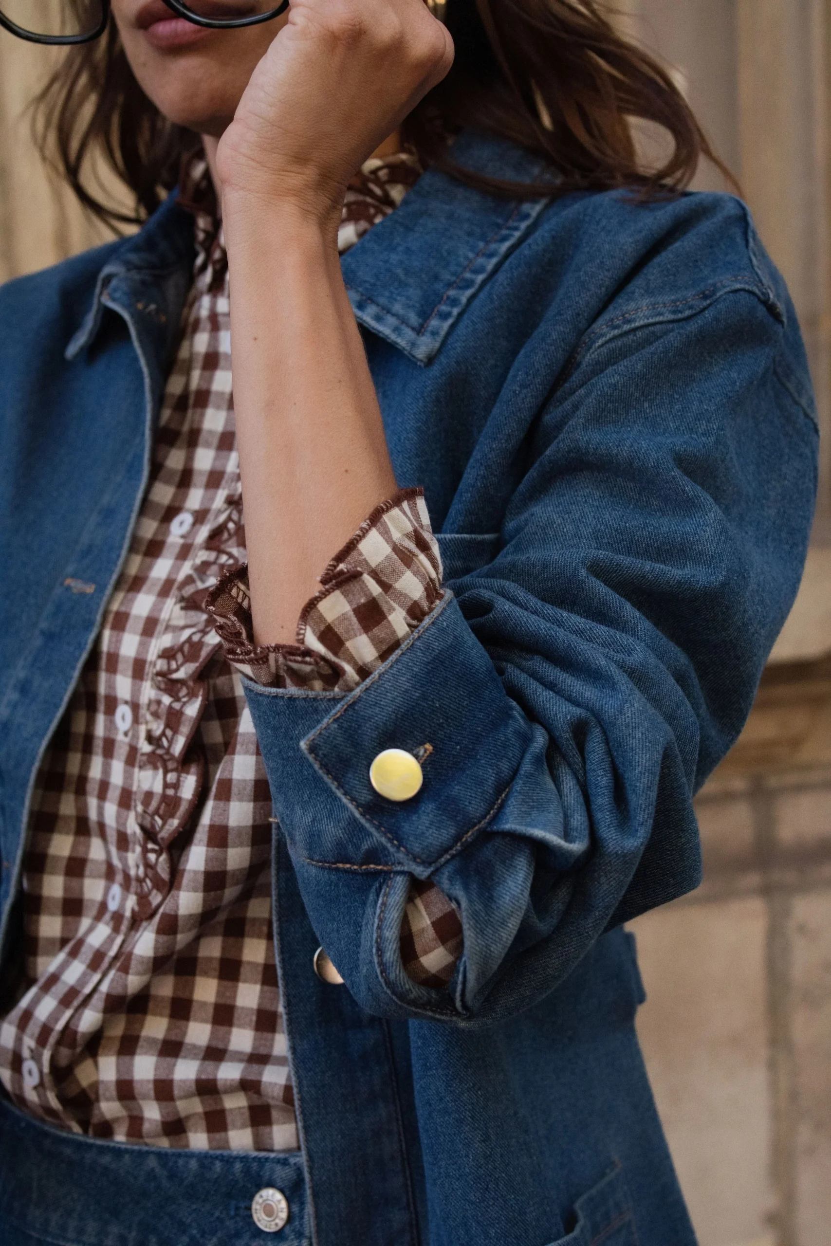 Si vous avez succombé au charme de la jupe-short Édith, vous ne pourrez pas résister à sa veste assortie : Sophie. Avec sa coupe droite et son denim souple, elle se porte aussi bien fermée, façon chemise, qu’ouverte sur un top ou un pull fin. Ses poches plaquées et ses finitions soignées en font une […]